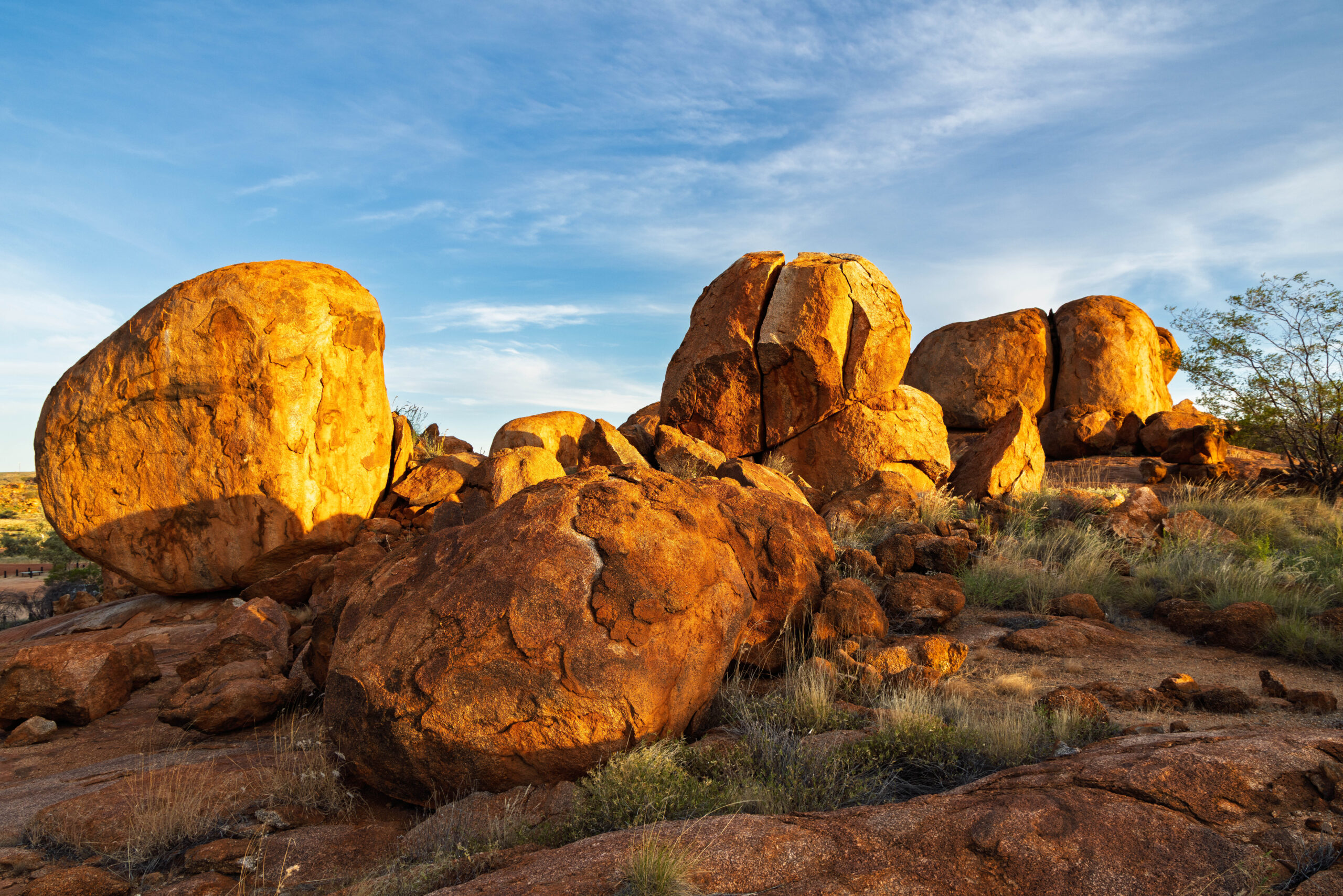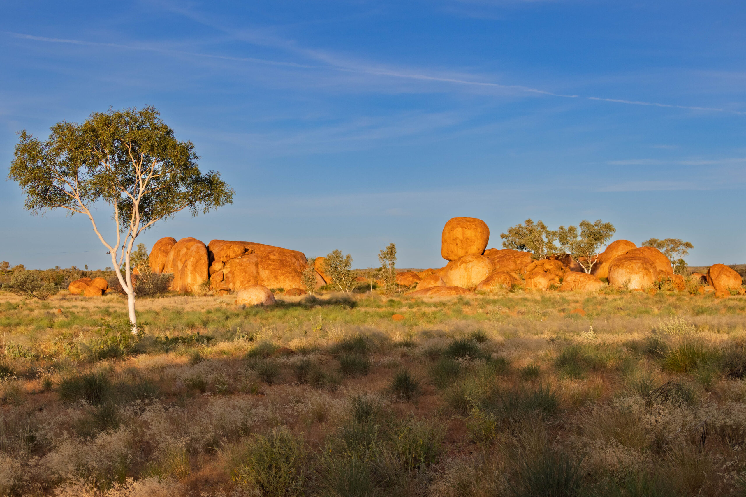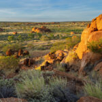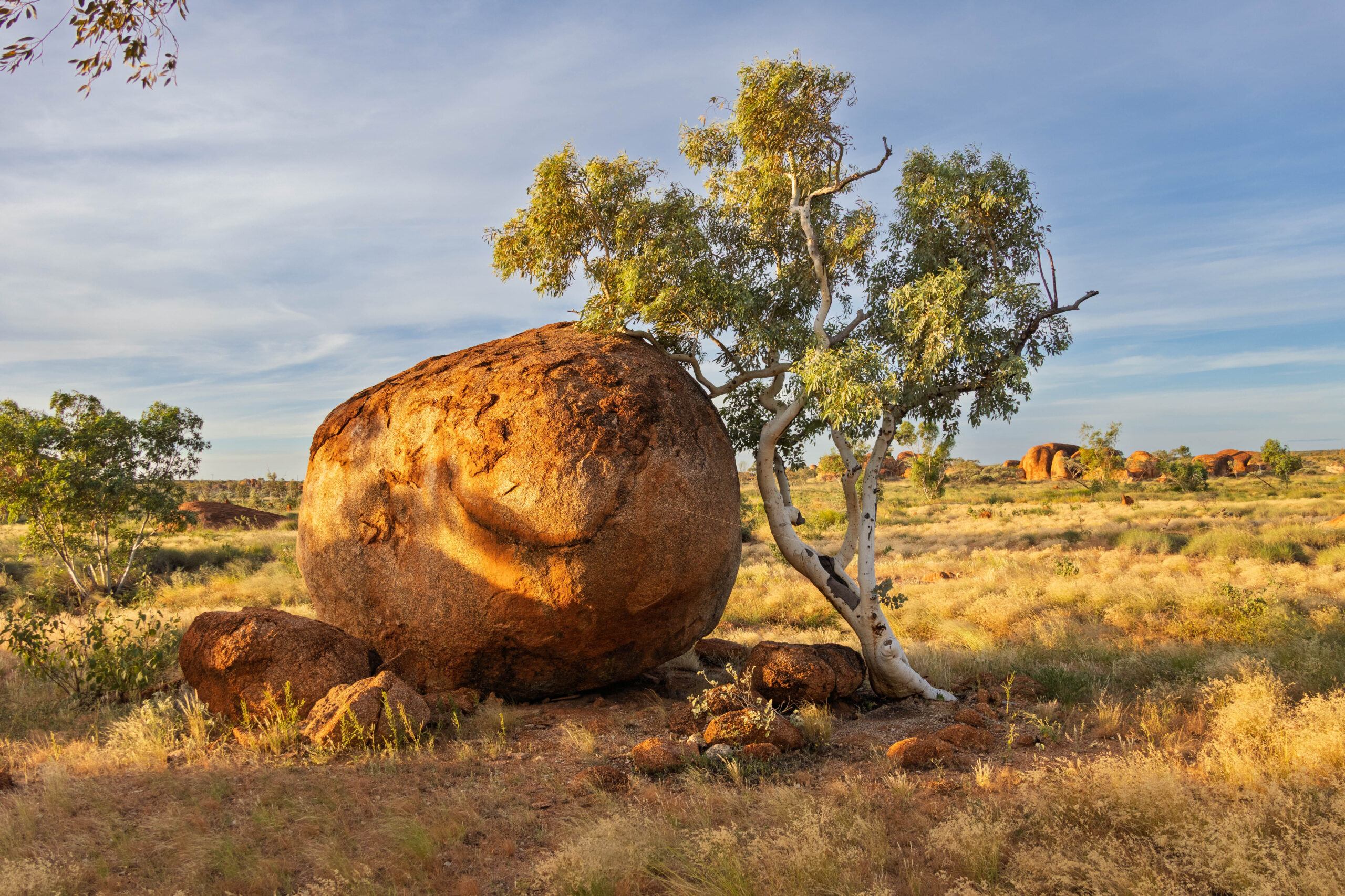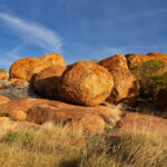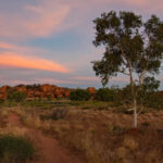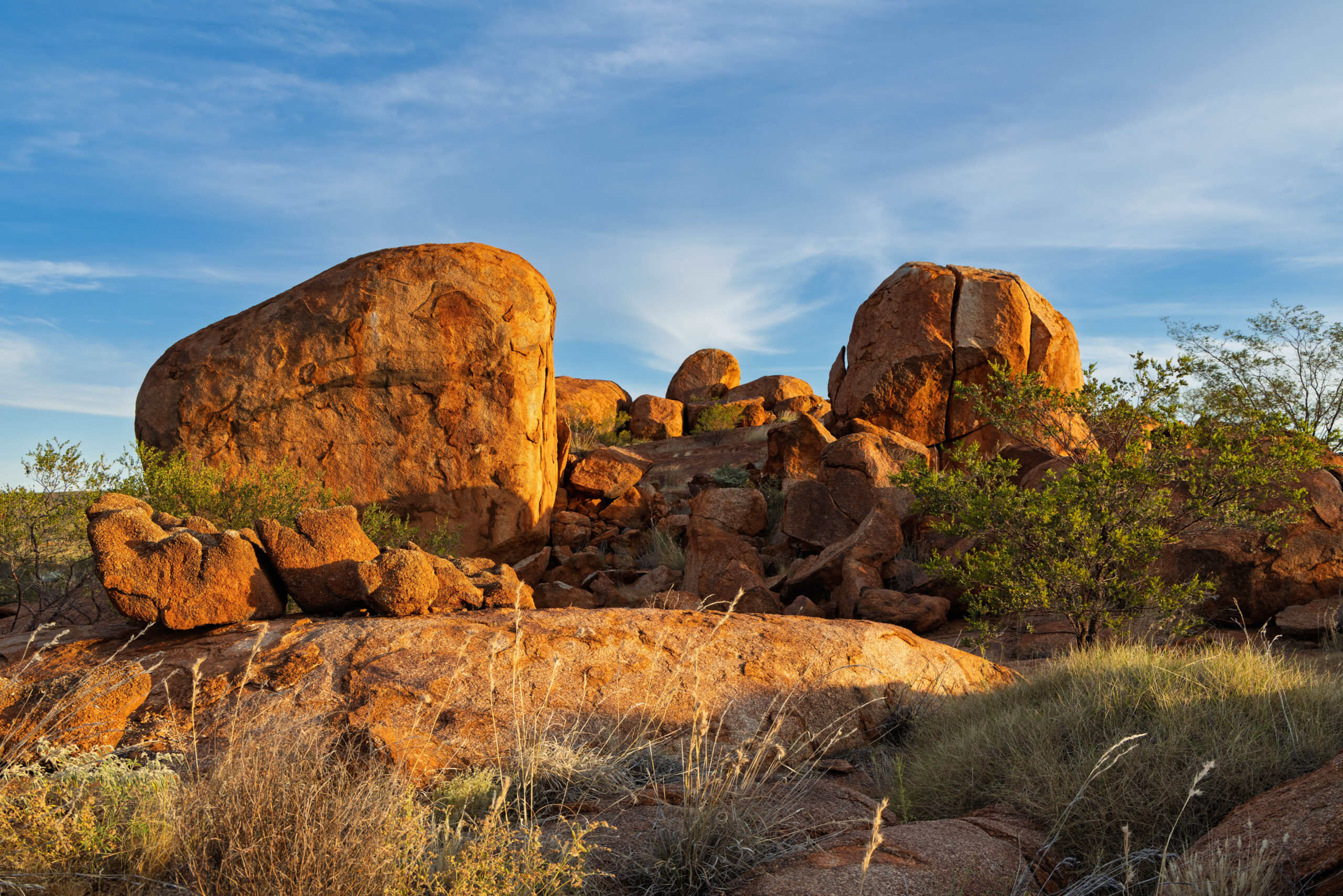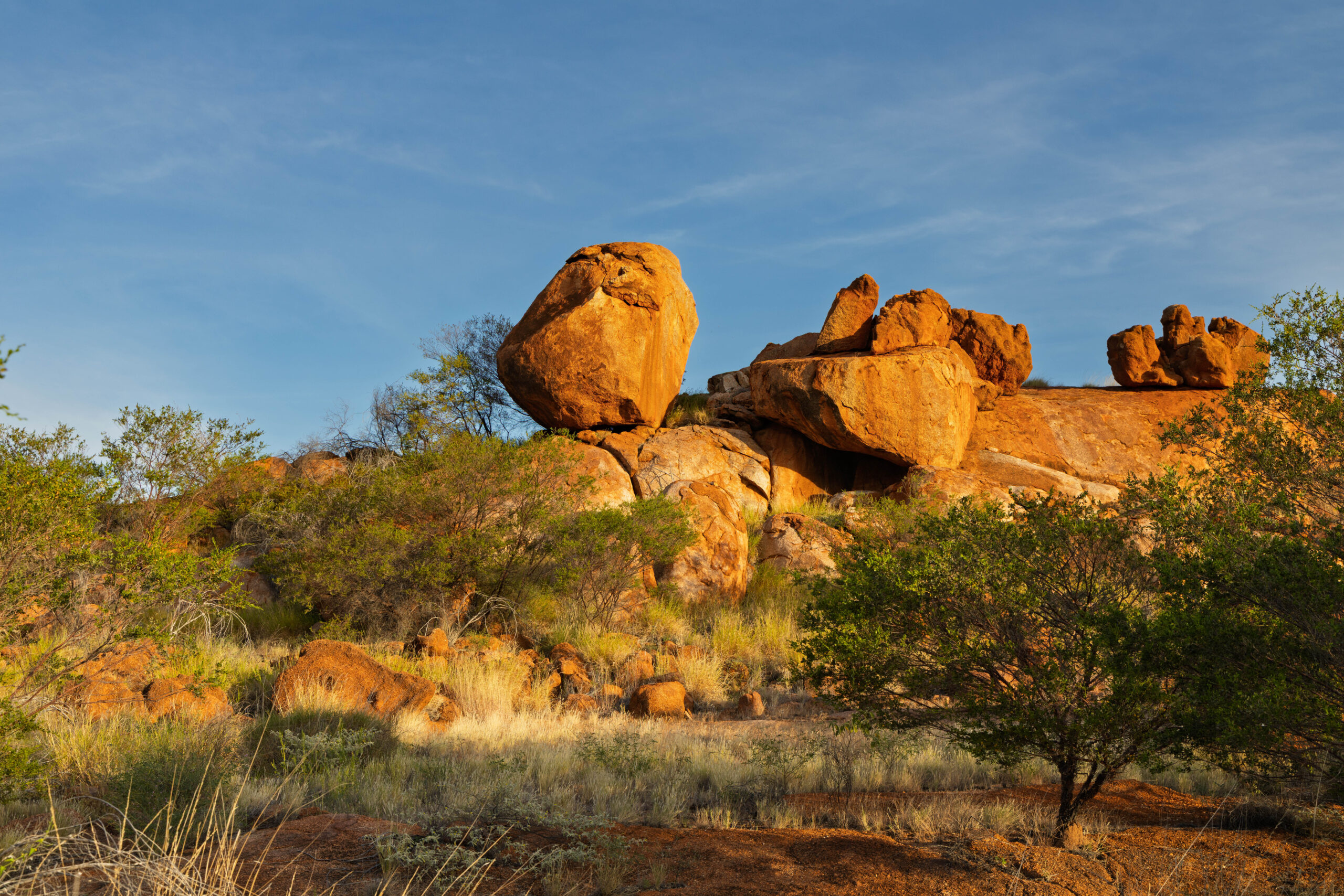 Around 5.00pm we drove out to Karlu Karlu (Devils Marbles) to make the most of the late afternoon light and the reflection of the setting sun on the ‘marbles’. The site was much larger than we had expected, with several hectares covered in scattered, stacked and balancing granite boulders, that are remnants from a solid mass of granite, the bulk of which still lies underneath them. When we arrived we had the site to ourselves, although more people arrived as sunset drew closer. As we wandered down from the Nyanjiki Lookout, we encountered three people heading up with their pizzas and pillows, to settle in for the sunset. Rather than watching the sun sink below the horizon from the lookout, we were more interested in watching the changing light on the marbles.