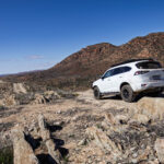 After lunch it was time to undertake the more challenging red route. It started out gently enough driving through a forest of pine trees. We soon arrived at the 4WD gate where our self guided booklet and map told us that we were at the beginning of the steep ascent to Prelinna Lookout. ENGAGE 4WD INTO LOW RANGE it added. I jumped out with the red key to open the gate and then close it again behind the truck.
