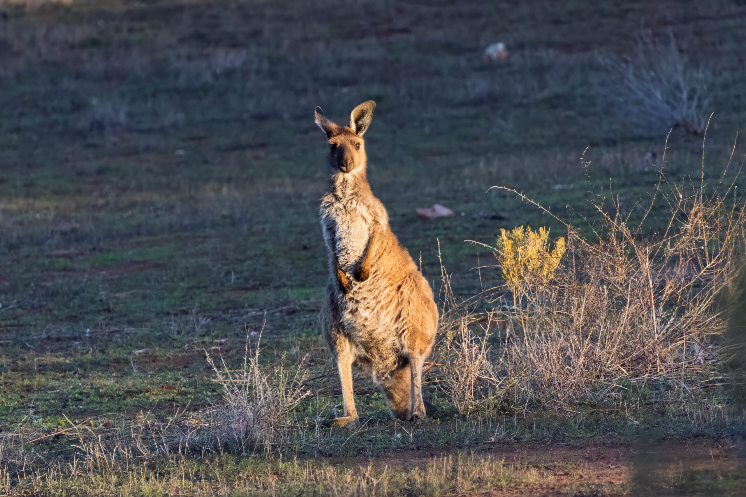 Studying the Rawnsley Park Station ‘Walking and cycling trails’ guide we have learnt about Euros … Macropus robustus, not the currency of Europe!! The guide says that these can be seen grazing the lower hills country of Rawnsley Park, particularly in the late afternoon on the walking trail to Alison Saddle. So … that is almost certainly the macropod we saw on the walk we took this afternoon. But were the macropods earlier today also Euros or were they Western Grey Kangaroos (Macropus fuliginosus)?? They look VERY alike so very difficult for a layperson to differentiate, especially at a distance and/or moving.
