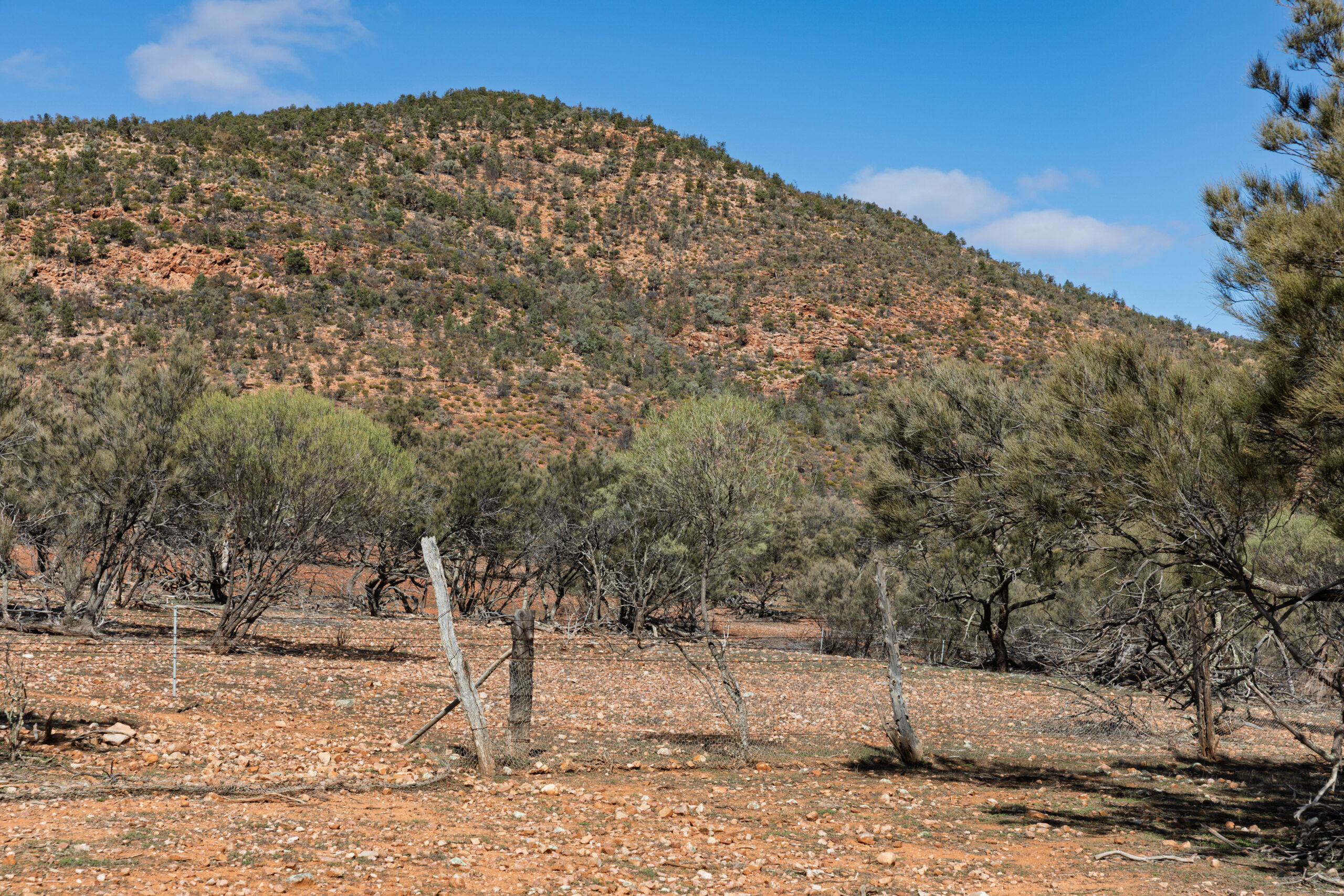 The next feature of note was a man-made one, the dog fence. These days it is an old and worn wire fence that wouldn’t keep anything out … or in for that matter. In the late 1800s it was built to keep dingoes out of the newly settled farming land. Between 1910 and 2000 dingoes were almost extinct in the Flinders Ranges but over the last two decades many sightings have been reported.