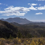 It was nearly 4.30pm so we couldn’t go far with sunset tonight at 5.37pm. We didn’t want to be stumbling around out there in the dark! We decided to do the gentle climb to Alison Saddle. Although not very high the elevation provided us with more excellent views of the countryside. With the light still good, we decided that we would walk to the top of the hill on the Pines Cave Trail. If we had started this walk earlier in the day we would have been able to complete a two-hour loop walk by combining these trails. After admiring the views from the slightly higher elevation we made our way back down to our cozy cabin for the evening.