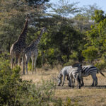 We soon saw some female warthogs with their young, an ostrich, some southern ground hornbills and a herd of zebras. More birds, this time grey louries, before or first giraffe sighting for the day. More zebras and some steenbok. We turned around and re-traced our path, saw the ostrich again and some common impala, more zebras and giraffes.