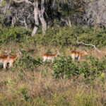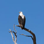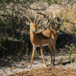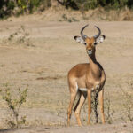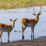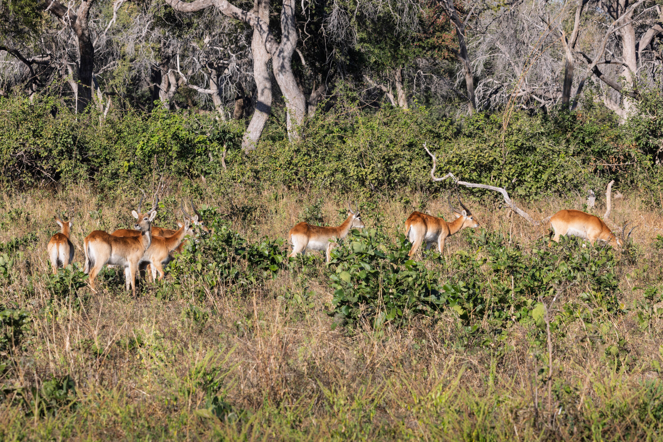 Turning onto a new track, we saw more common impala. There’s a reason the word ‘common’ features in their name, there are plenty of them! Next a red lechwe, some juvenile buteleurs (birds of prey), an African fish eagle and a martial eagle.