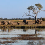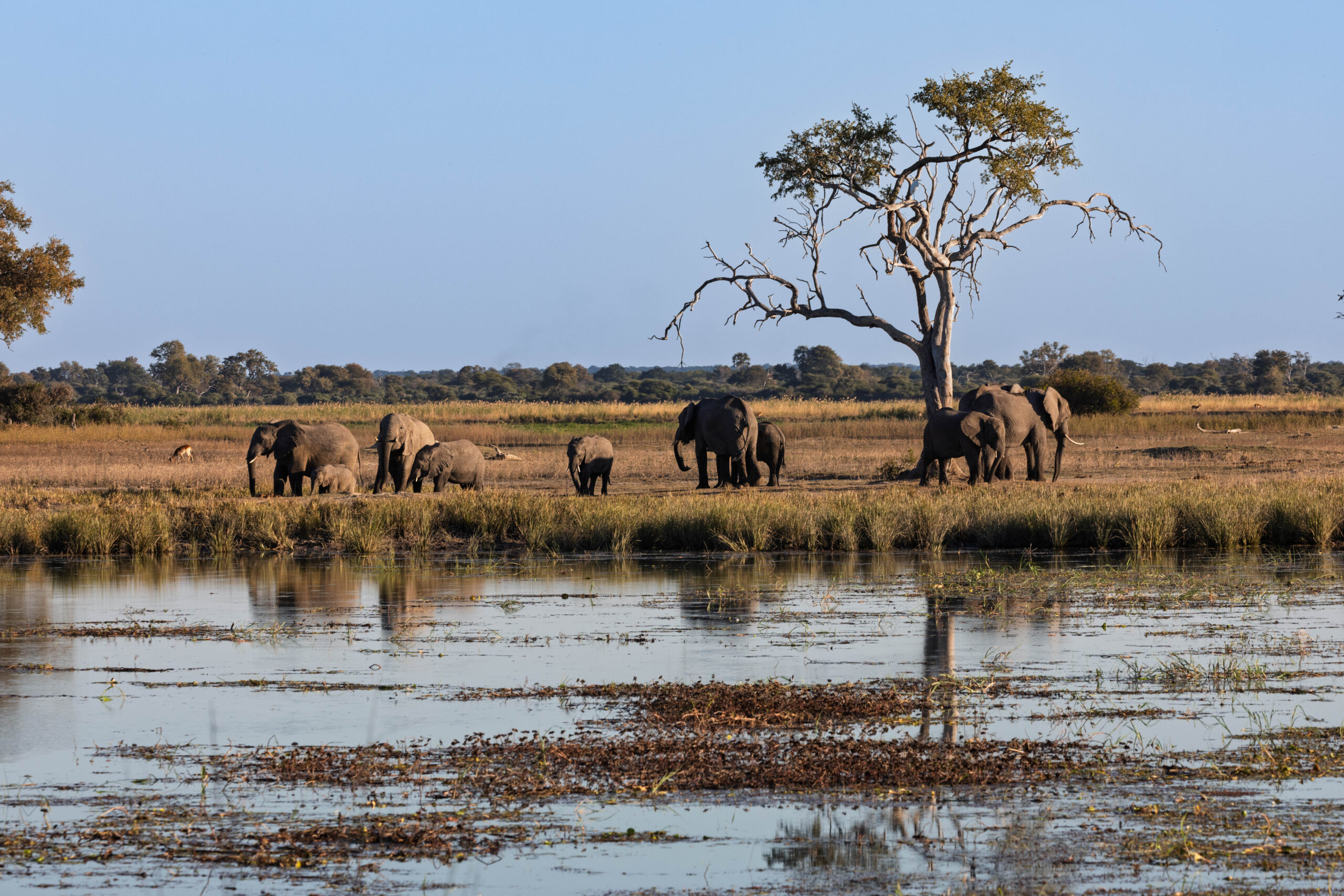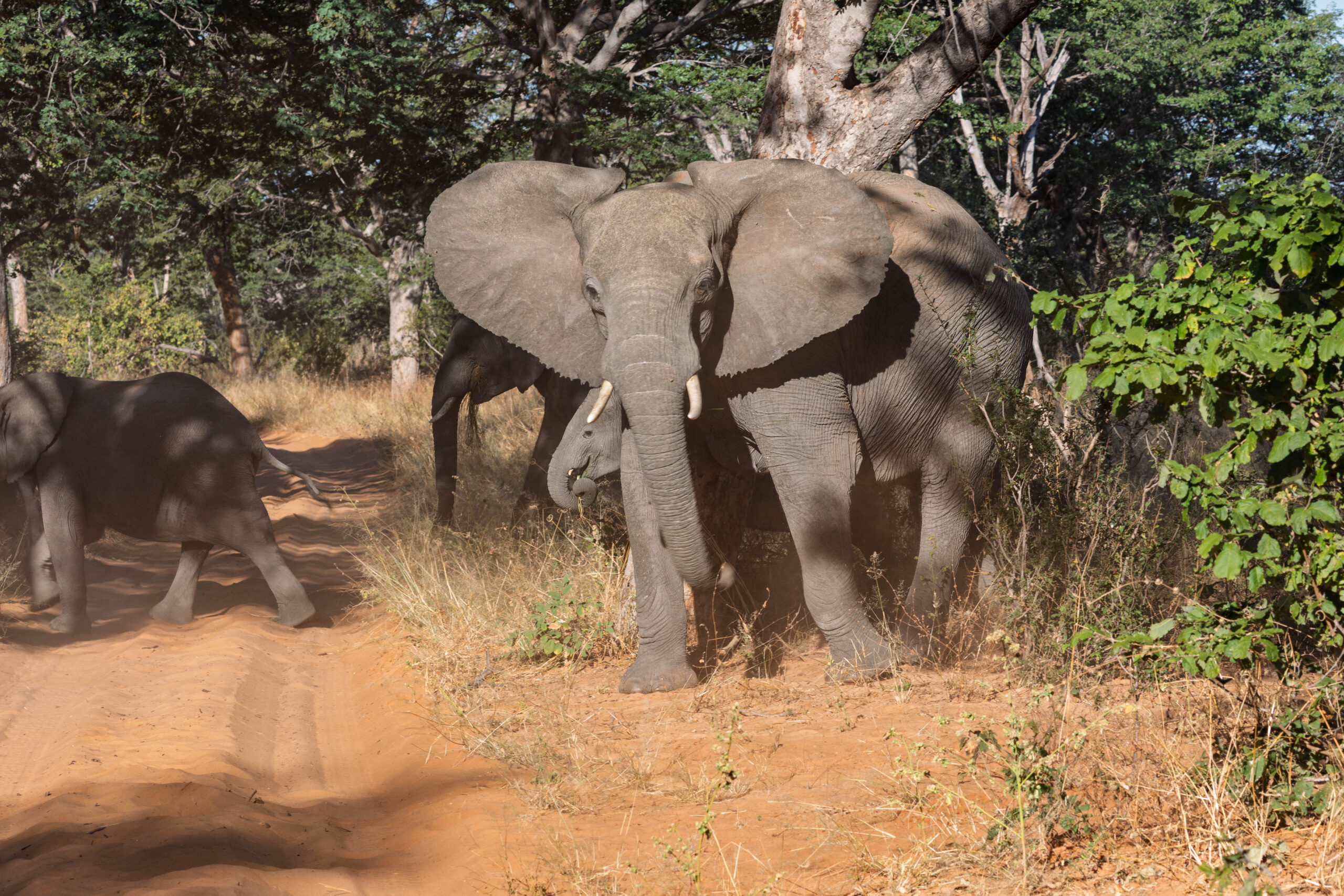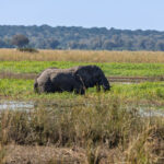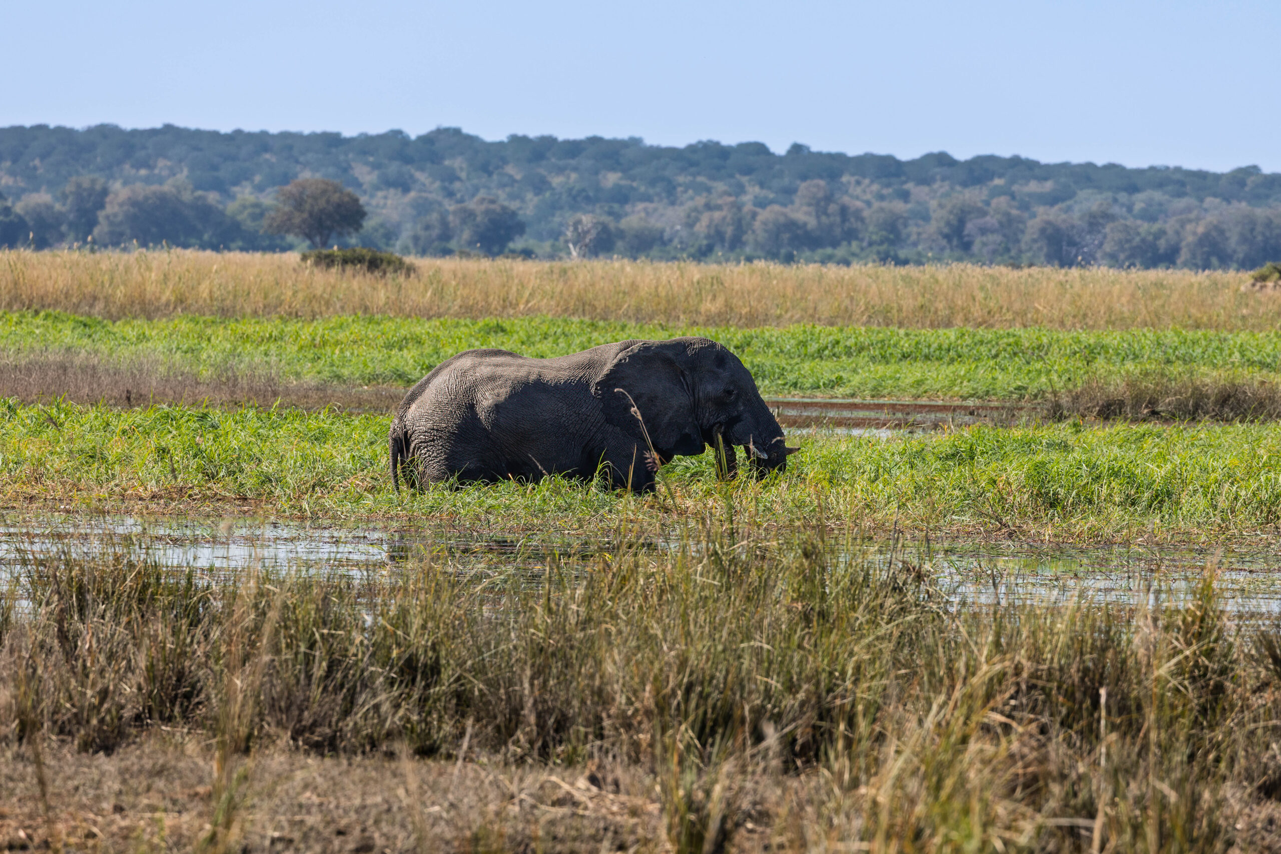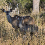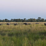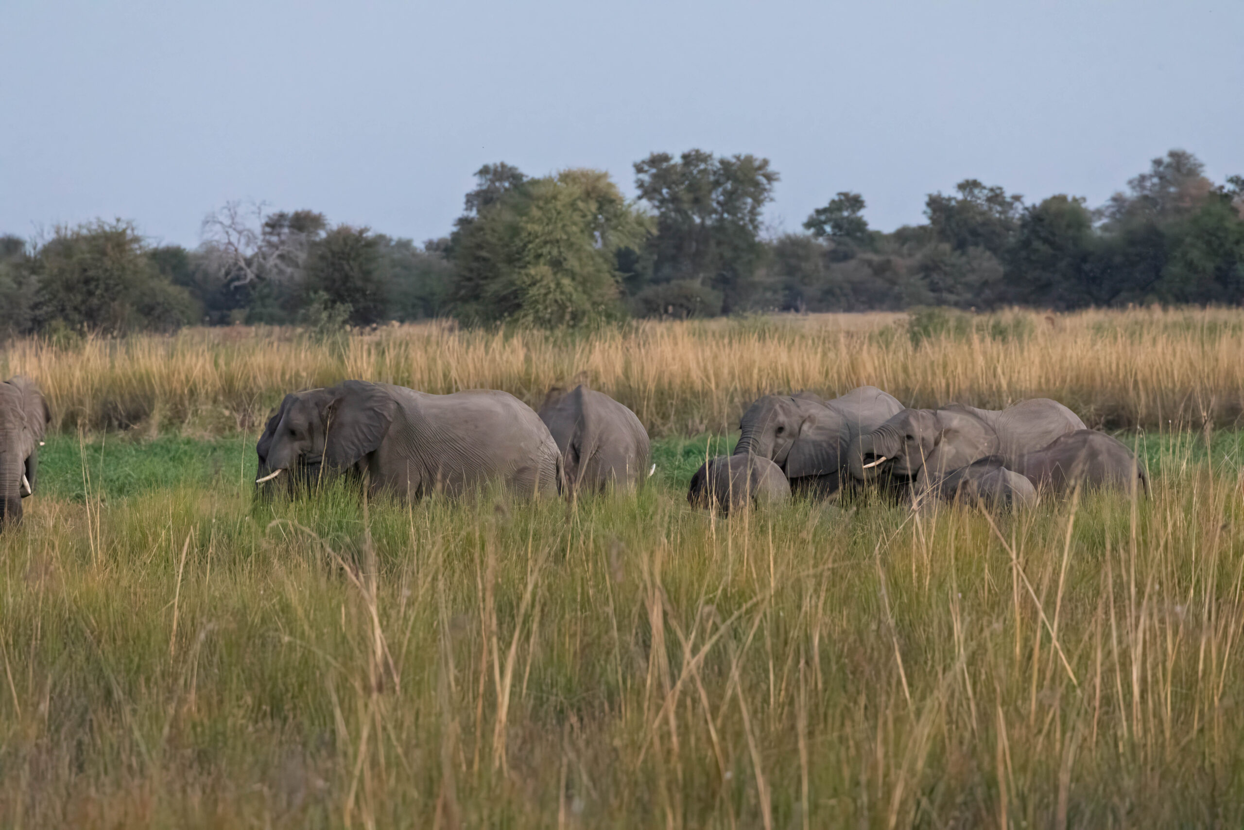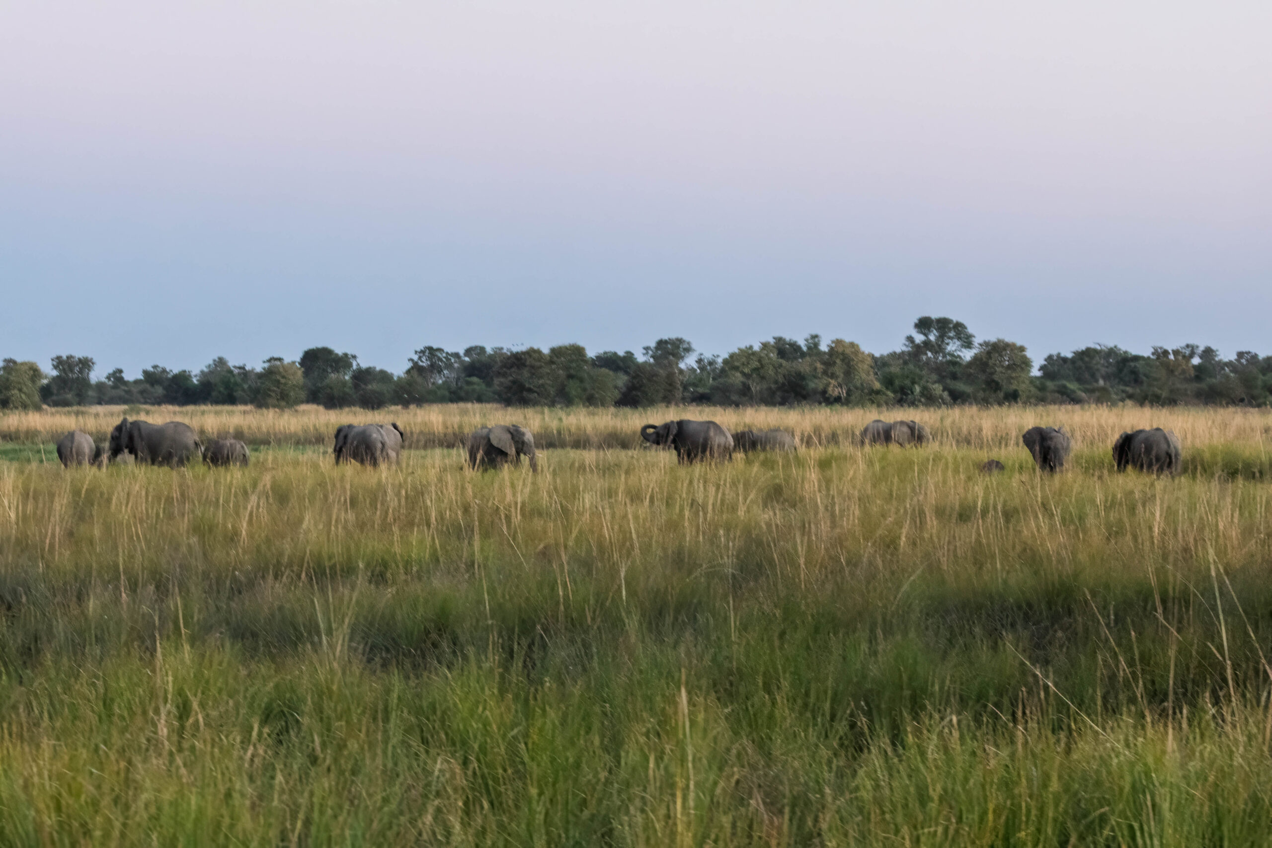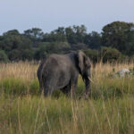 We stopped for another bush toilet opportunity and we were given water from the cooler to top us back up! As we started the drive back to the lodge we saw more elephants, black-winged stilts, a very cute baby elephant and an osprey sitting atop a tree being harassed by some smaller bird, who obviously thought the bird of prey was much too close to their home. And … more of the same, a waterbuck, reedbucks, even MORE elephants (so many elephants!) and, in the dying light, a sable antelope but, unfortunately, no big cats.
