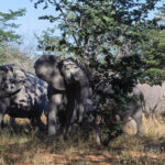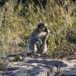 Sylvester drove us through the military ruins of the abandoned Pica Pau army base. The base served the South African forces as a support point during their period in Namibia fighting against the freedom movement. As our game drive continued we saw elephants, vervet monkeys, red lechwes, a lappet-faced vulture, southern red-billed hornbills and a grey-headed kingfisher.