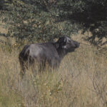 After our toilet stop we saw the vulture again and then the call went up for buffalo. The second vehicle was slightly ahead of us and they had disturbed the herd which was stampeding across the road in front of them. I think by the time we realised, we saw the last couple of buffalo disappear into the bush in front of the other safari vehicle. Tobias turned in the direction they had disappeared and we tried stalking them for a while but they were really spooked and stayed well ahead of our vehicle. After one last eagle sighting it was time to head back to the lodge for lunch.