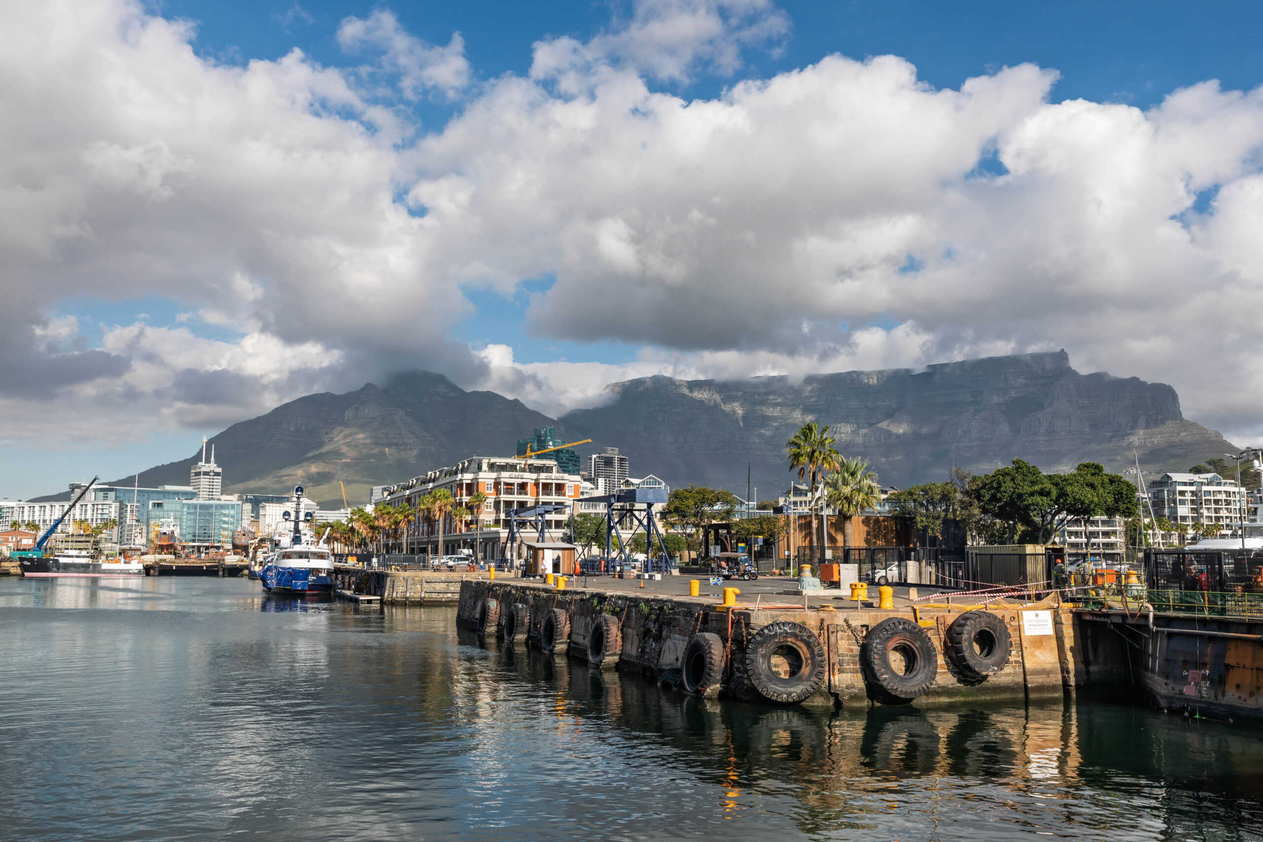 When we disembarked near the waterfront area we walked to the section of the harbour that looks towards Table Mountain to find that the cloud had cleared dramatically since we left the top. It was still clinging to the area around the cable car station on the top but the rest of the mountain was visible. Thank goodness we didn’t have to leave Cape Town without ever having seen its famous mountain rearing behind it.