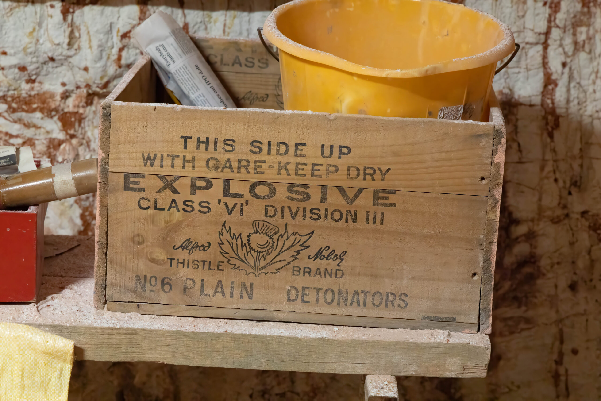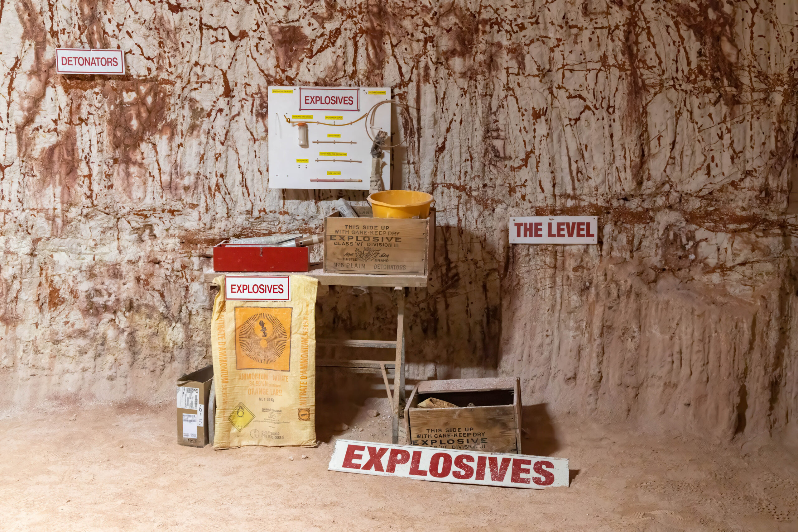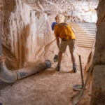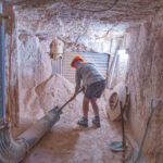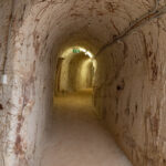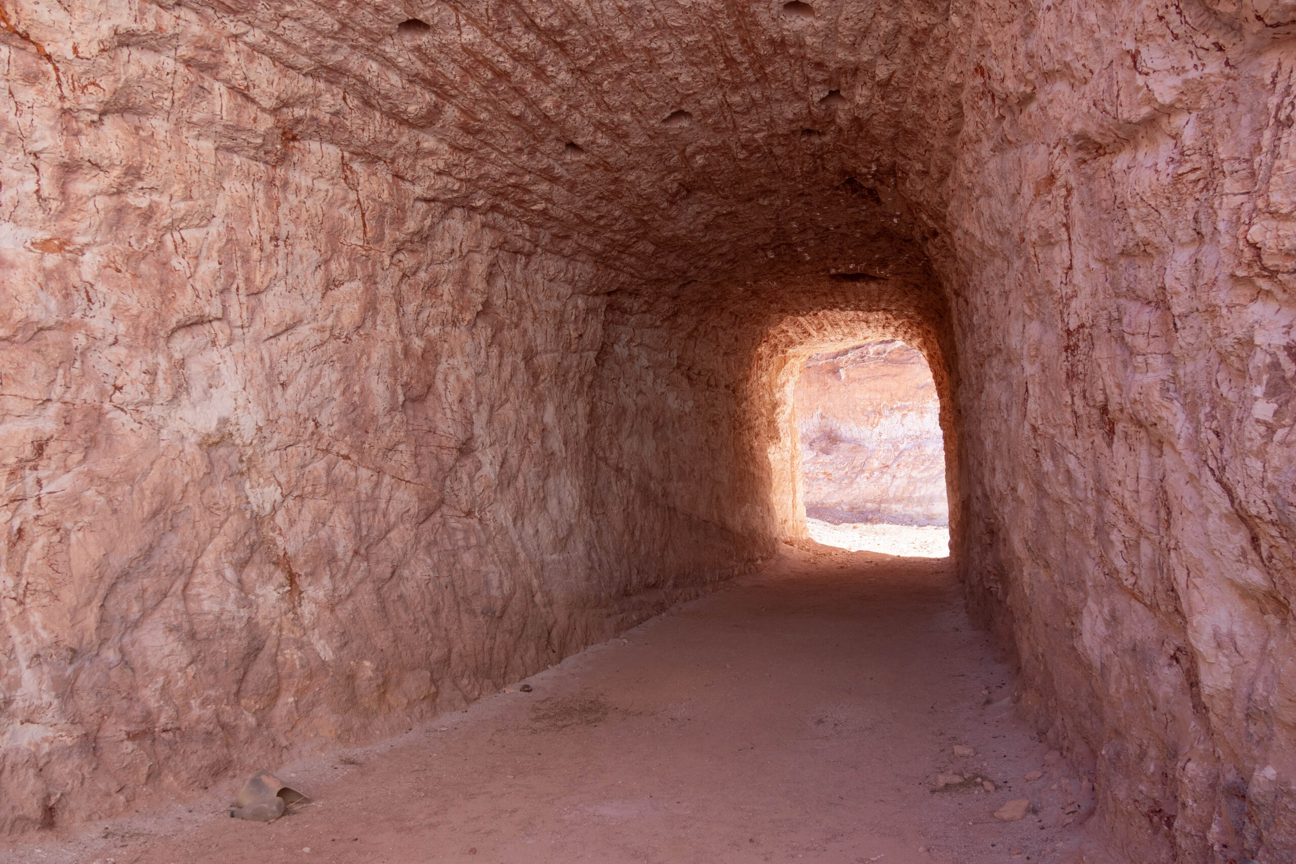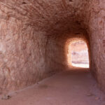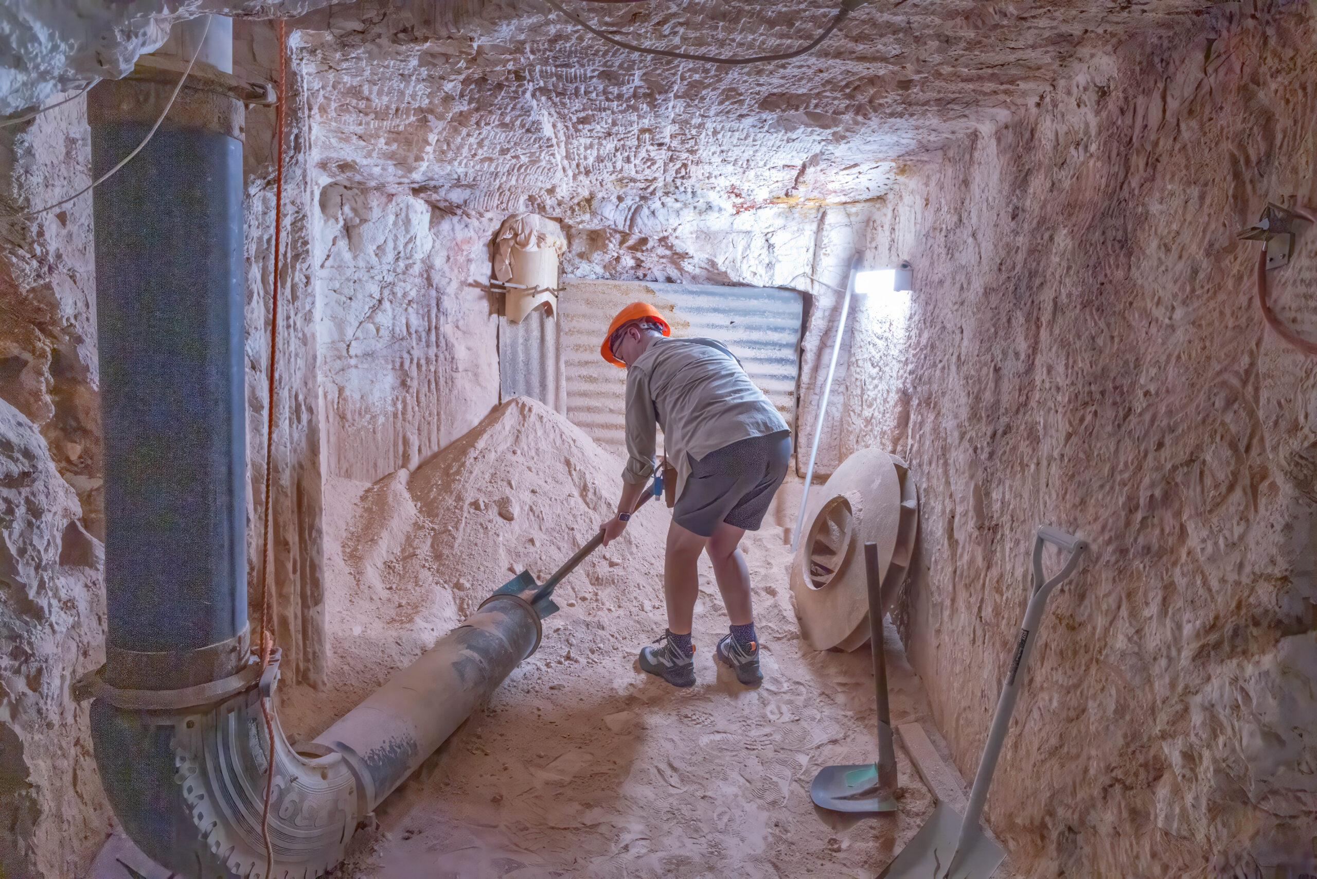 The mines here are very different from those at Lightning Ridge. Not only are the opals different – milky/white vs black – the sandstone is harder here so they can make much larger tunnels without props. We were able to walk through most of the mine without having to stoop at all. The funniest story Mila told us was when she was relating the era when they started using explosives to mine. Back then the use of explosives was barely regulated and she told us she would work down the mine after dropping the kids at school, until the afternoon school run, when she would pick up the boys, then go to the supermarket for bread and milk and a box of gelignite. Yup, they sold it at the supermarket!! And the boys used to help wrap the ‘sausages’ in newspaper and add the fuses, ready to be placed in the holes drilled in the mine the next day.