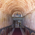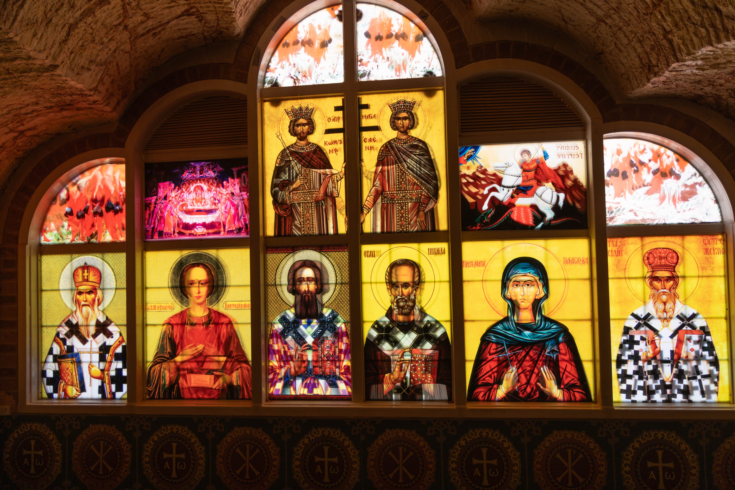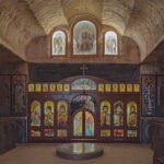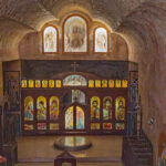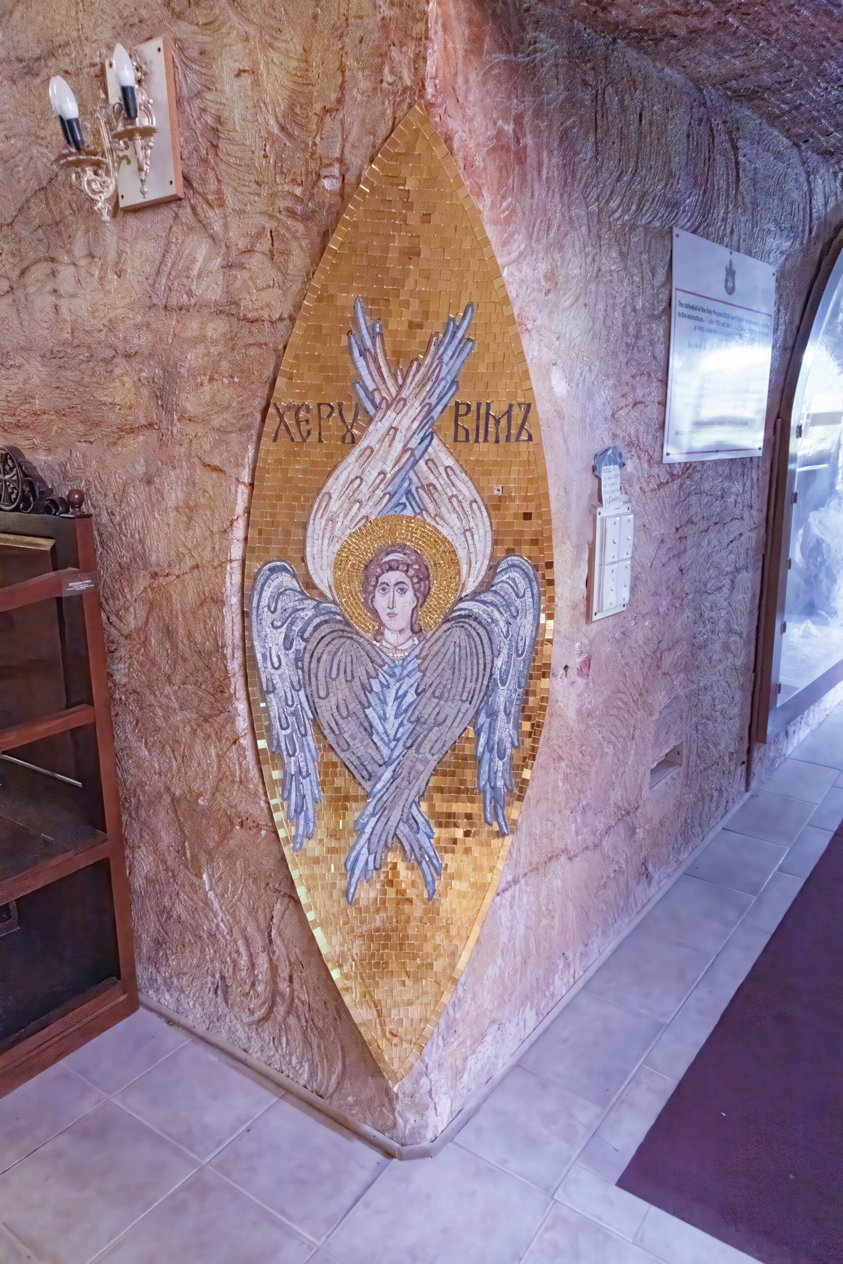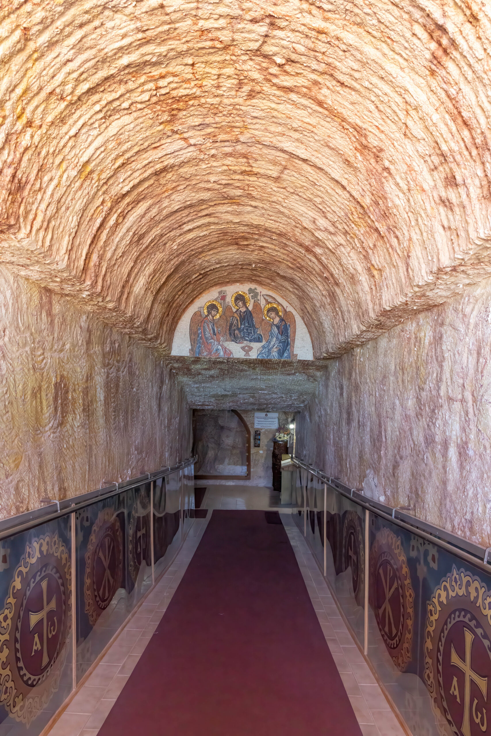 After sharing a delicious Turkish bread BLAT in the cafe at the Big Winch, we drove back down the hill to visit the Big Miner, who stands out the front of an opal jewelers shop on Simmos Street. Next on the agenda was the underground church tour of Coober Pedy. We started at the Serbian Orthodox Church which is spectacular. It was built, or rather carved into the hillside, in 1993 and is known officially as the Church of Saint Elijah, the prophet.