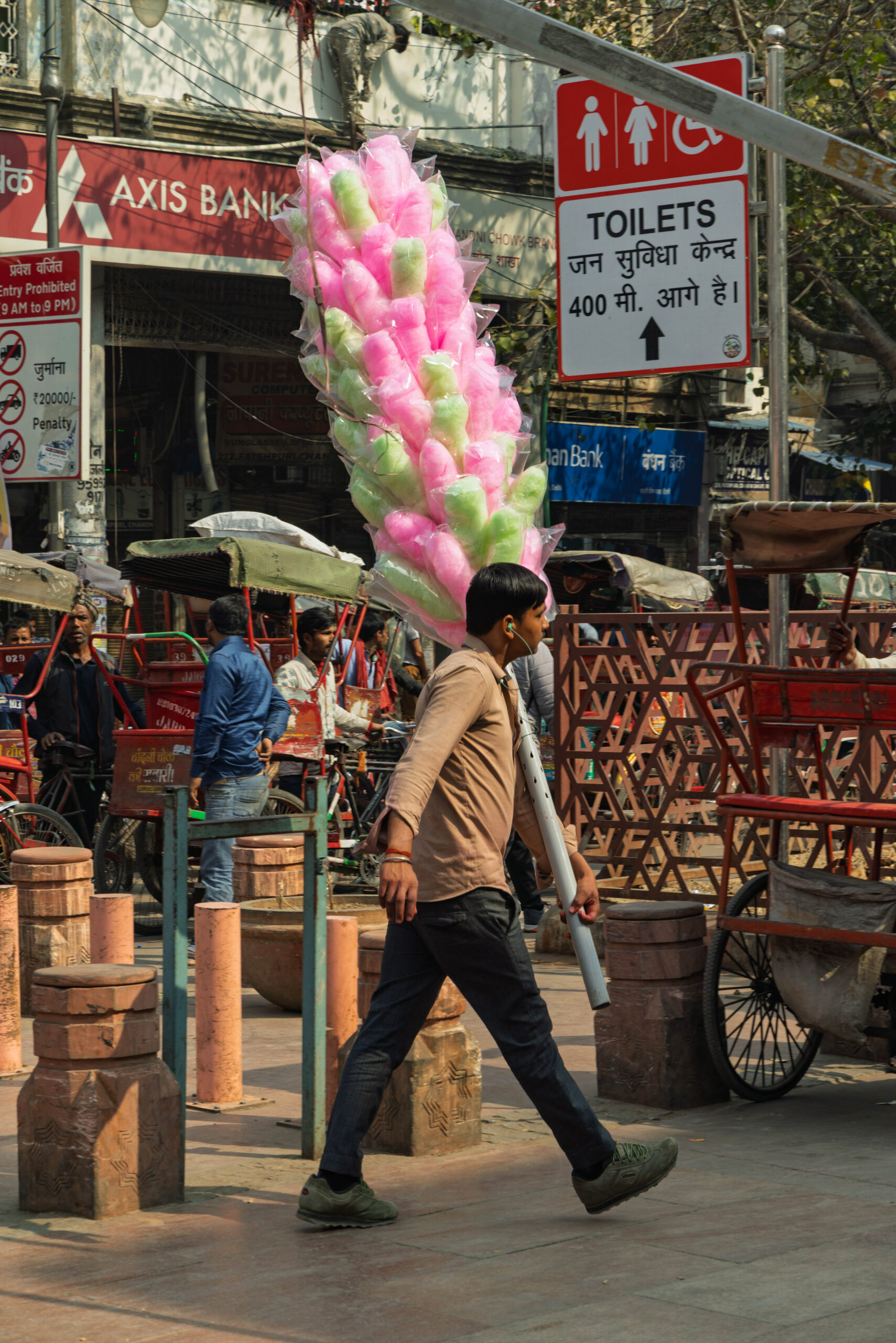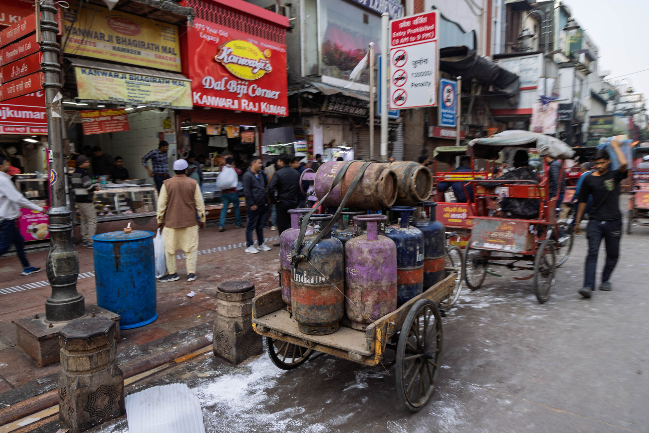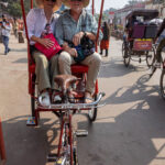 Time to alight from the bus and tackle some traffic on foot. Somehow we made it safely to the other side of the road for a quick stop at the Red Fort, which was built by the Mughal Emperor, Shahjahan. Next we met up with a group of rickshaw drivers and clambered aboard rickshaws for a ride along Chandni Chowk, the main street of Old Delhi, that boasts the famous colourful shopping bazaar and spice market.