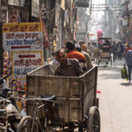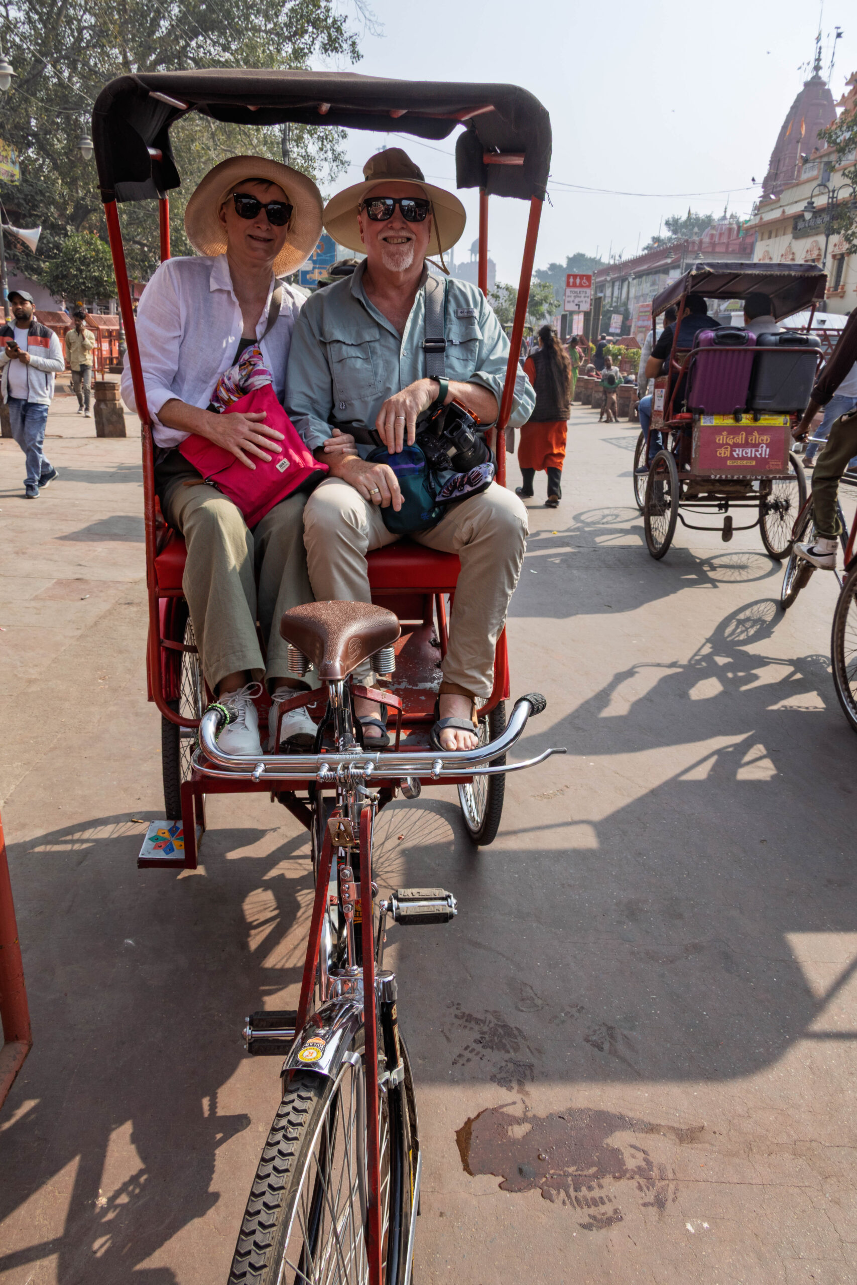 Back onto our rickshaws to start the ride back to our bus. As our driver cycled us through the streets selling saris, hardware, paper goods and more he started to tell us how hard his job was and how deserving he was of a tip. Aargh, this tipping stuff is so confusing. Chamdresh had told us that he would be paying the drivers, so we assumed the tipping would also be taken care of, but that didn’t stop our driver from mounting quite a campaign to be paid a tip. Not really knowing what the right thing to do was, we eventually agreed between us to pay him 500 rupees for the strain on his legs and the callouses on his hands … which he showed to us several times during his pleas to be rewarded for his efforts. I guess he didn’t get us killed in the crazy traffic which has to be worth the AU$7.75???