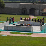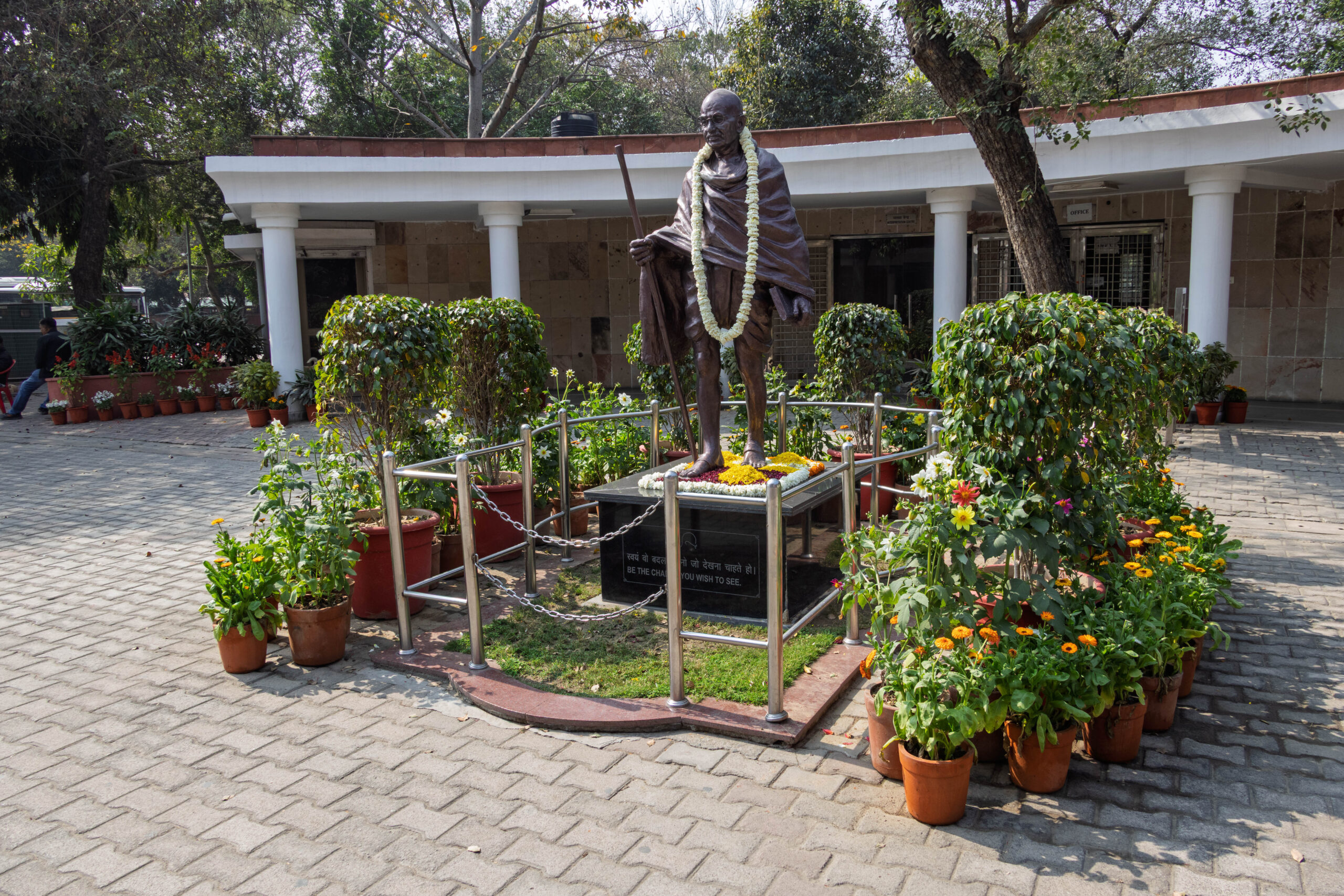 Our next stop was at Raj Ghat on the banks of the River Yumuna to visit the Ghandi Memorial. This is a glorious, green oasis, which was so at odds with the chaos of the spice market we had come from. The city really is one of contrasts. Even in such a densely populated city as Delhi there are many green spaces to be enjoyed. Chamdresh pointed out many of the parks as we drove around and during the day we negotiated many roundabout oases that contained gardens, fountains and statuary. But, back to the Ghandi Memorial, we completed a walk around the elevated square and were able to look over the tomb, the eternal flame and the many visitors entering the square below to pay homage to Ghandi. After enjoying the peacefulness of the memorial it was back into the traffic to drive back to the new city for some lunch. We ate at Lazeez Affaire, enjoying our first Indian food in India. Bernie and I shared a paneer kofta and a vegetarian biryani both of which were delicious and not too spicy.