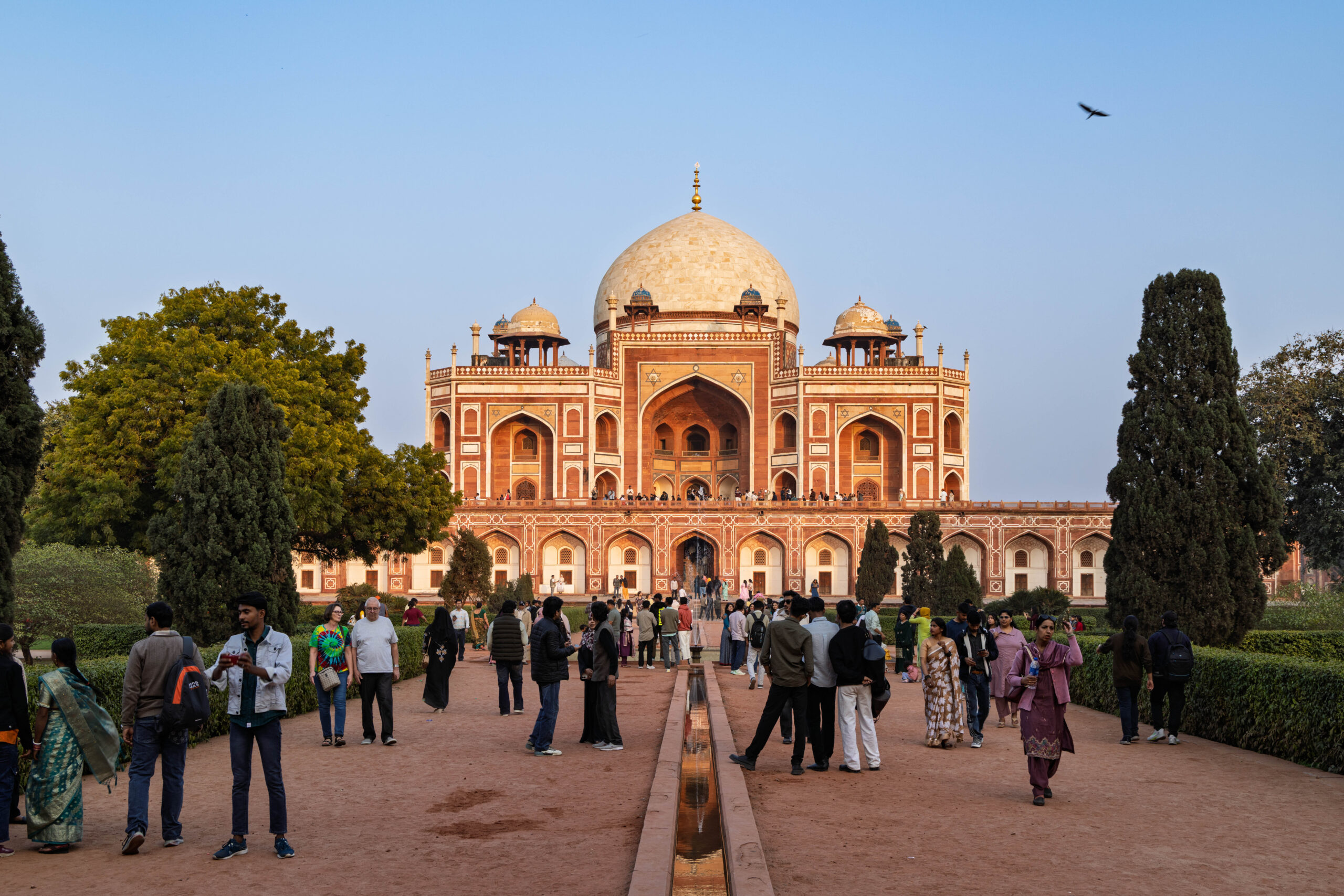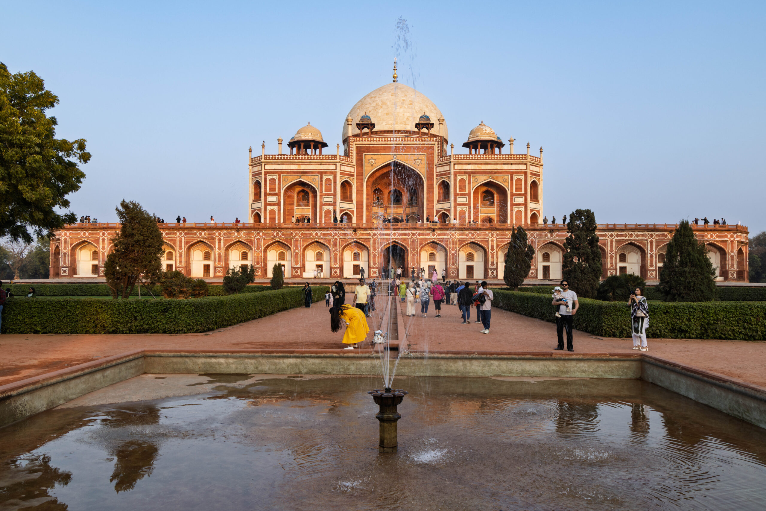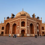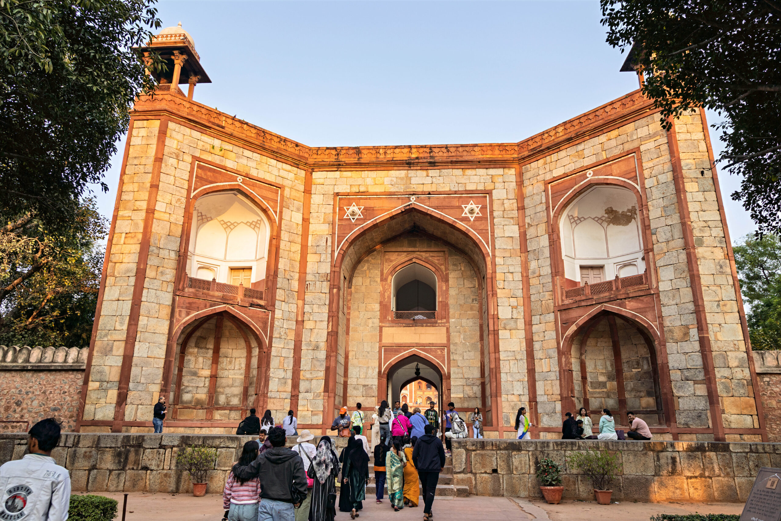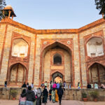 And so the afternoon (or should that be evening?) tour commenced. India has an astounding 40 UNESCO World Heritage sites, one of the largest concentrations in the world, and this tour provided us with the opportunity to discover two of Delhi’s UNESCO-listed sites. We arrived at Humayun’s Tomb at 5.25pm and it was due to close at 6.00pm. The site is vast, so we really had to concentrate on seeing the main structure in, which the tomb is housed, before closing time.The building is the first great example of Mughal architecture in India and was built in 1570 to house the Emperor’s body. It is a very impressive mausoleum surrounded by expansive gardens!