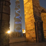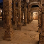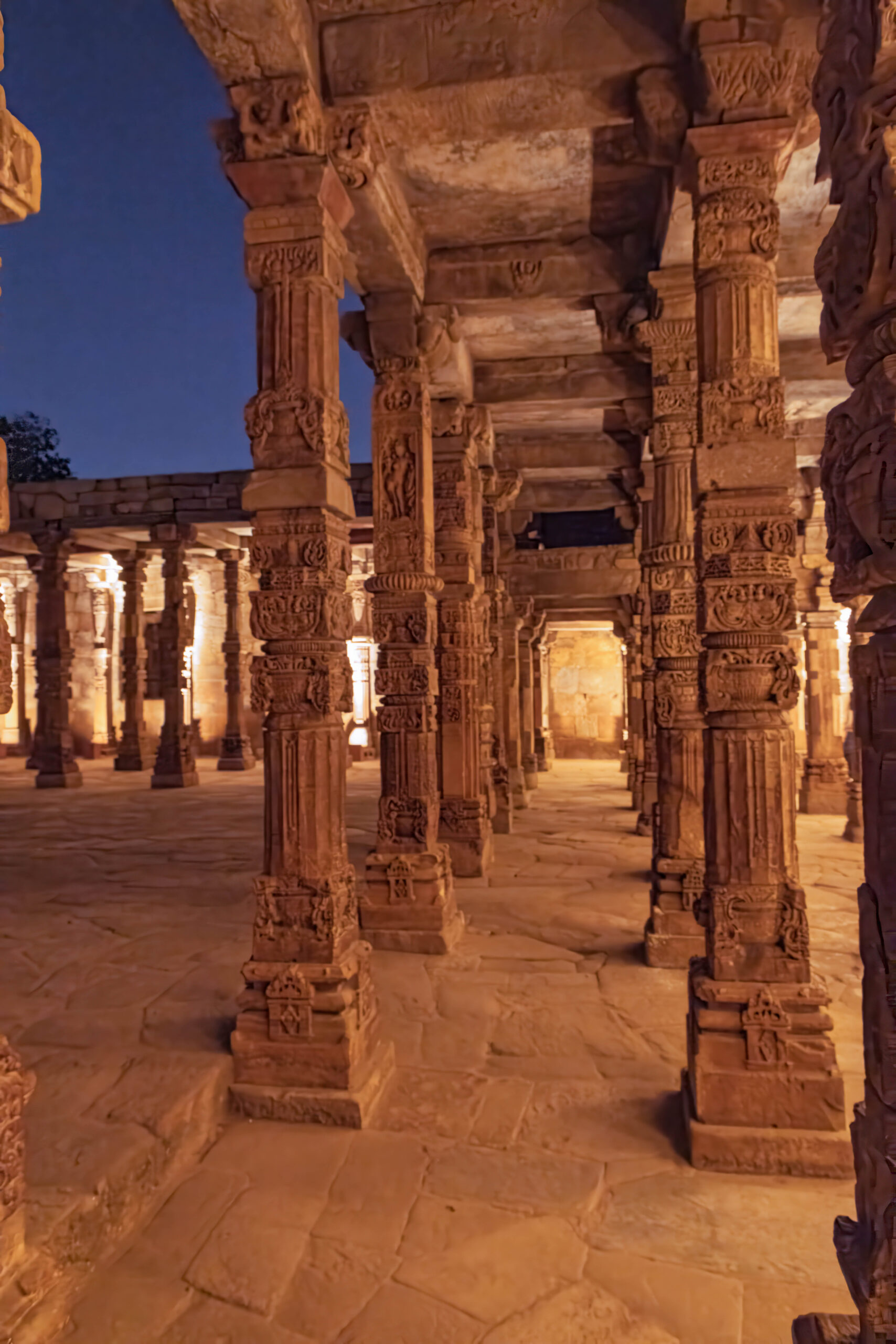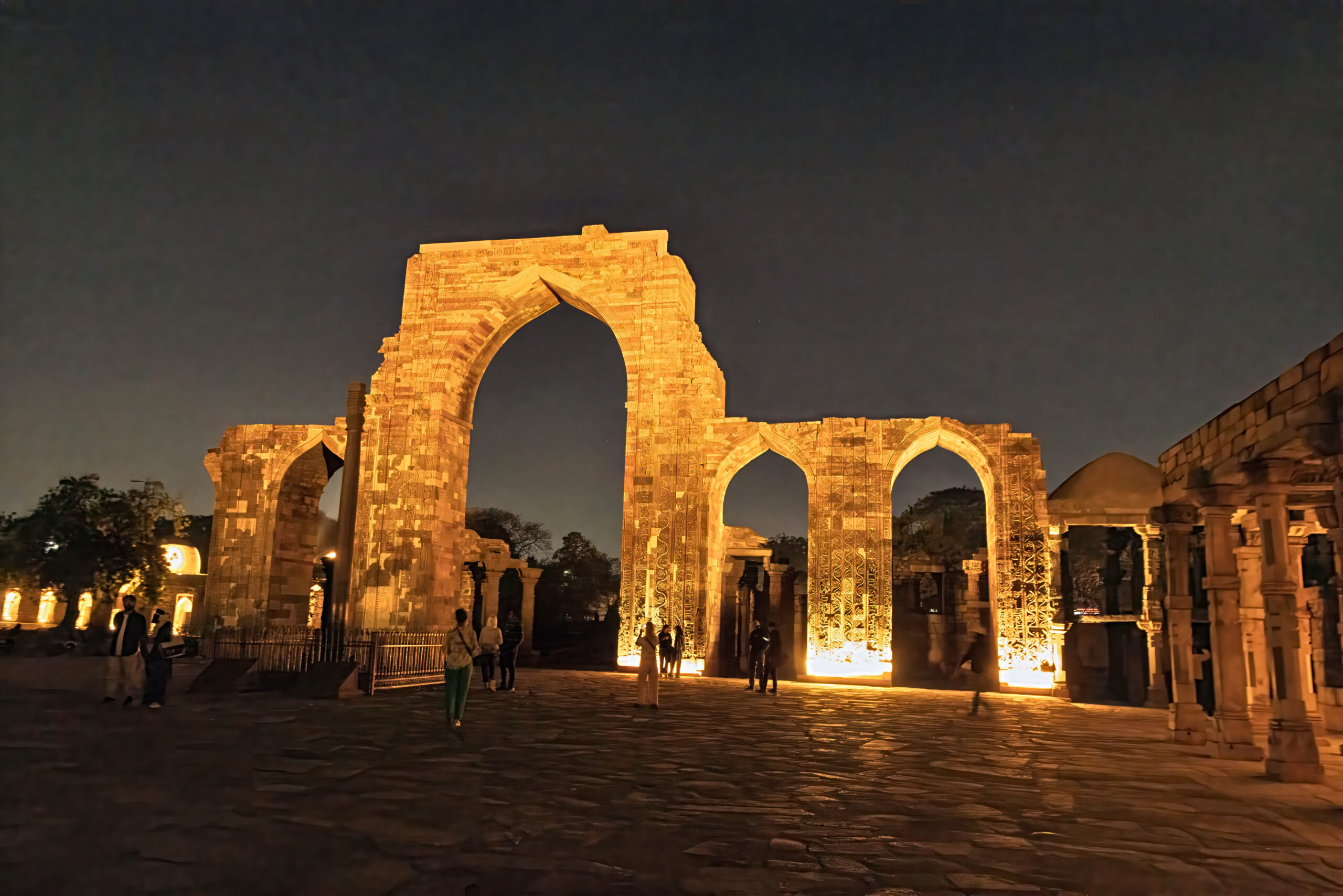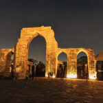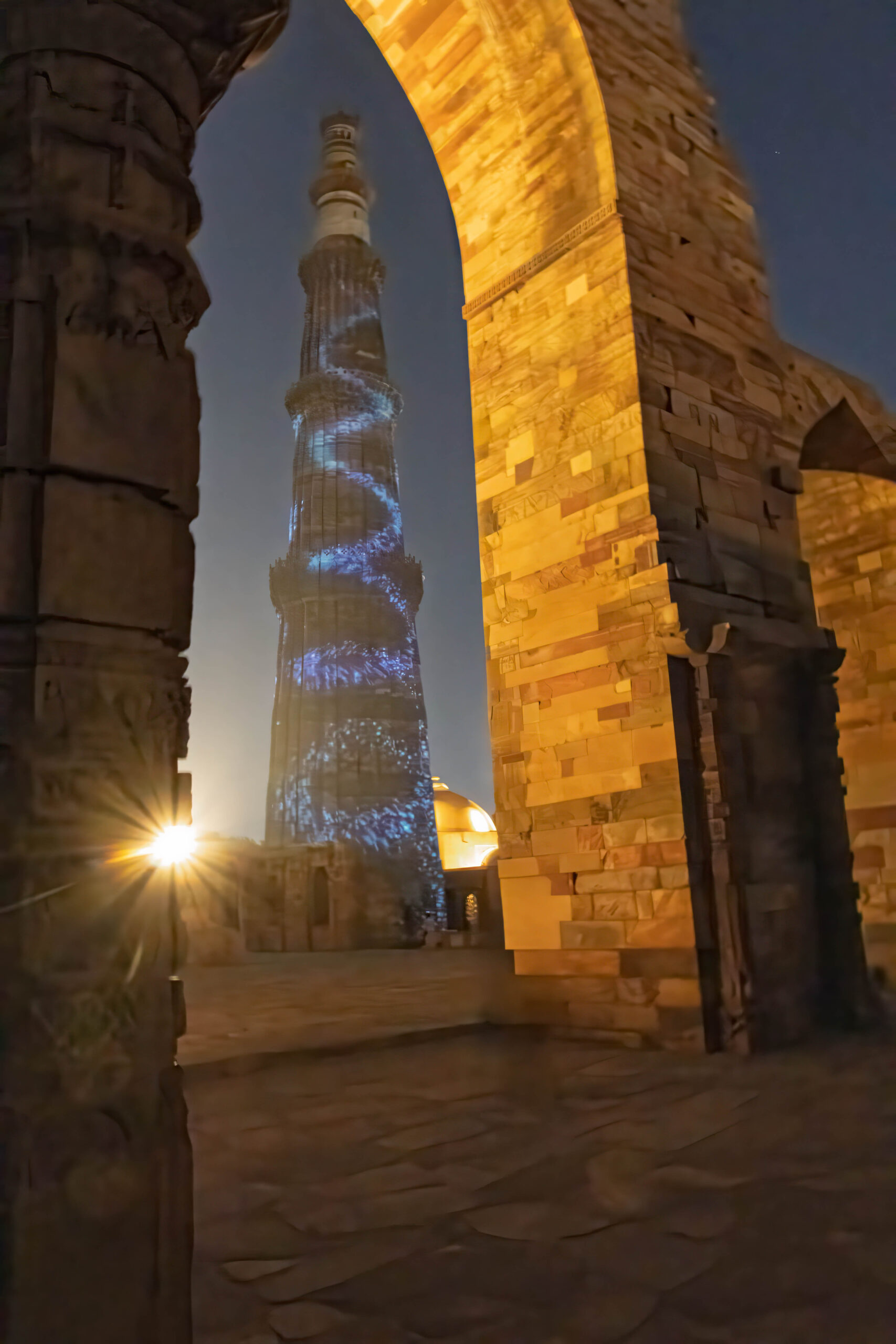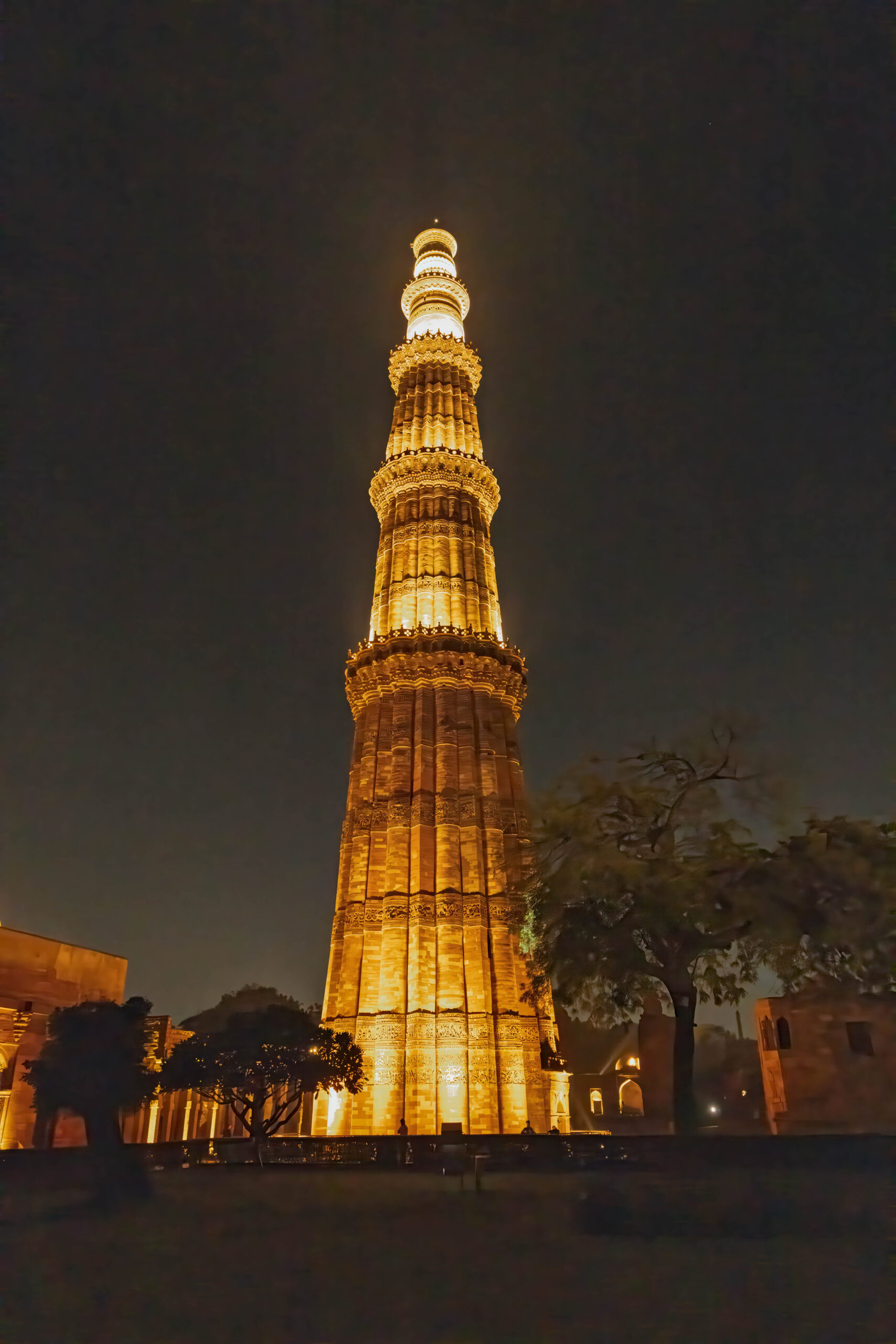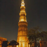 Back to the bus to negotiate more traffic as we travelled to Qutub Minar. It was now dark but this was OK because this site is the only one that remans open after sunset, because the tower is lit at night and features a sound a light show that is projected on to its facade. The tower is a 72.5-metre victory tower with five distinct stories and it looked spectacular with the spotlights on it. Built by Qutb ud-din Aibak in 1193, it is the world’s tallest brick minaret. The red sandstone structure has words from the Quran intricately engraved into it. As spectacular at the tower was at night it would have been lovely to see it in daylight too when the engraving on it would have been easier to see. It has just taken sooooo long to drive everywhere today that we consider ourselves lucky to have seen as much as we have!