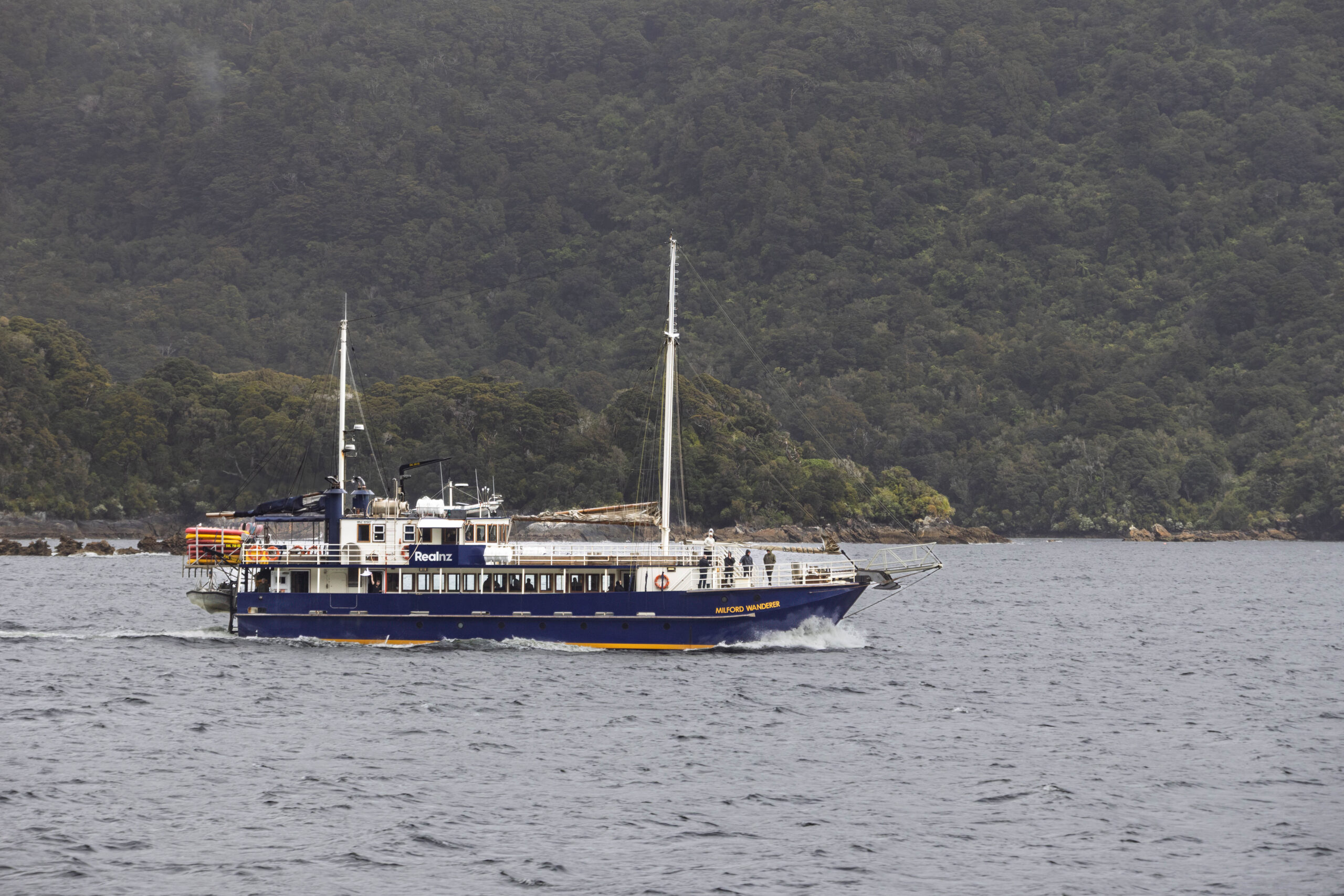 Arriving at Deep Cove we found a collection of buildings. Another visitor centre to service the cruise passengers, a school holiday camp and a caretaker’s residence. A very, very isolated place to live! We transferred from our two busses and boarded another boat to set out into Doubtful Sound.