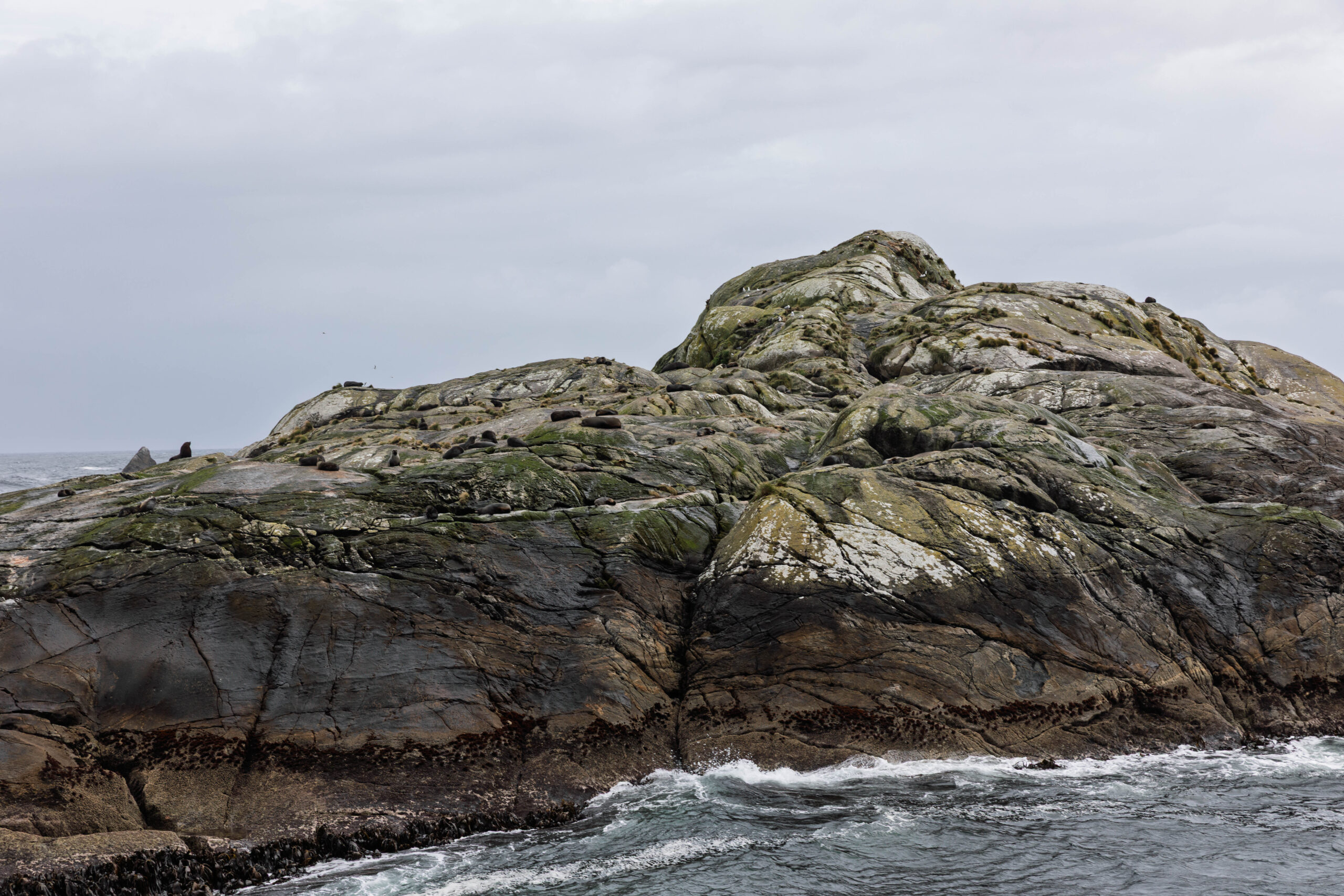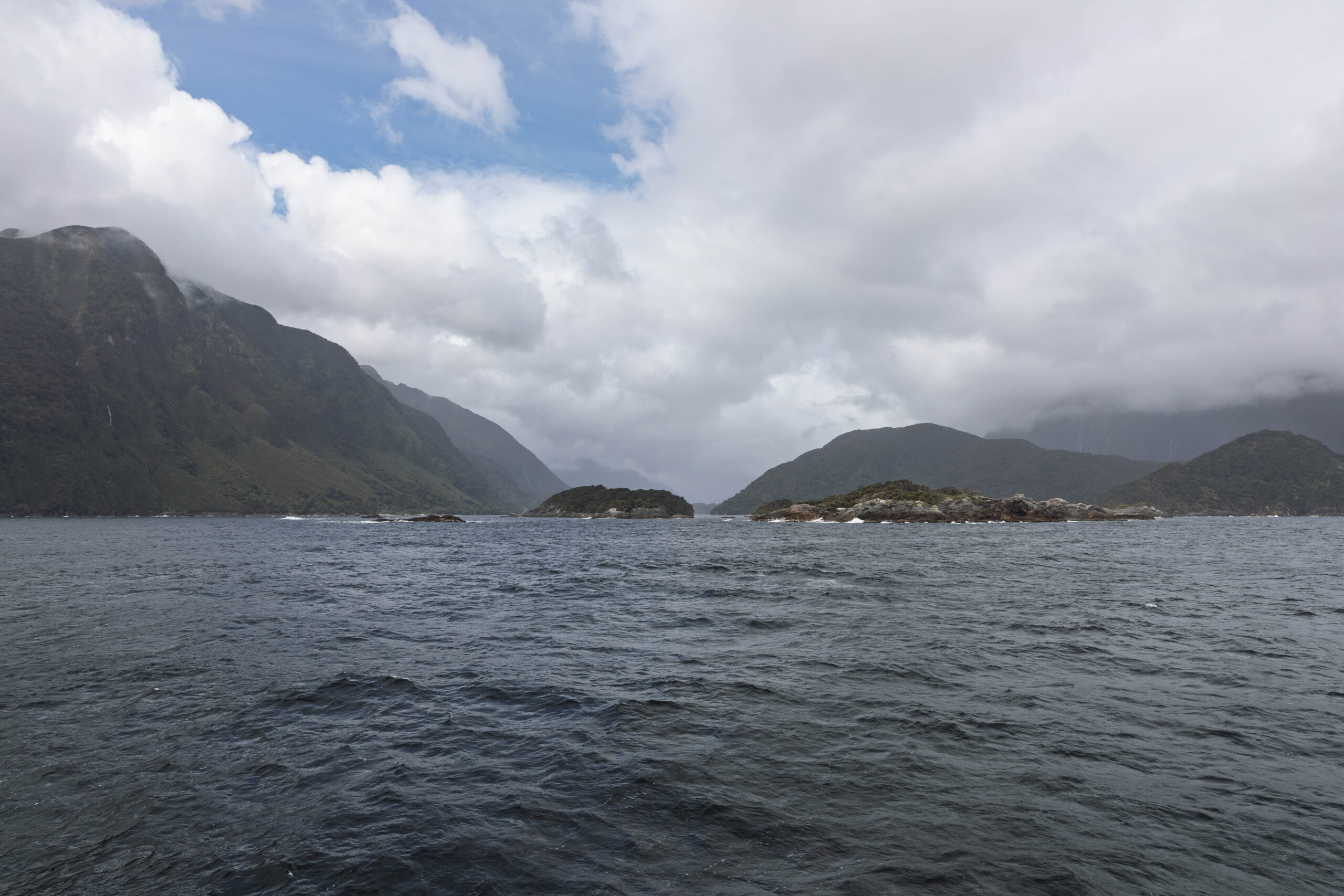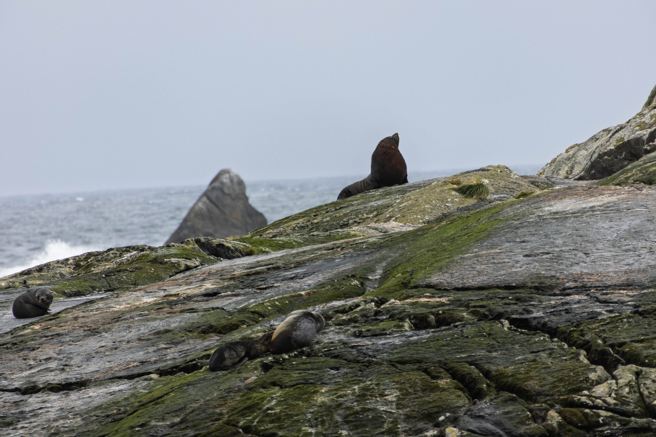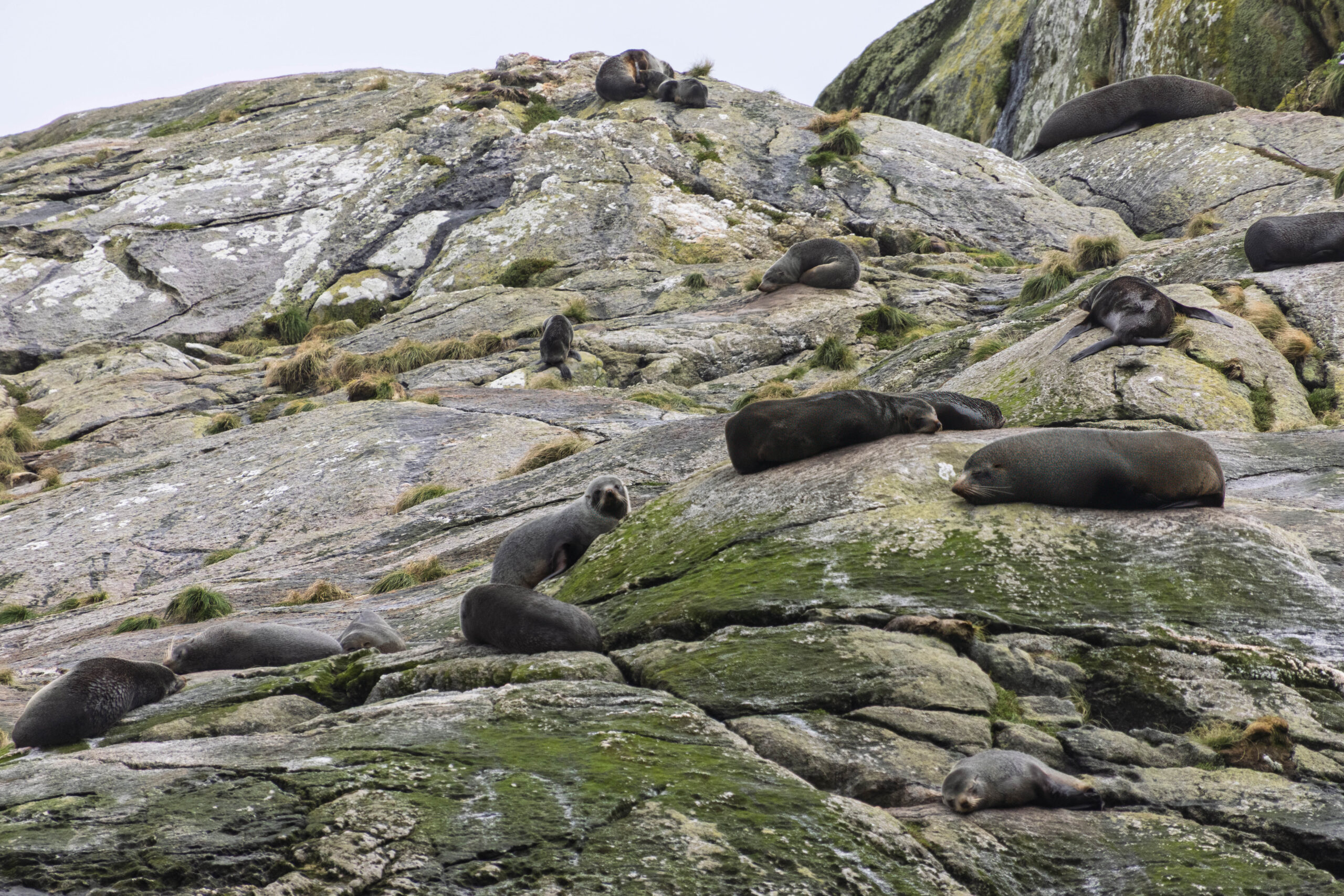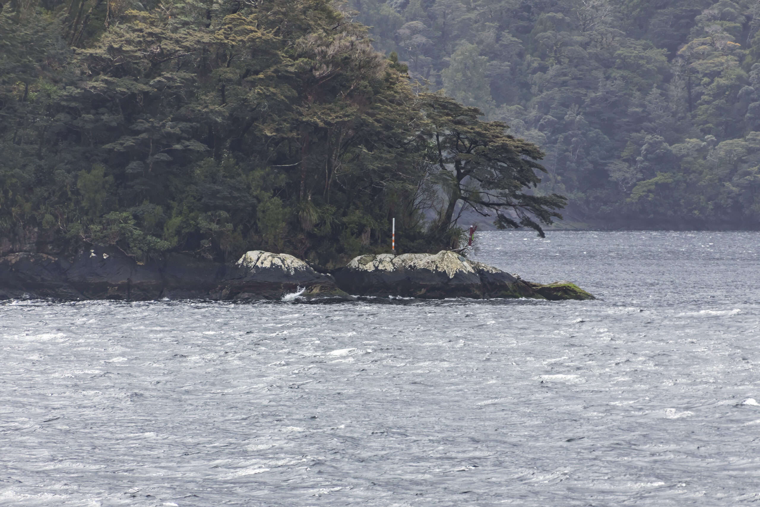 Arriving at Bauzá Island, our guide told us that we would be passing through Te Awaatu Channel, the narrowest point of the sound. Andrew also told us that this area has been declared a Marine Reserve to protect the black coral that grows in these waters. We sailed past the Shelter Islands, named as such because they provide the last shelter before you pass into the Tasman Sea. We sailed just a little further to the Nee Islands to observe the New Zealand Fur Seals hauled out onto these rocky outcrops at the mouth of Doubtful Sound.