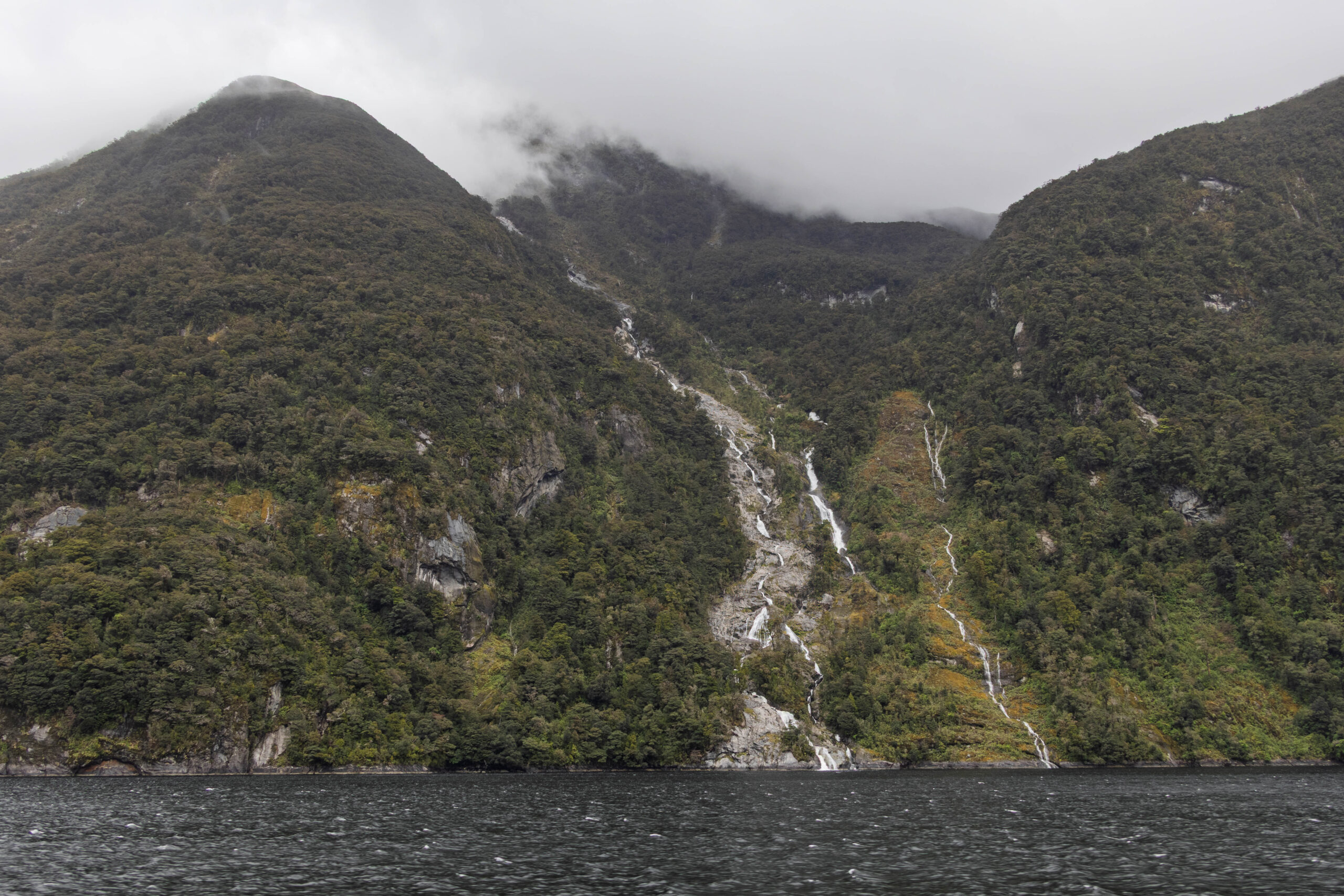 We were given a detailed explanation about the difference between a fiord and a sound. The primary difference is that fiords are carved by glaciers, resulting in steep cliffs and dramatic landscapes, while sounds are created by the drowning of river valleys by rising sea levels. So … Doubtful Sound was created by glacial activity and technically it IS a fiord but, apparently, the whalers and sealers who renamed it Doubtful Sound didn’t know the word fiord and it looked like a ‘sound’ to them.