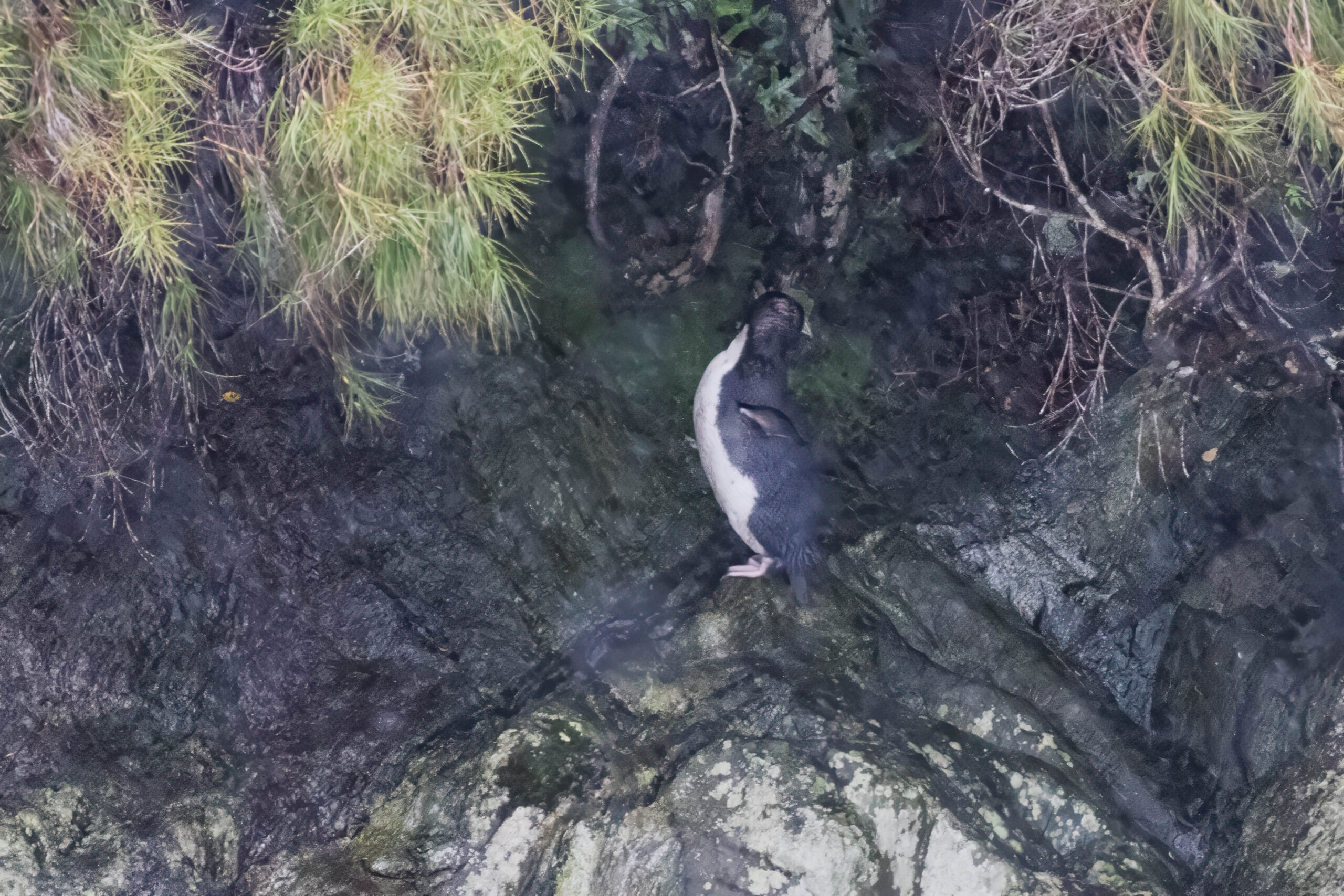We had a brief spotting of a pair of the Fiordland penguins, but they didn’t like the boat and quickly headed back into their burrow, before arriving at the final permanent waterfall on our cruise, the Lady Alice Falls. After this we retraced our route to Deep Cove Harbour and, I confess, even I dozed a little bit, as did Bernie! The weather had really closed in and there was nothing new to see at this point, so that made it a bit hard to stay awake.