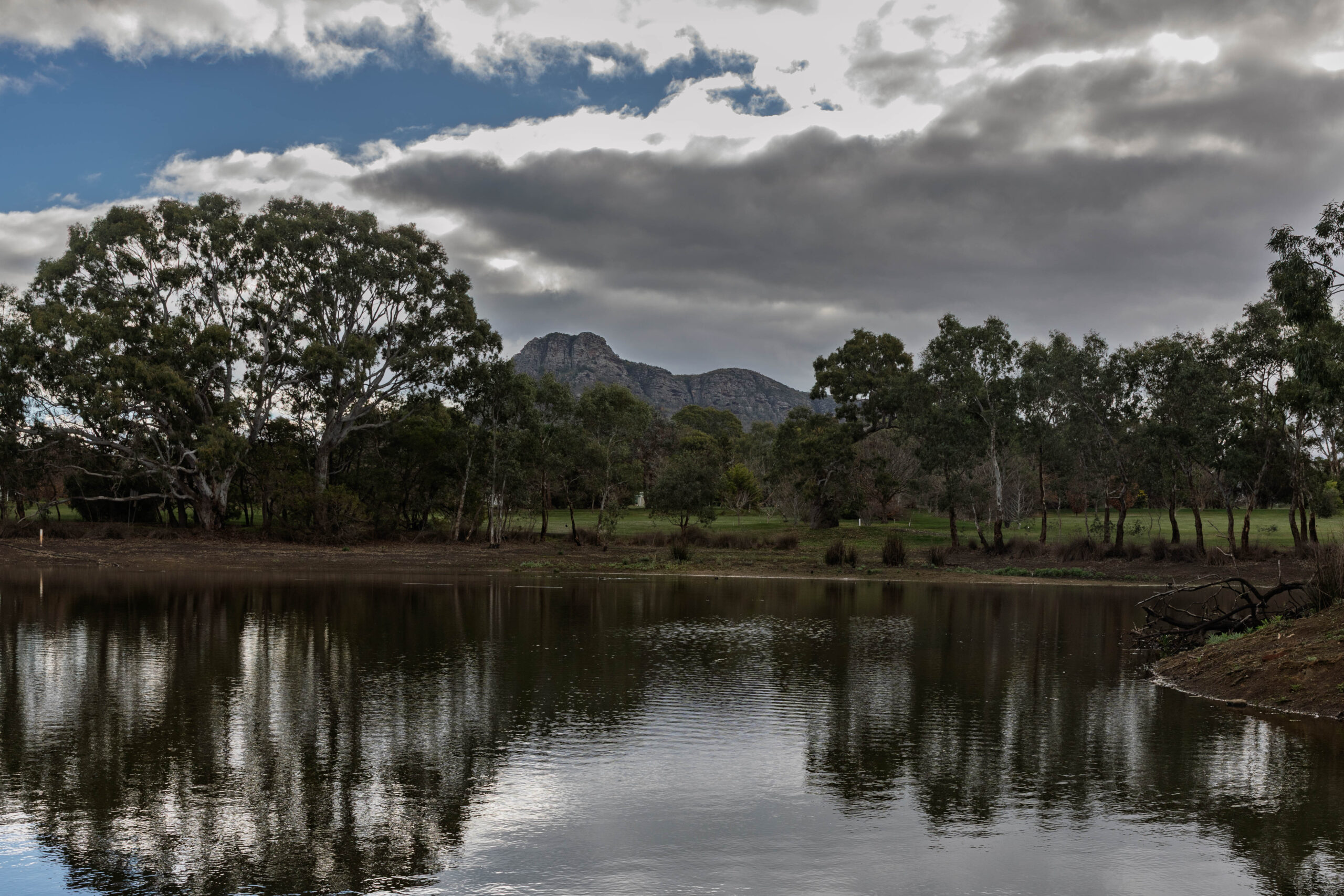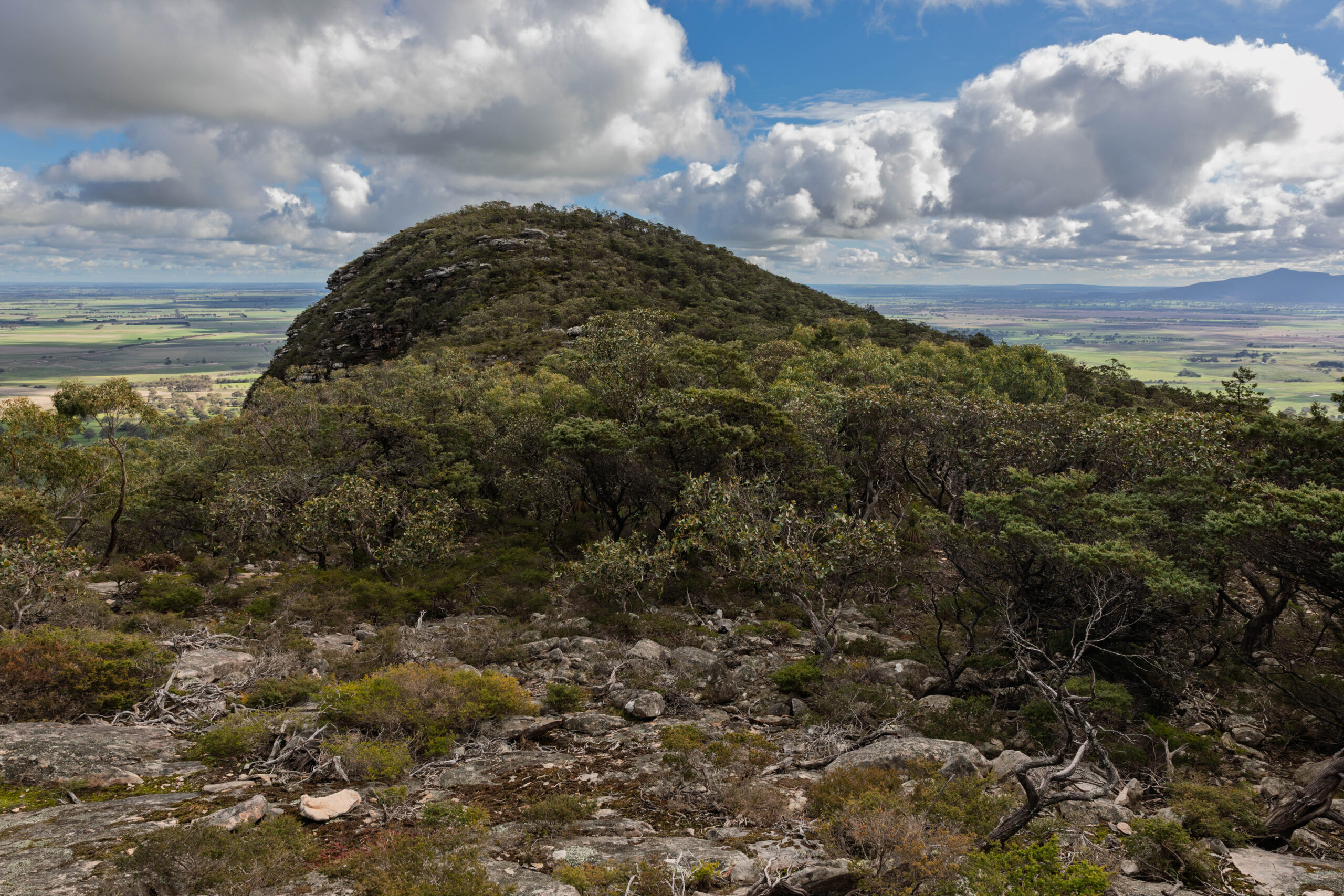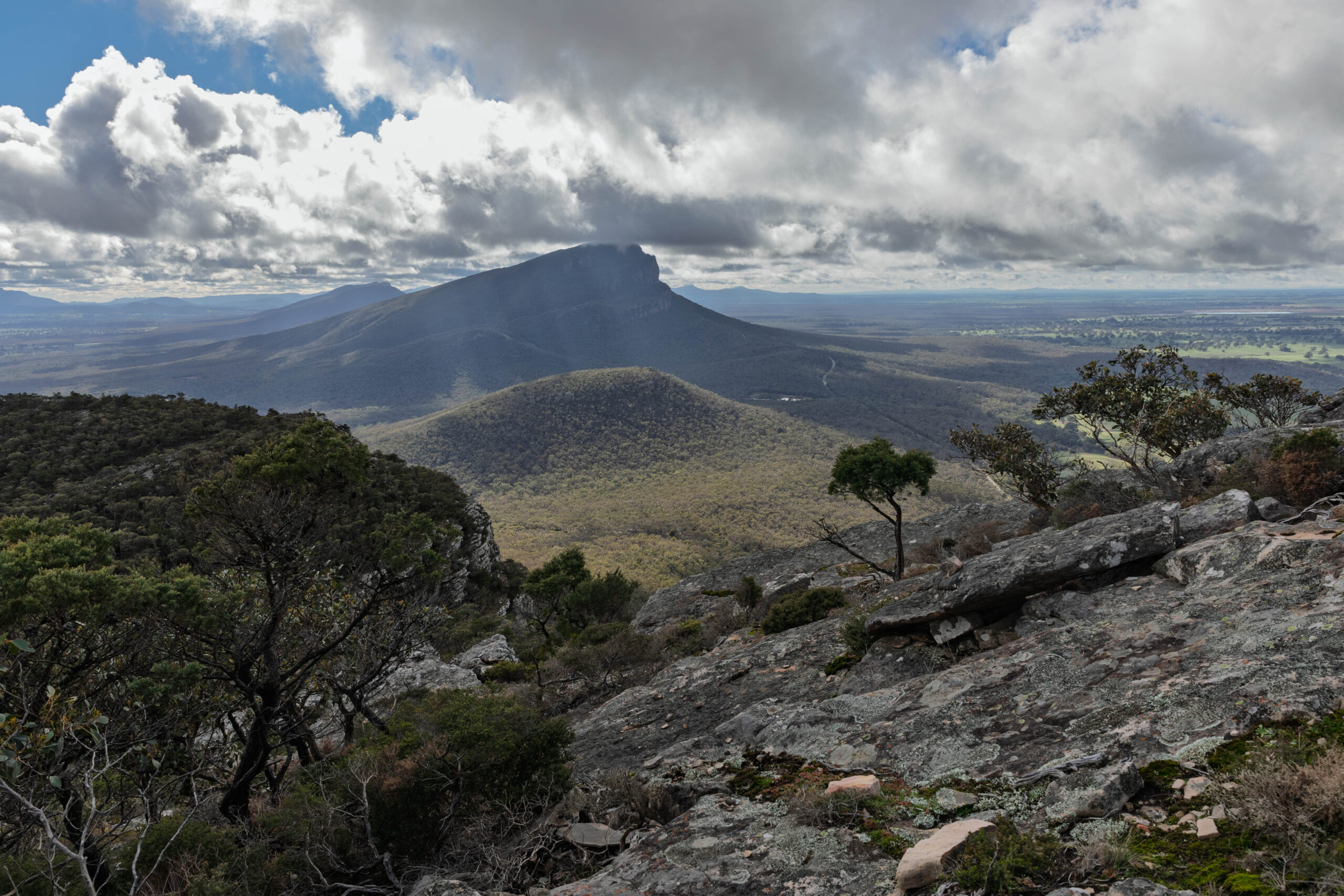 Having climbed to the summit via a section of the Grampians Peak Trail on the north-eastern flank of the mountain we decided to return to the car park along the Mount Sturgeon Trail on the southern flank. When we reached the base of mountain we had an easy walk back to the car park along the Sturgeon to Dunkeld Trail. Although the signs told us that this trail was longer at four kilometres (estimated time to complete it two hours) we were back at the car in an hour and fifteen minutes. We’re not sure how we managed that since we were delayed attempting to photograph a wedge-tailed eagle and a kangaroo (unless it was a wallaby?)