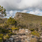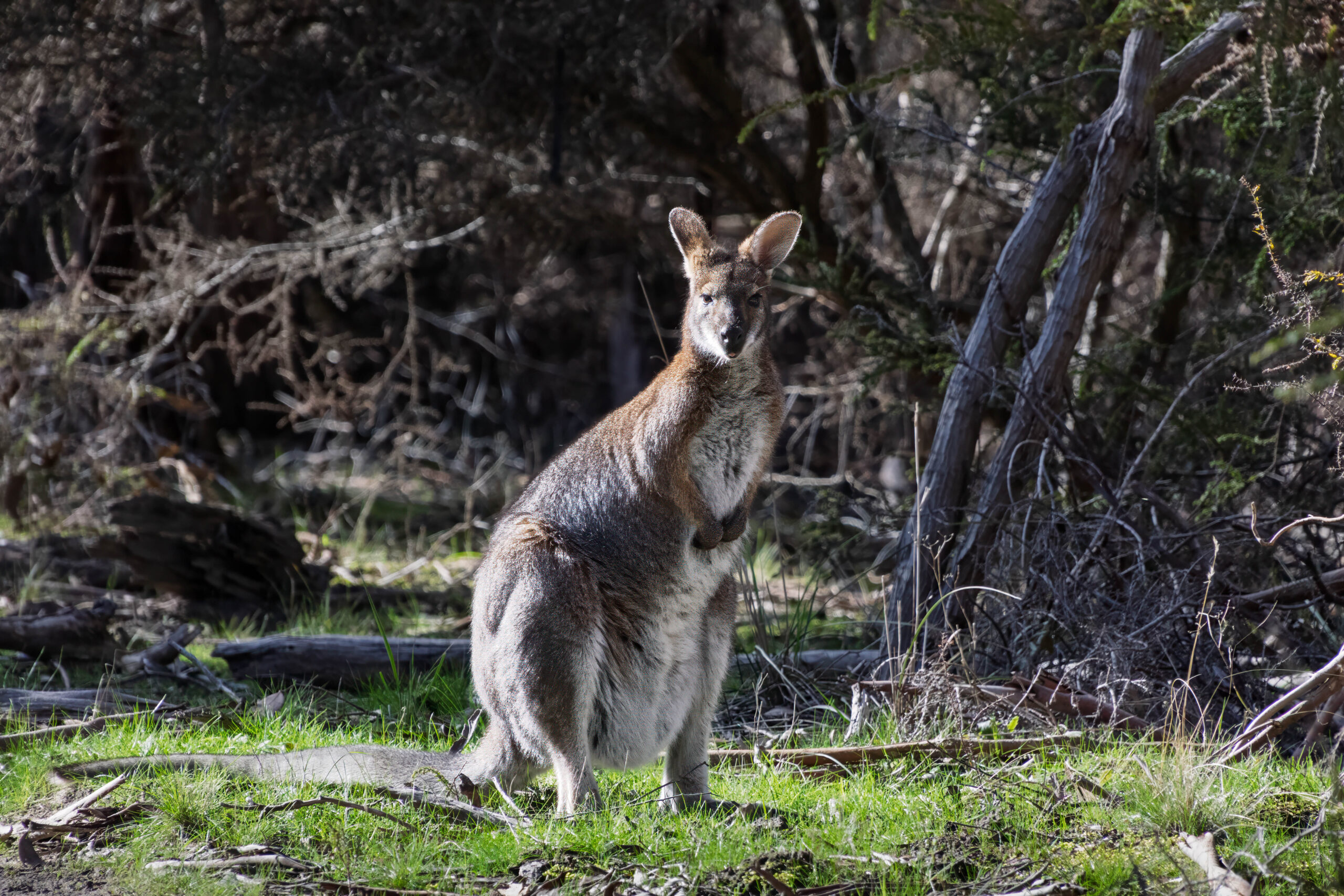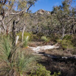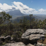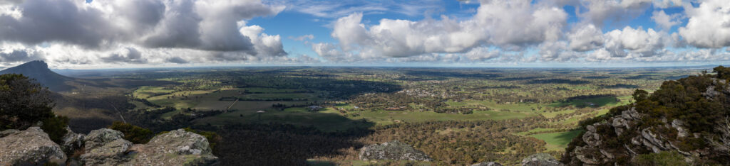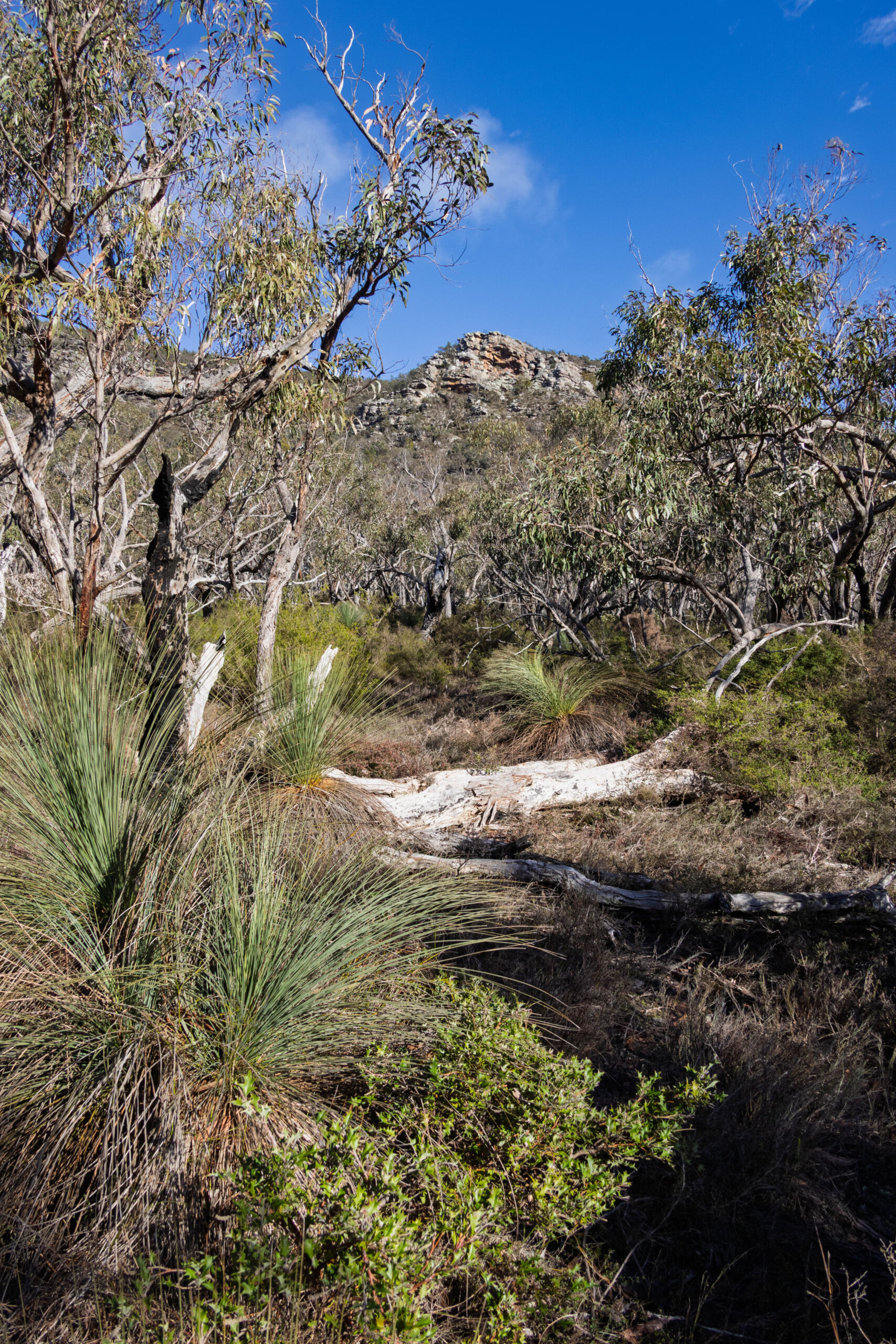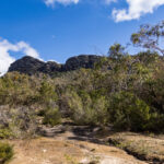 Having climbed to the summit via a section of the Grampians Peak Trail on the north-eastern flank of the mountain we decided to return to the car park along the Mount Sturgeon Trail on the southern flank. When we reached the base of mountain we had an easy walk back to the car park along the Sturgeon to Dunkeld Trail. Although the signs told us that this trail was longer at four kilometres (estimated time to complete it two hours) we were back at the car in an hour and fifteen minutes. We’re not sure how we managed that since we were delayed attempting to photograph a wedge-tailed eagle and a kangaroo (unless it was a wallaby?)