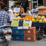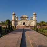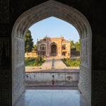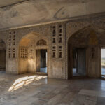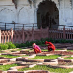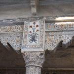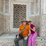 It certainly was exciting getting to the other side of the river by tuk tuk! Miraculously we all arrived in the same place within a few minutes of each other, rejoining Chandresh who escorted us into the mausoleum of Itmad ud Daulah. We were able to enjoy the intricately carved marble monument, which does indeed look like a smaller version of the Taj Mahal. The tomb was commissioned by Empress Nur Jahan for her father, Miriam Ghiyas Beg and built between 1622 and 1628. Pre-dating the Taj Mahal, it is considered the blueprint for the larger monument.