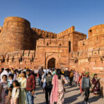Although we were scheduled to be taken to our hotel on arrival in Agra, it was straight to the Agra Fort (Red Fort) for us. The number of tourists visiting the fort was crazy, easily the busiest monument we have visited so far. The number of domestic tourists far outweighs the western tourists so this must be a popular time of year for Indians to take their holidays too. The Red Fort is HUGE and showcases a high level of ornamentation. We had to queue in Ladies and Gents lines to go through security where our bags were X-Rayed on an airport style scanner as we walked through a metal detector. Finally we were in!