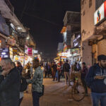 After a quick ten minute ride on our bus, we embarked on a heritage walk through the night food market where Chandresh took us to visit his favourite local eateries. He purchased a couple of different snacks that are common in northern India for us to sample and then, when I mentioned dosas he took us to another stall specializing in southern Indian food. After the potato filled dosas we declared ourselves full and we were taken in search of cold drinks and ice-cream. As we walked back to the bus, Chandresh scurried across the road to pick up a box of Agra’s famous sweet, petha, for us to try. This confectionery was originally prepared more than 350 years ago in the royal kitchens of Shah Jahan. It is a sugary white pumpkin sweet that comes in a variety of flavours apparently?? How anyone can taste anything beyond the overwhelming sweetness is beyond me. Bernie thought it was alright, while I thought it was disgusting. I couldn’t even finish the piece that I had selected from the box to try.