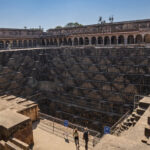From the loos we made our way to the step well. It is believed that the Chand Baori Step Well has a religious connection and that’s the reason it was built in front of the temple. The well is an ancient (1,200-year-old) construction that acted as the village’s water catchment for centuries. Built from sandstone, there are steps built into each side of the huge, square well so that people could still access the water as the level went down and down … and down during the period between the wet seasons. An impressive structure.