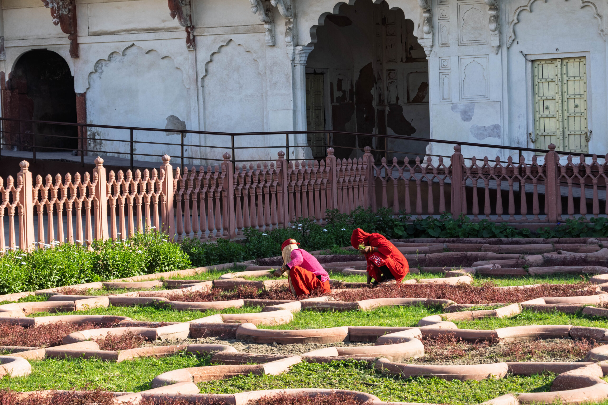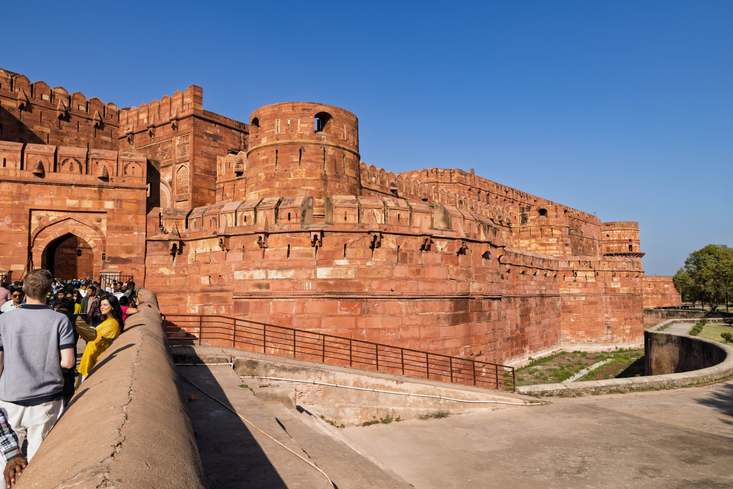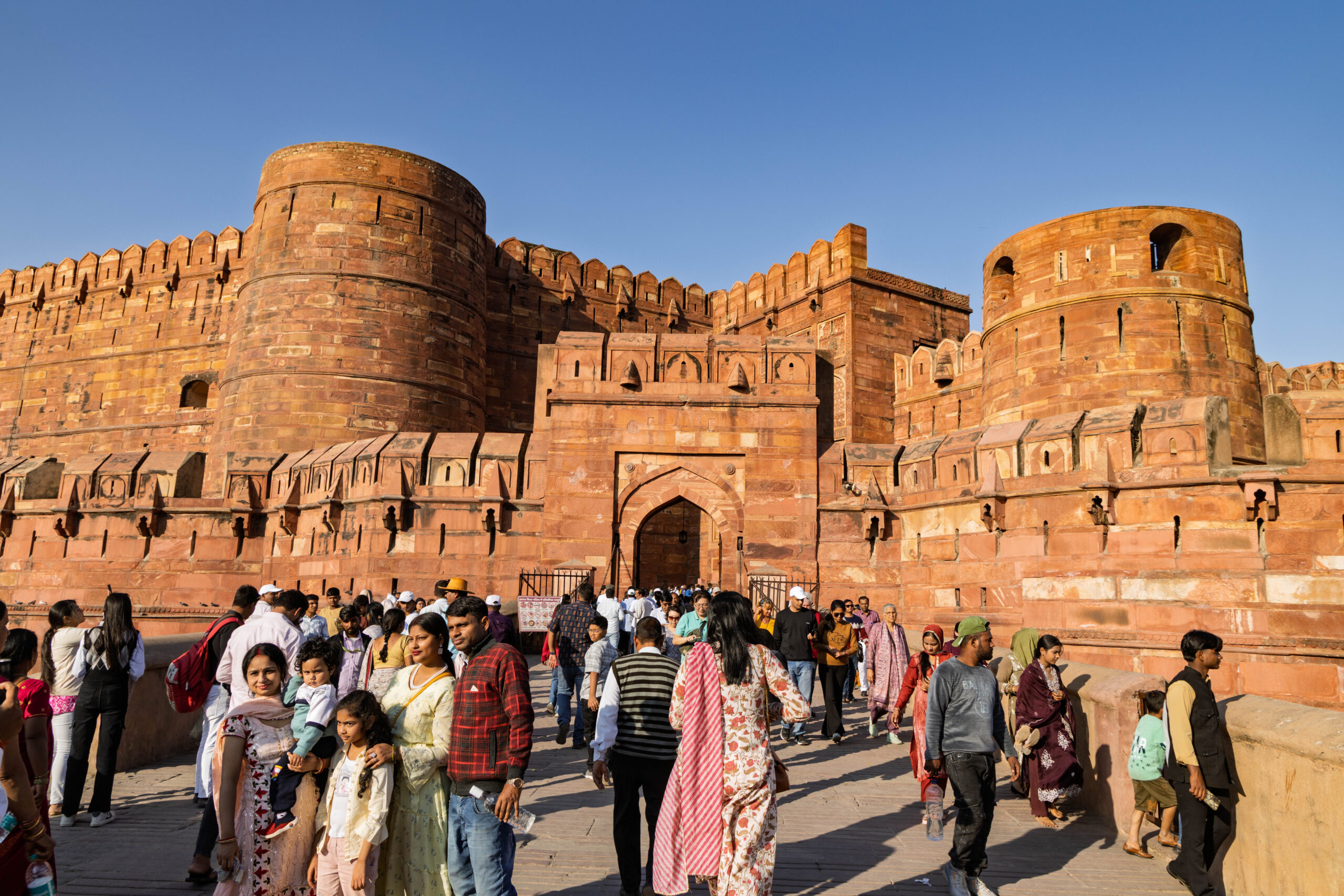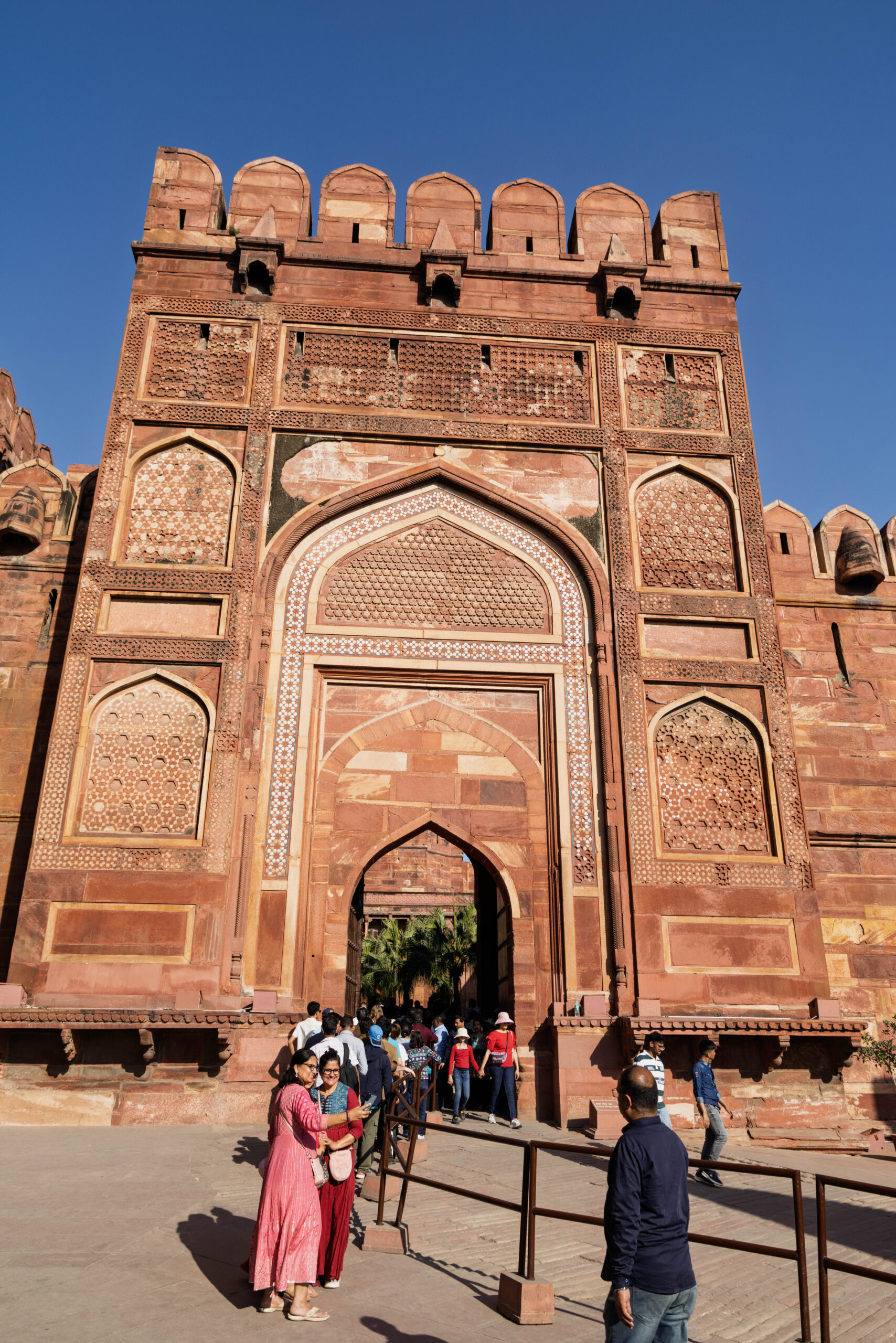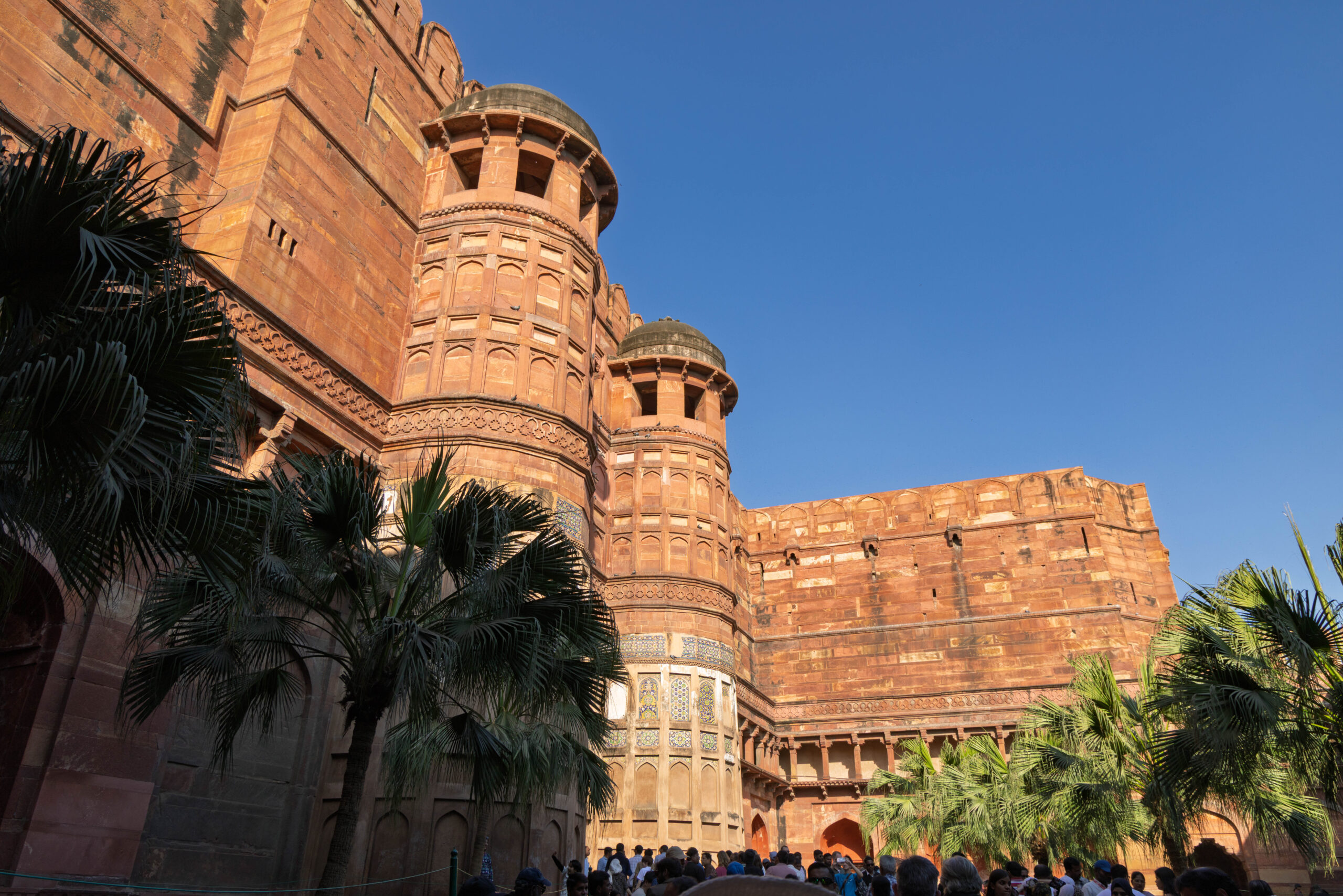 Although we were scheduled to be taken to our hotel on arrival in Agra, it was straight to the Agra Fort (Red Fort) for us. The number of tourists visiting the fort was crazy, easily the busiest monument we have visited so far. The number of domestic tourists far outweighs the western tourists so this must be a popular time of year for Indians to take their holidays too. The Red Fort is HUGE and showcases a high level of ornamentation. We had to queue in Ladies and Gents lines to go through security where our bags were X-Rayed on an airport style scanner as we walked through a metal detector. Finally we were in!