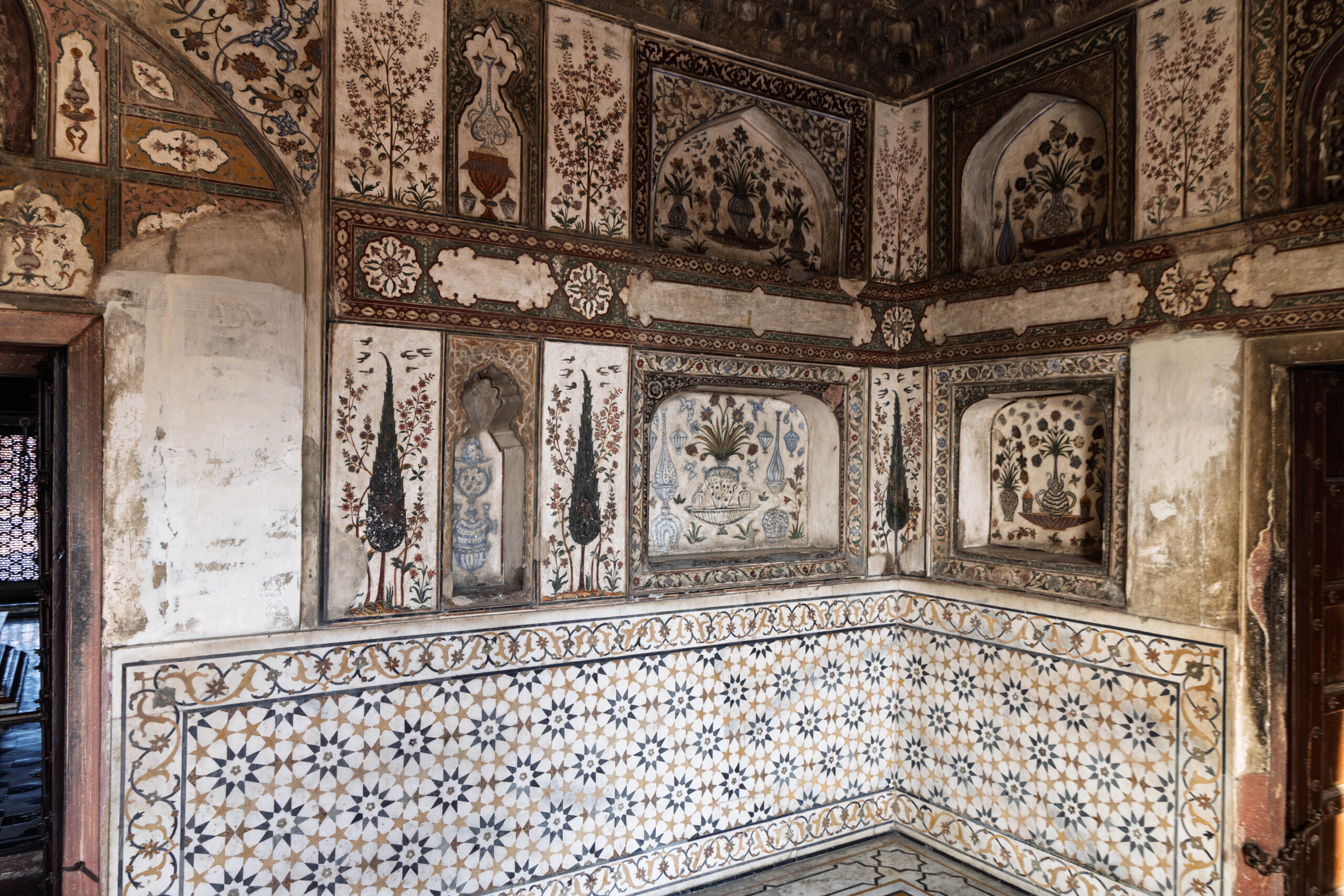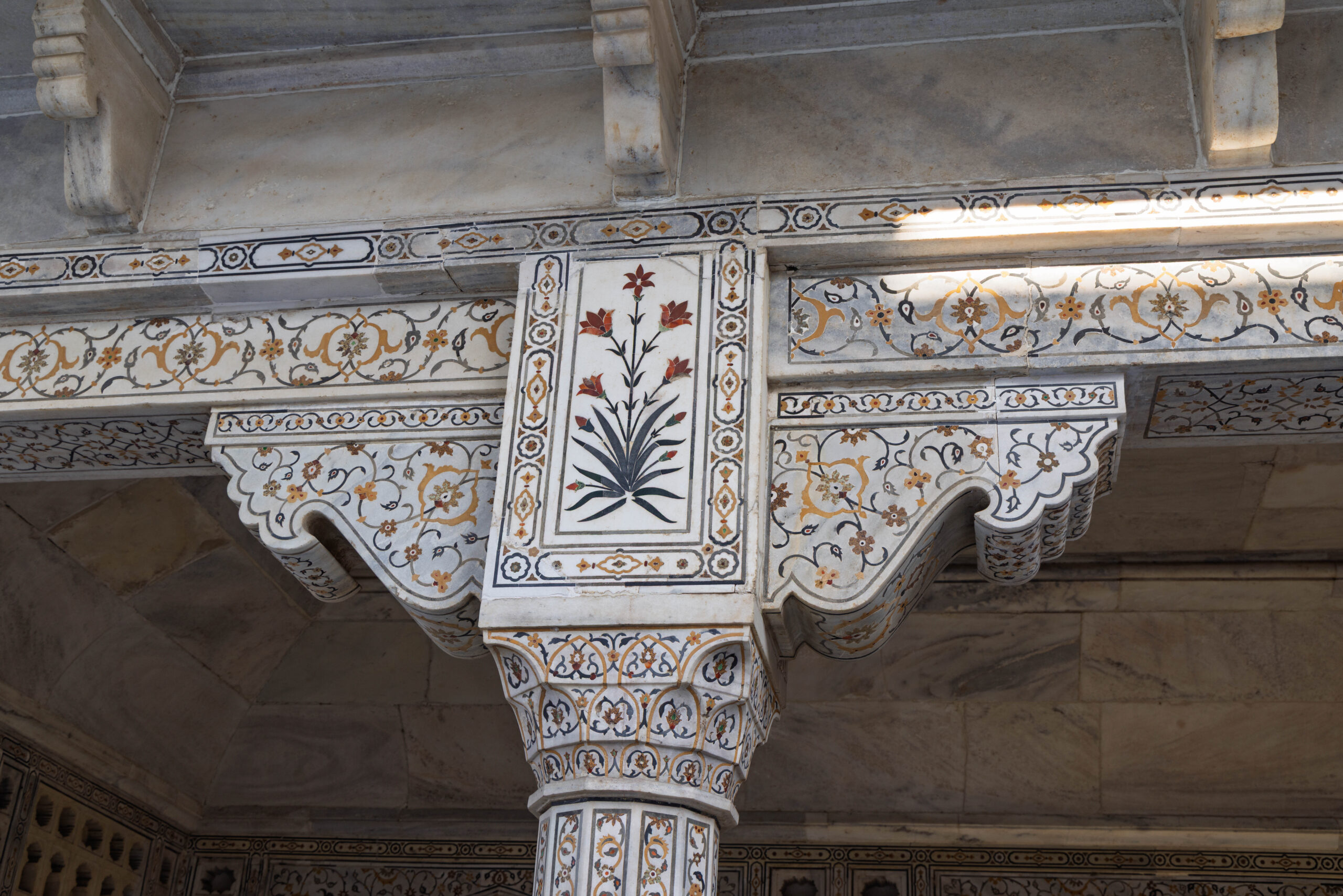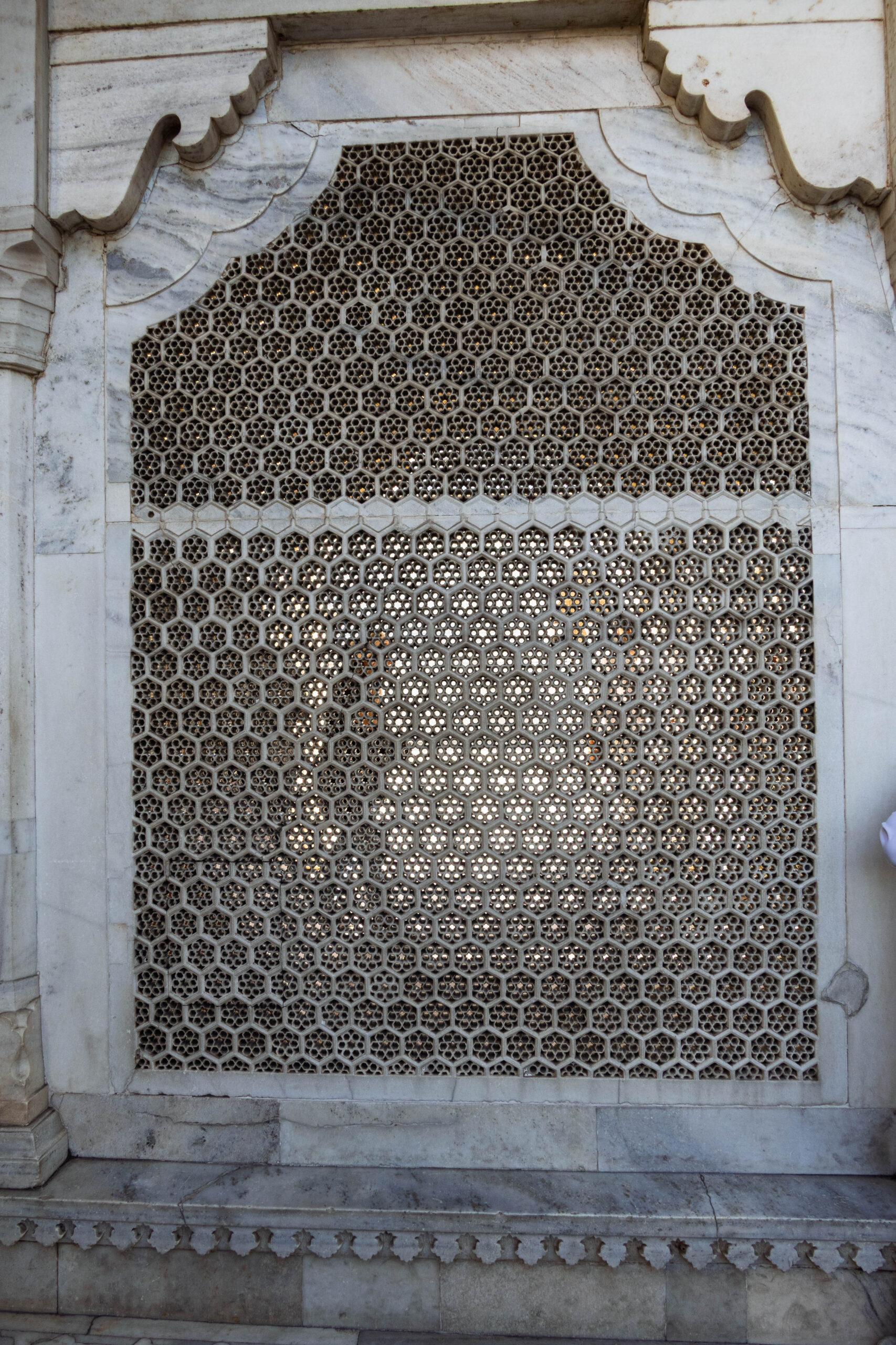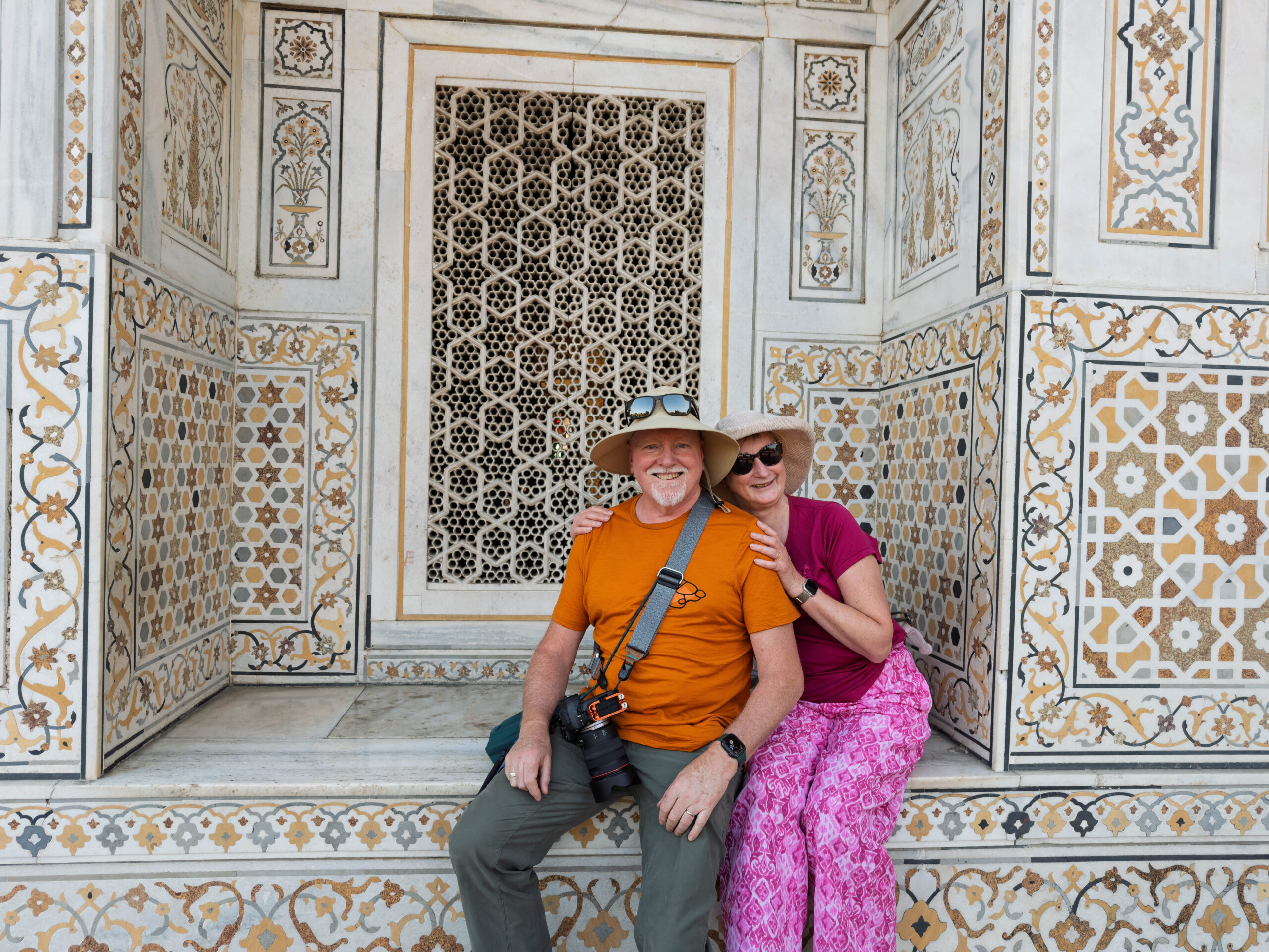 It certainly was exciting getting to the other side of the river by tuk tuk! Miraculously we all arrived in the same place within a few minutes of each other, rejoining Chandresh who escorted us into the mausoleum of Itmad ud Daulah. We were able to enjoy the intricately carved marble monument, which does indeed look like a smaller version of the Taj Mahal. The tomb was commissioned by Empress Nur Jahan for her father, Miriam Ghiyas Beg and built between 1622 and 1628. Pre-dating the Taj Mahal, it is considered the blueprint for the larger monument.