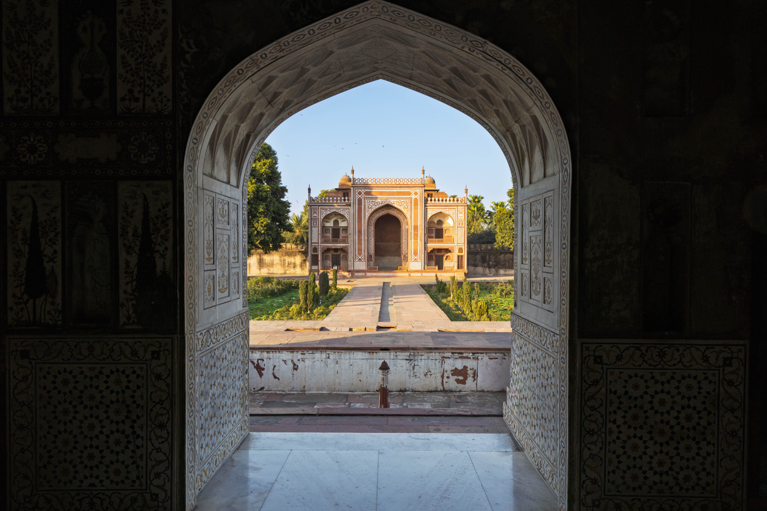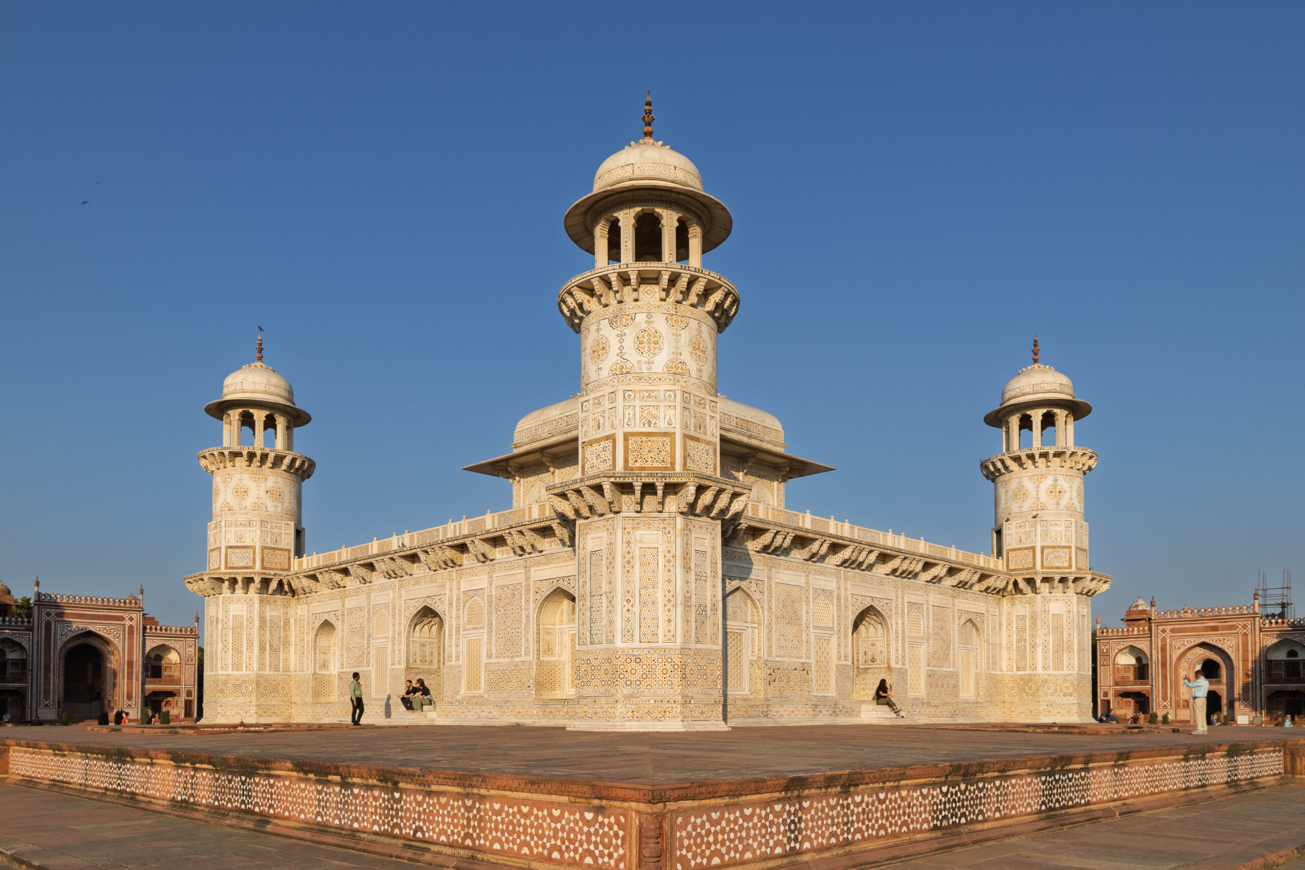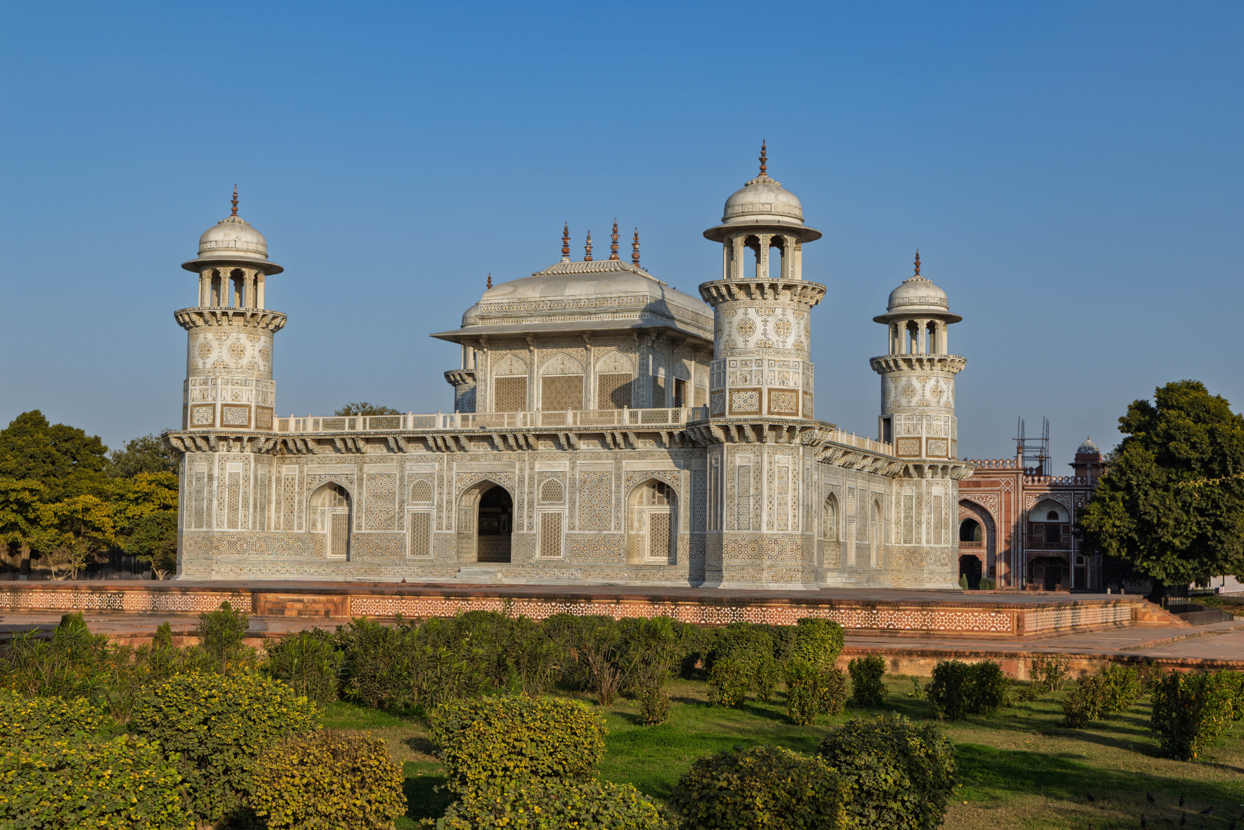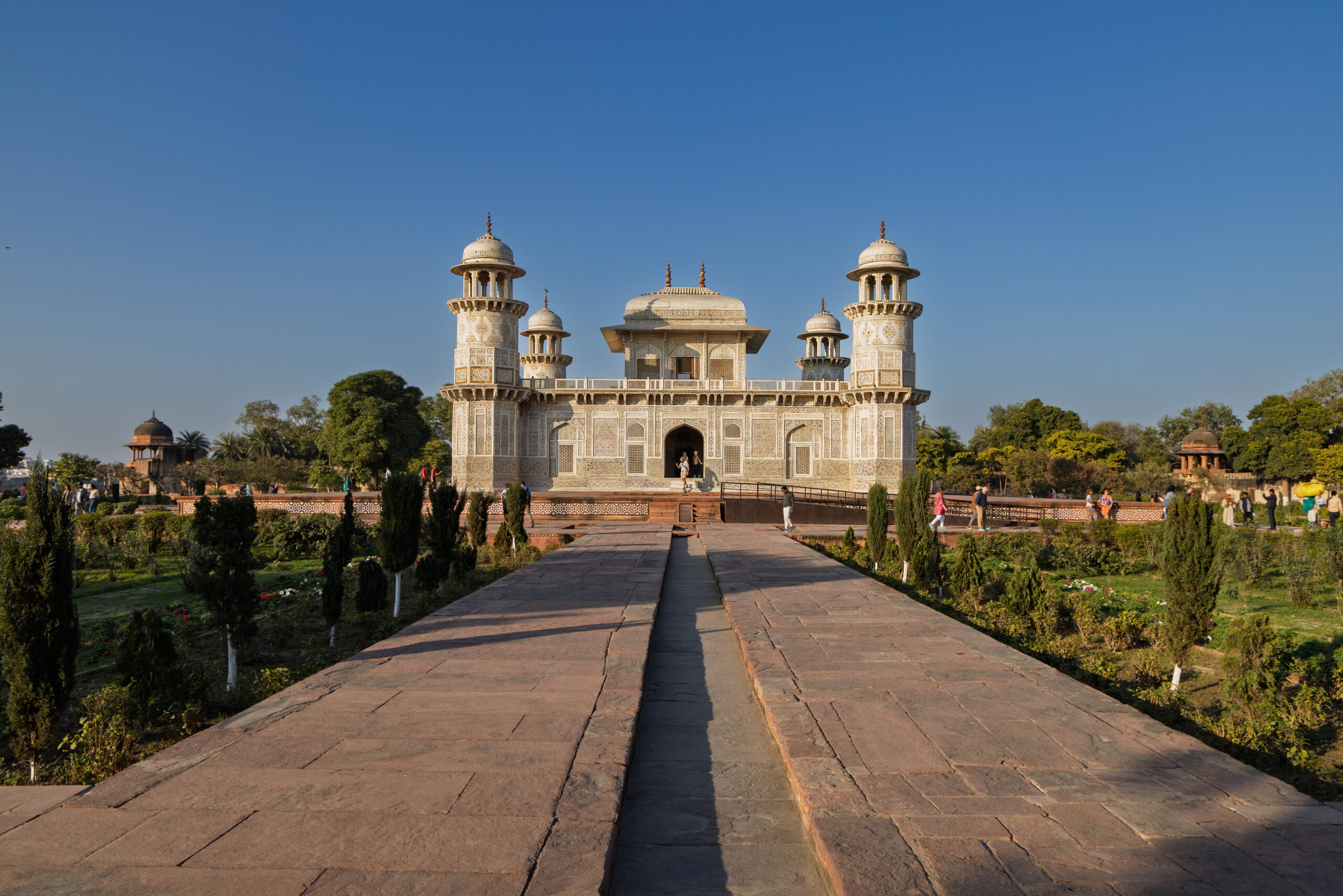 It certainly was exciting getting to the other side of the river by tuk tuk! Miraculously we all arrived in the same place within a few minutes of each other, rejoining Chandresh who escorted us into the mausoleum of Itmad ud Daulah. We were able to enjoy the intricately carved marble monument, which does indeed look like a smaller version of the Taj Mahal. The tomb was commissioned by Empress Nur Jahan for her father, Miriam Ghiyas Beg and built between 1622 and 1628. Pre-dating the Taj Mahal, it is considered the blueprint for the larger monument.