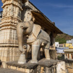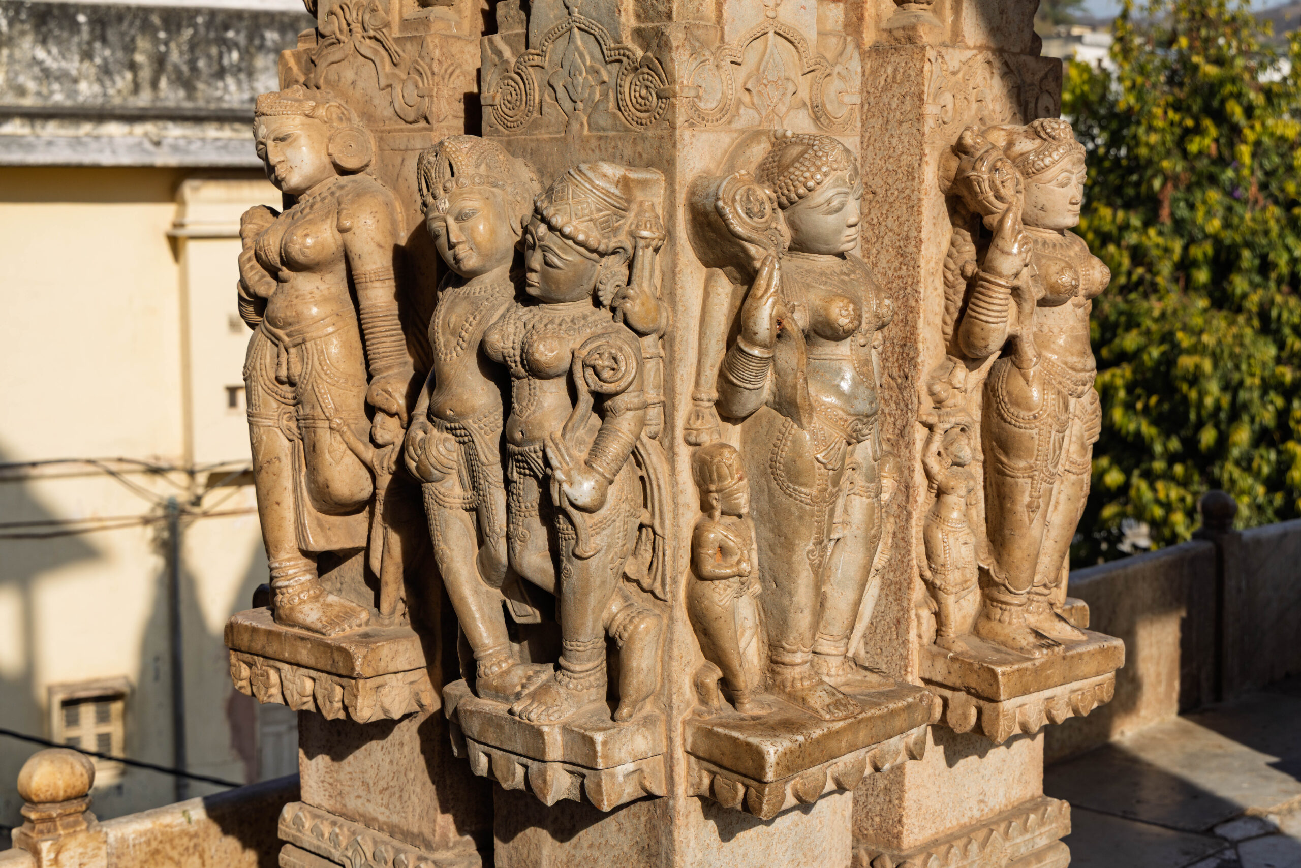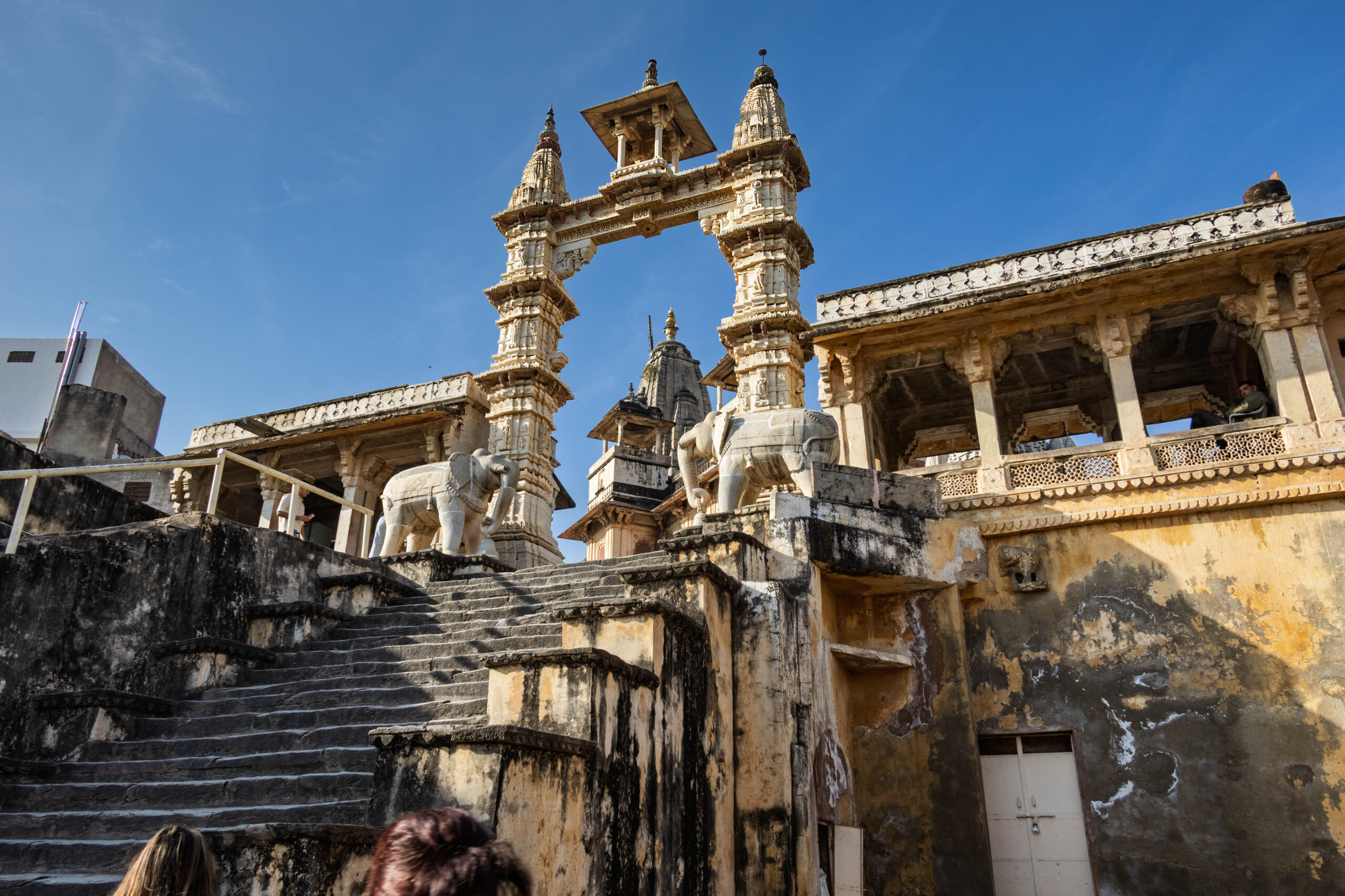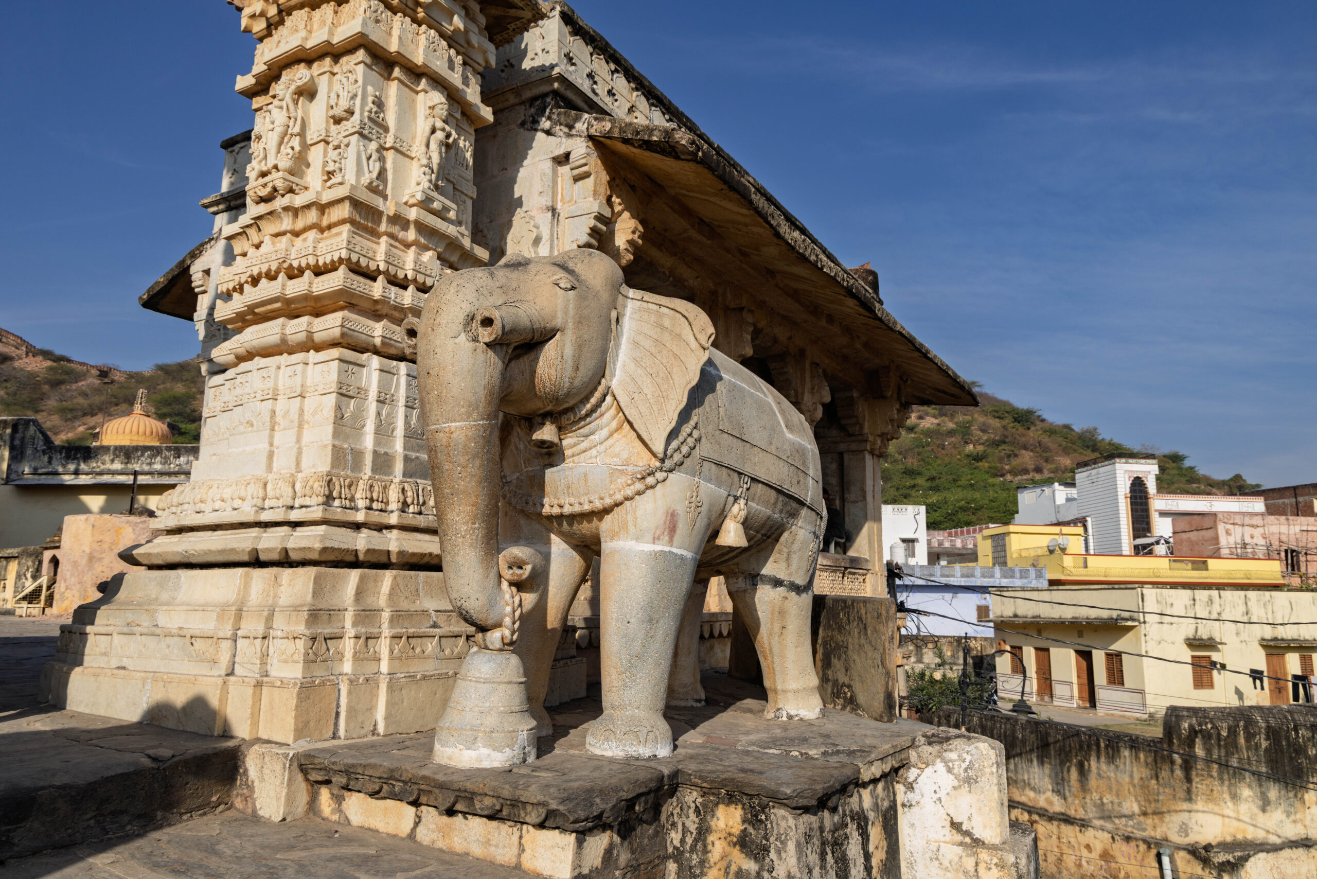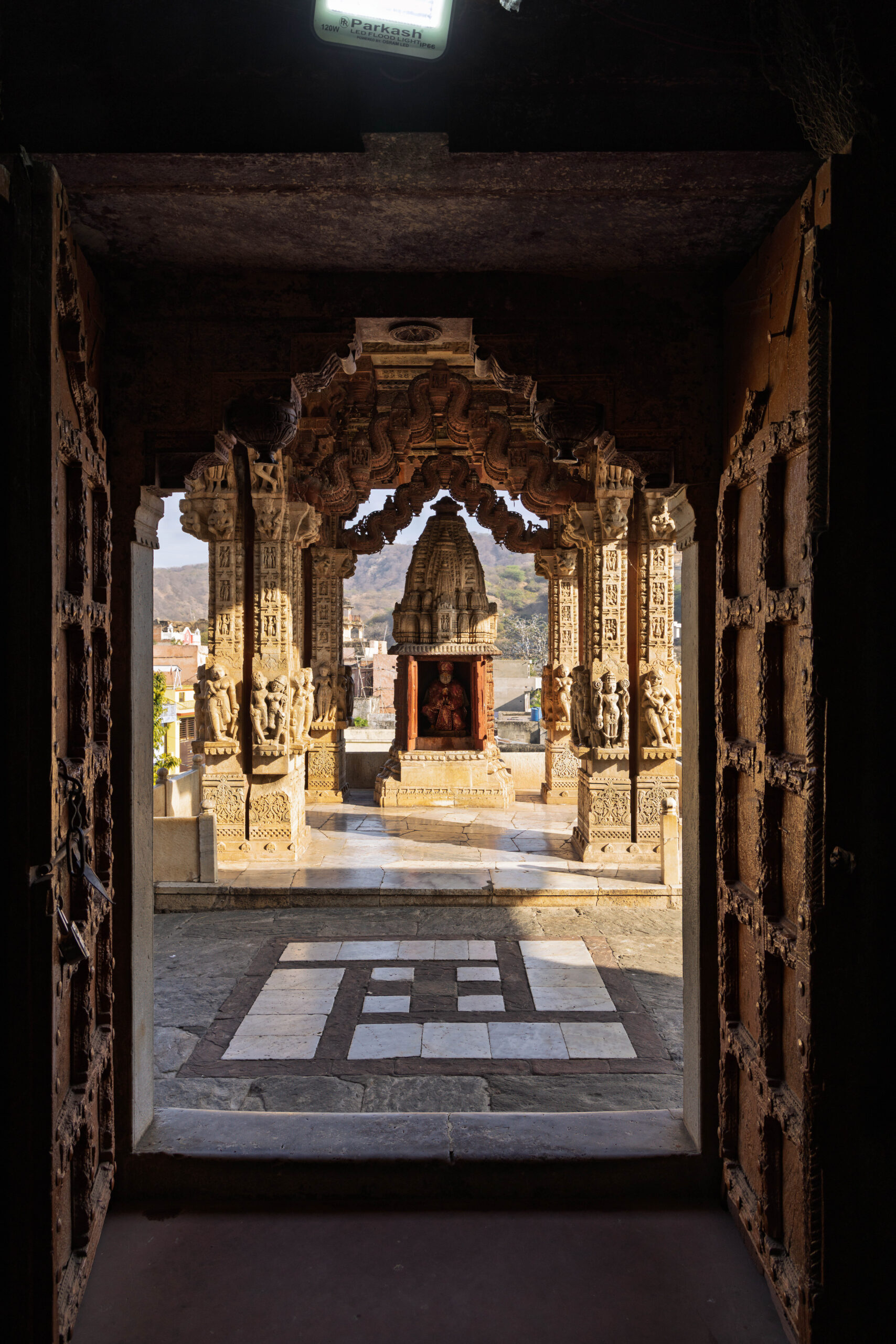 After negotiating cows and goats on the roadway and more vendors approaching the vehicle every time we stopped, we made it to the village where we visited the Shri Jagat Shiromani ji Temple. The temple is a Hindu place of worship built in 1600 by the King Sawan Maan Singh in memory of his son Jagat Singh. The temple is unique in being dedicated to Lord Krishna, Meera Bai and Vishnu. Inside the temple, Chandresh anointed our Third Eye Chakras with pure sandalwood oil telling us that it would calm our thoughts and make us more clear thinking.