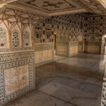 From the temple we proceeded to the Amber Fort. Imposing walls dotted with watch towers sit atop the surrounding hills to form the Amber Fort that protected the Amber Palace within. This was where the Kachwaha Clan of Amber ruled from, before the capital was moved to Jaipur in the 18th-century. The palace is a vast complex made up of the main palace and many smaller buildings and pavilions, with functions ranging from housing guests to the administration of the kingdom. A highlight was the Hall of Mirrors.