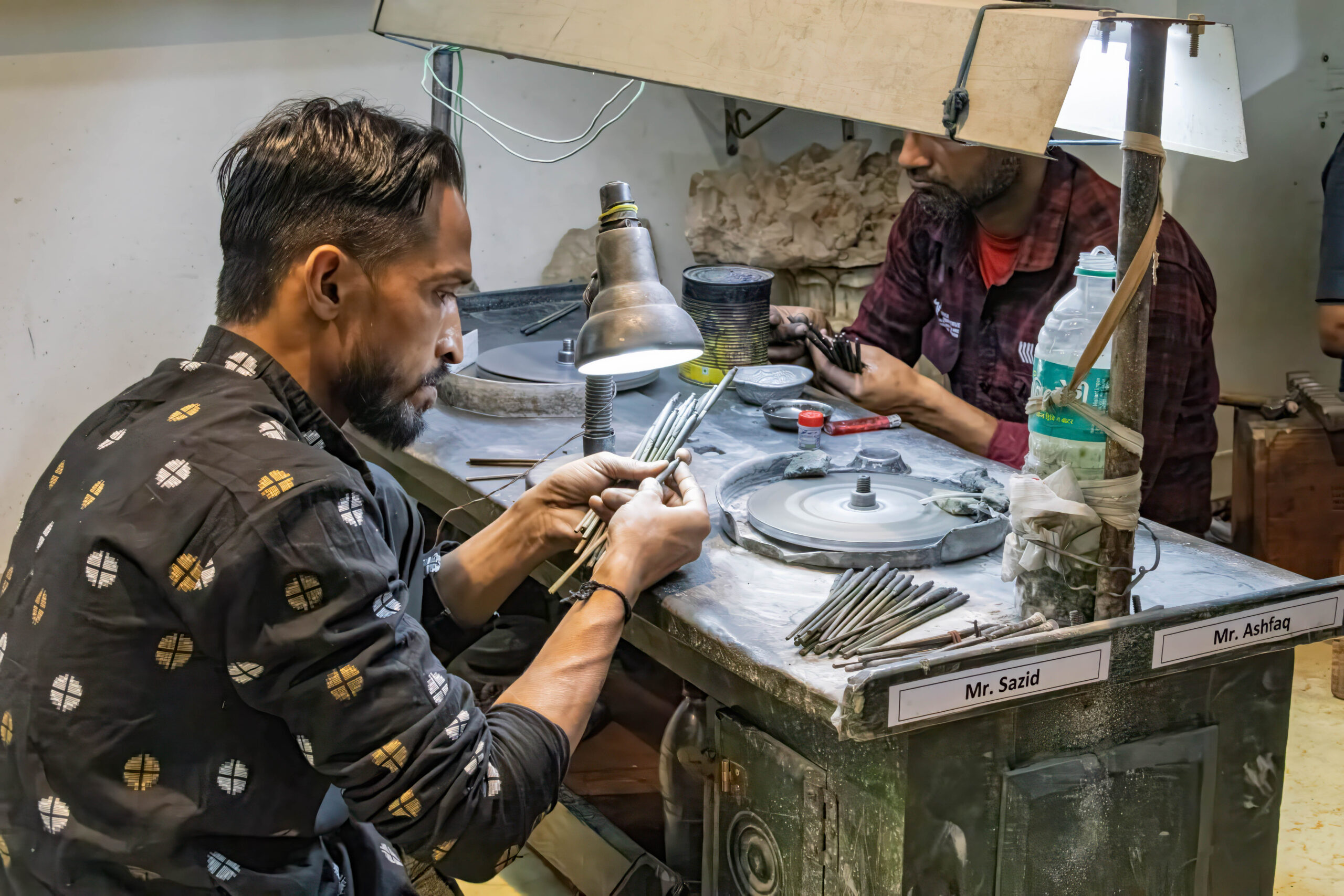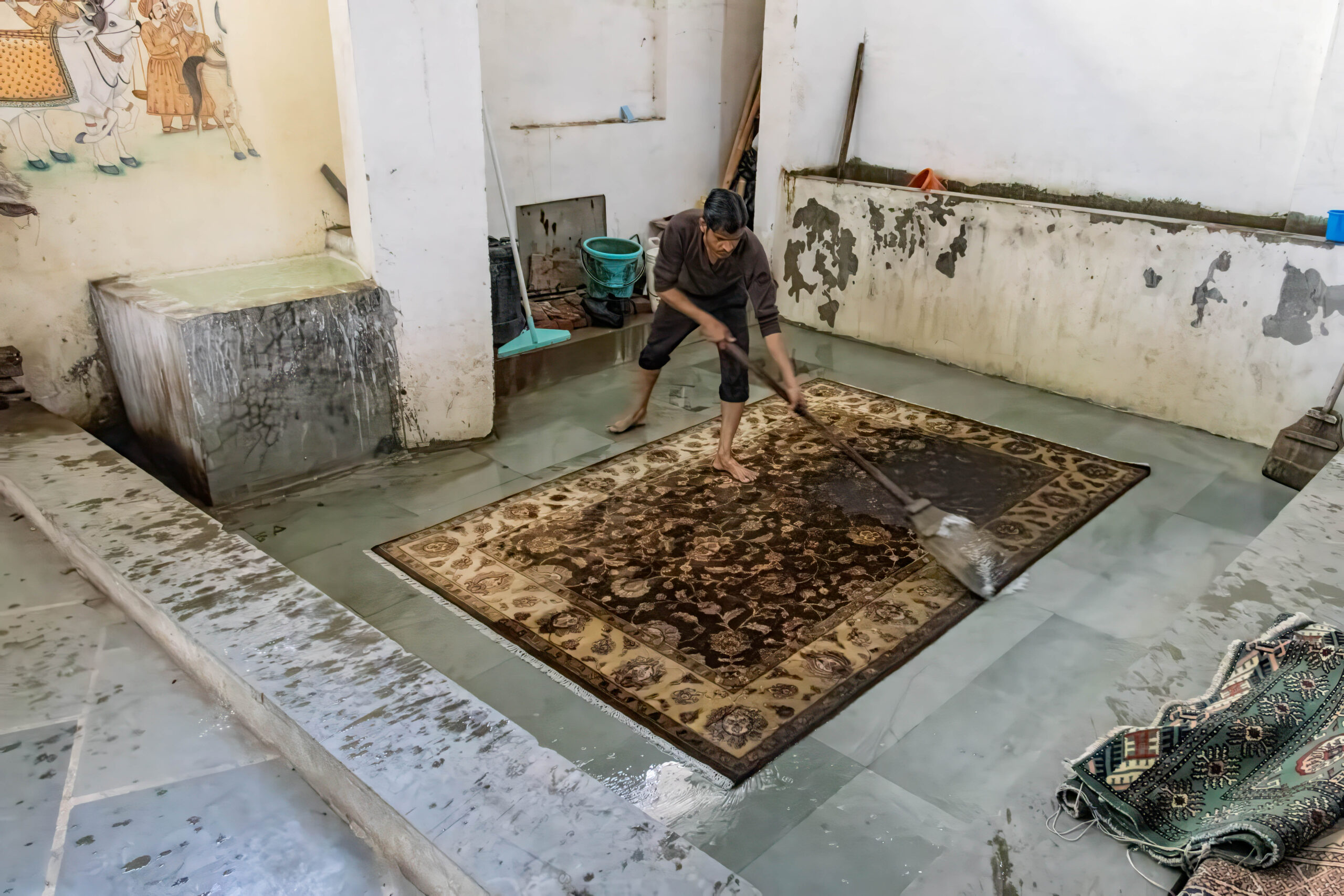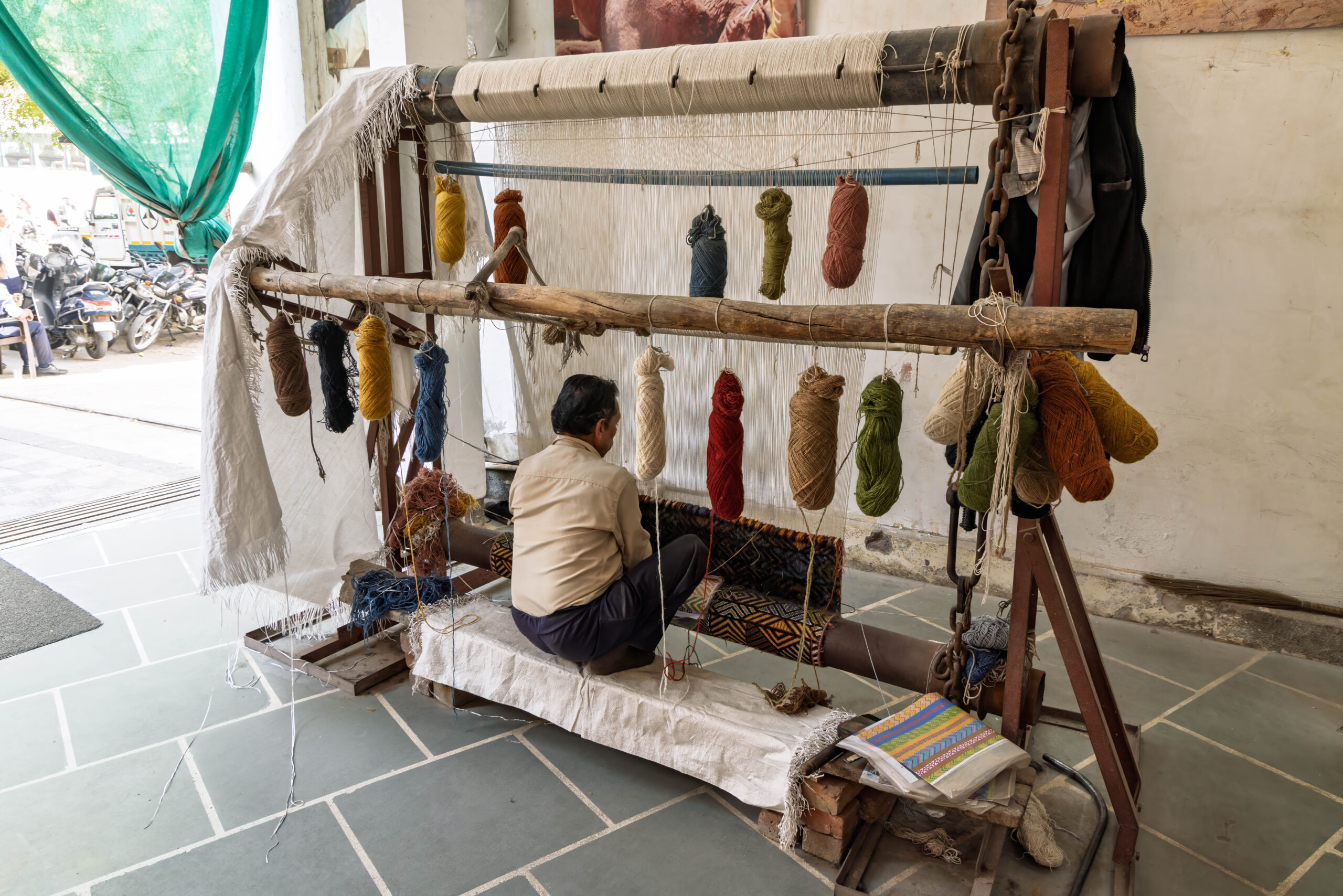 Karamvir drove us back into Jaipur to the Paliwal Carpets and Textile Factory. The factory is a Government sponsored cooperative that employs (I think it was about 4,500) locals. Our first demonstration was the block printing of fabric. As a sewer I found it really interesting as we were walked through the printing, setting and washing phases of printing the cloth.