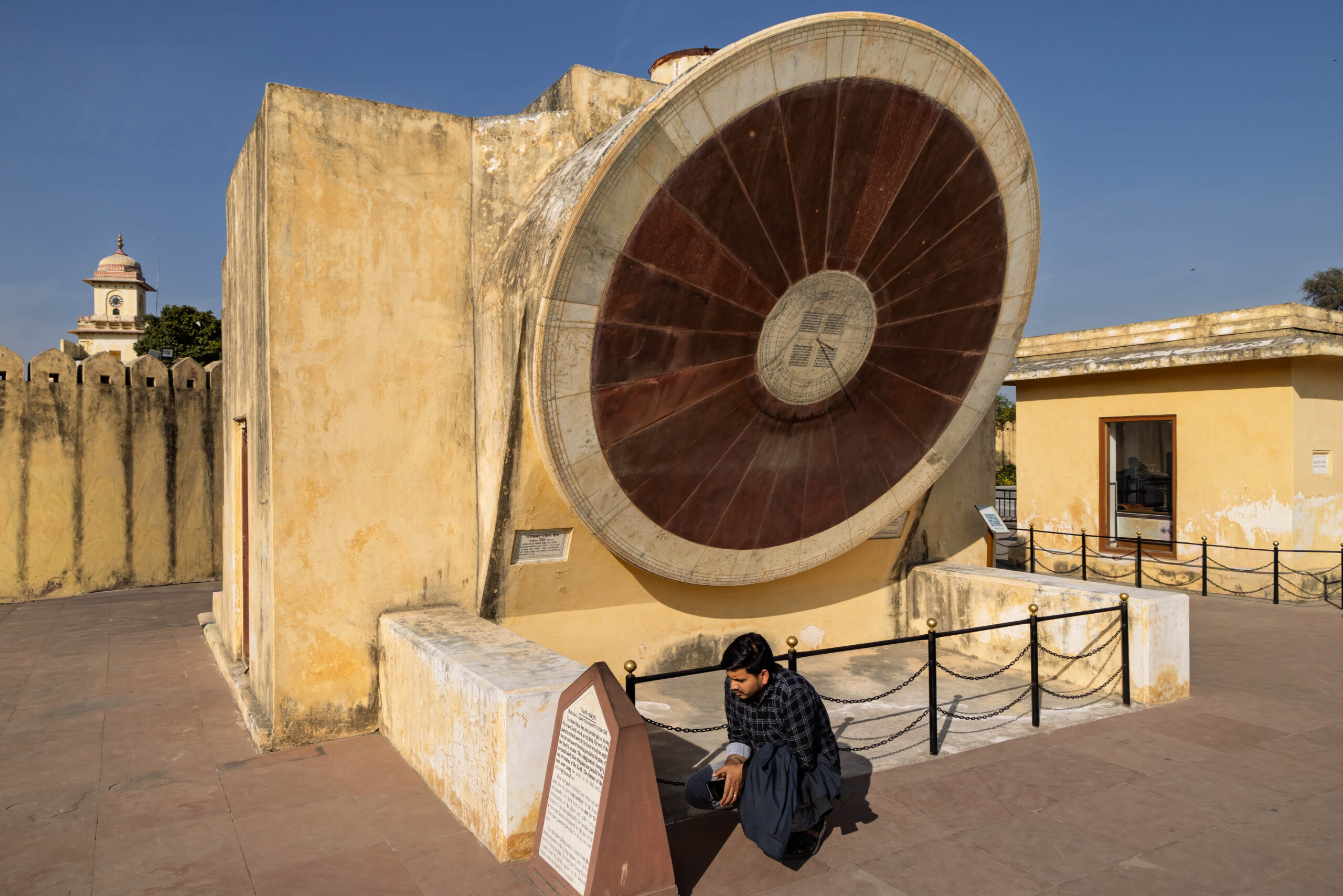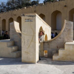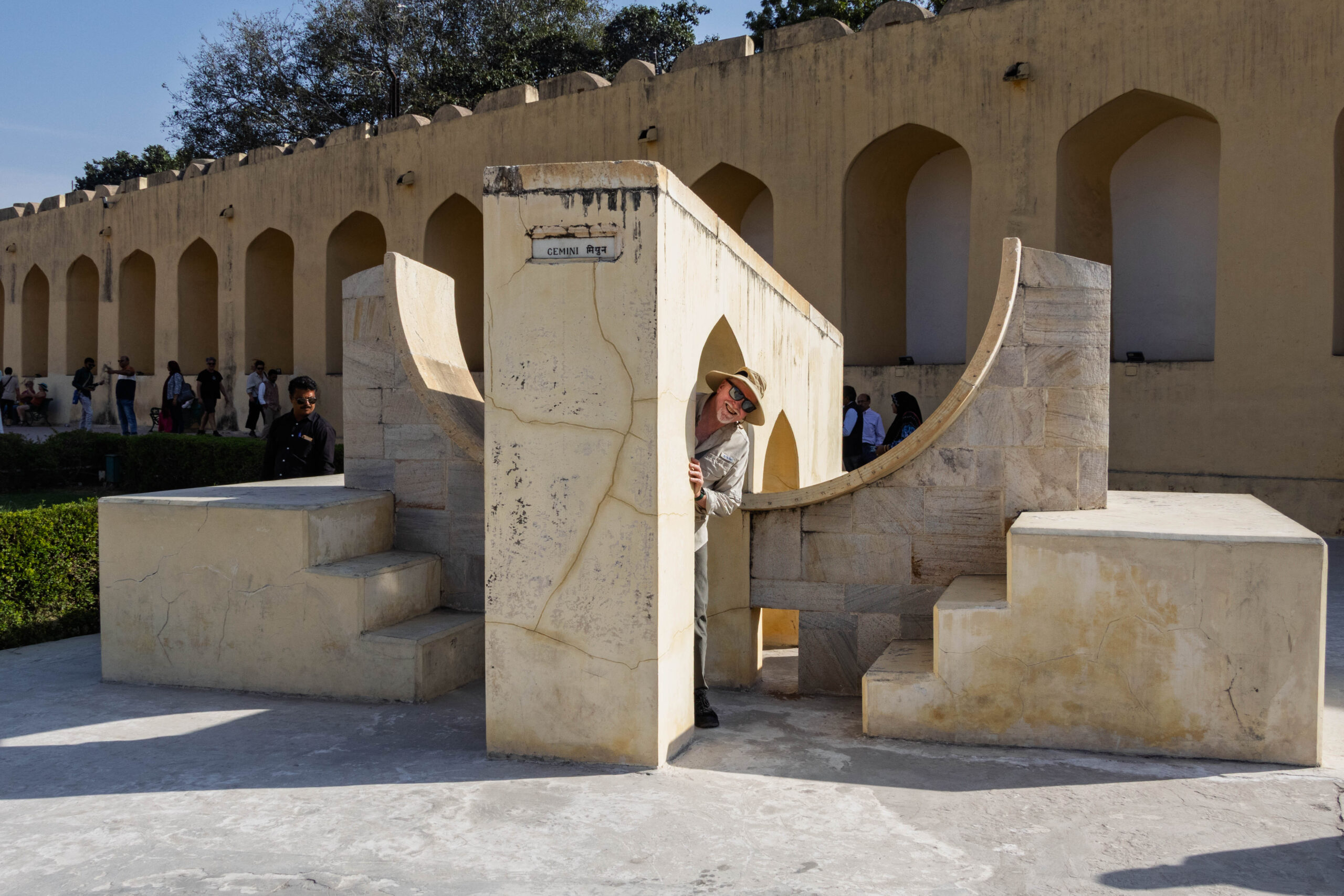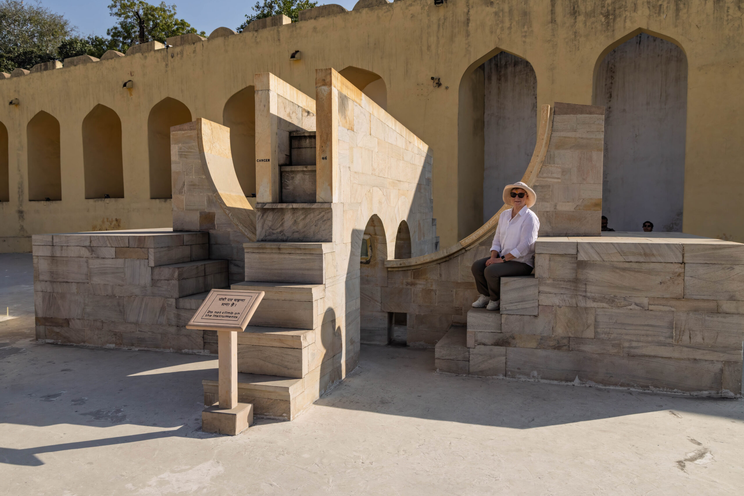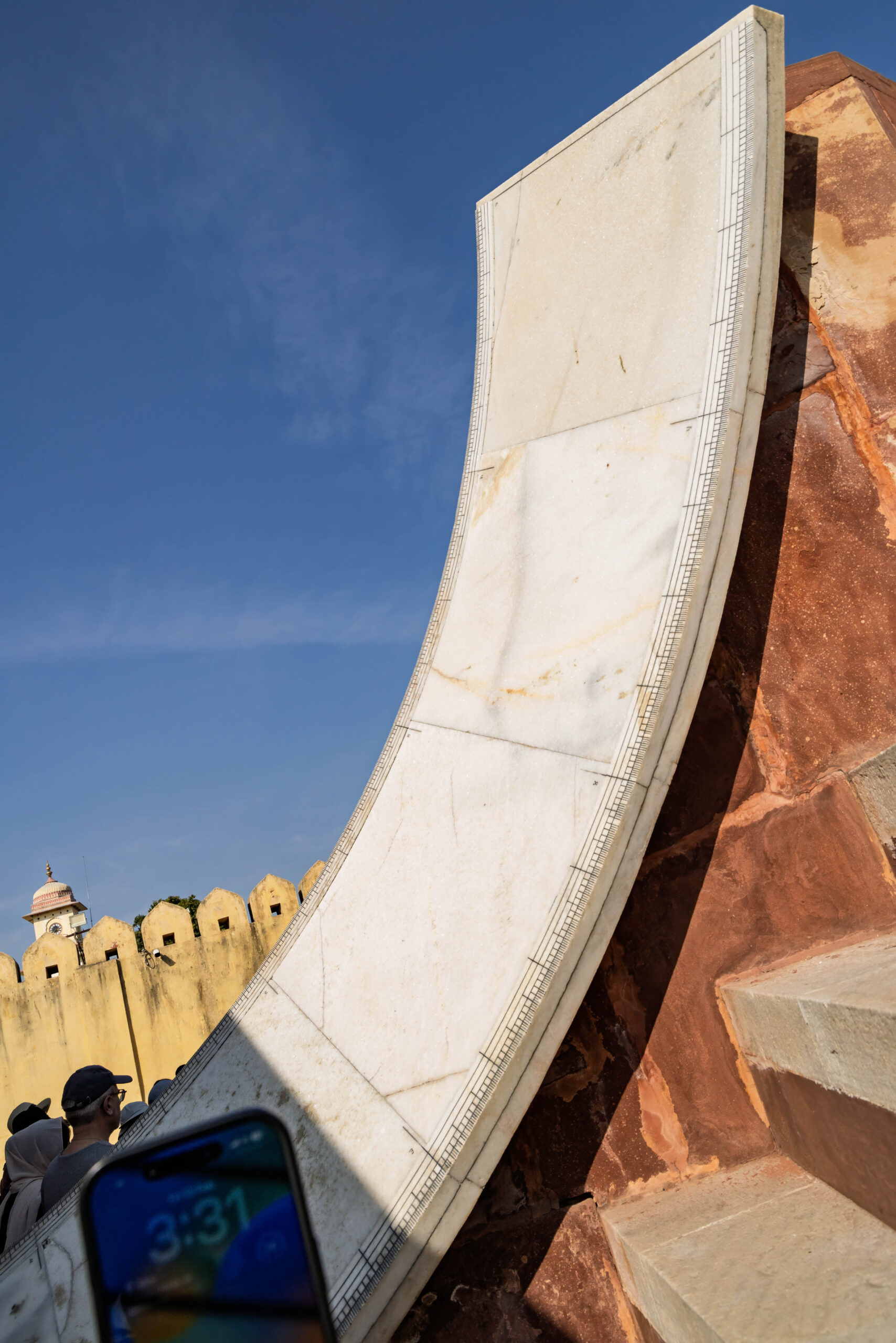 After lunch we moved onto today’s optional activity a city tour taking in: the Hawa Mahal, City Palace and Jantar Mantar. Well … two out of three ain’t bad. We started at Jantar Mantar, the largest of five astronomical observatories built by Sawai Jai Singh. Being clock and timepiece nerds we found this really interesting, because we were seeing the biggest sun clocks we have ever seen. The clocks were important for determining the date and exact time of a person’s birth to forecast their astrological future. The first ‘clock’ we were shown was accurate to 20 seconds. The biggest ‘clock’ on site, Chandresh told us was accurate to two seconds. I know we now have atomic clocks much more accurate that can measure nano seconds but, for when these were constructed, to achieve accuracy to within two seconds is impressive.