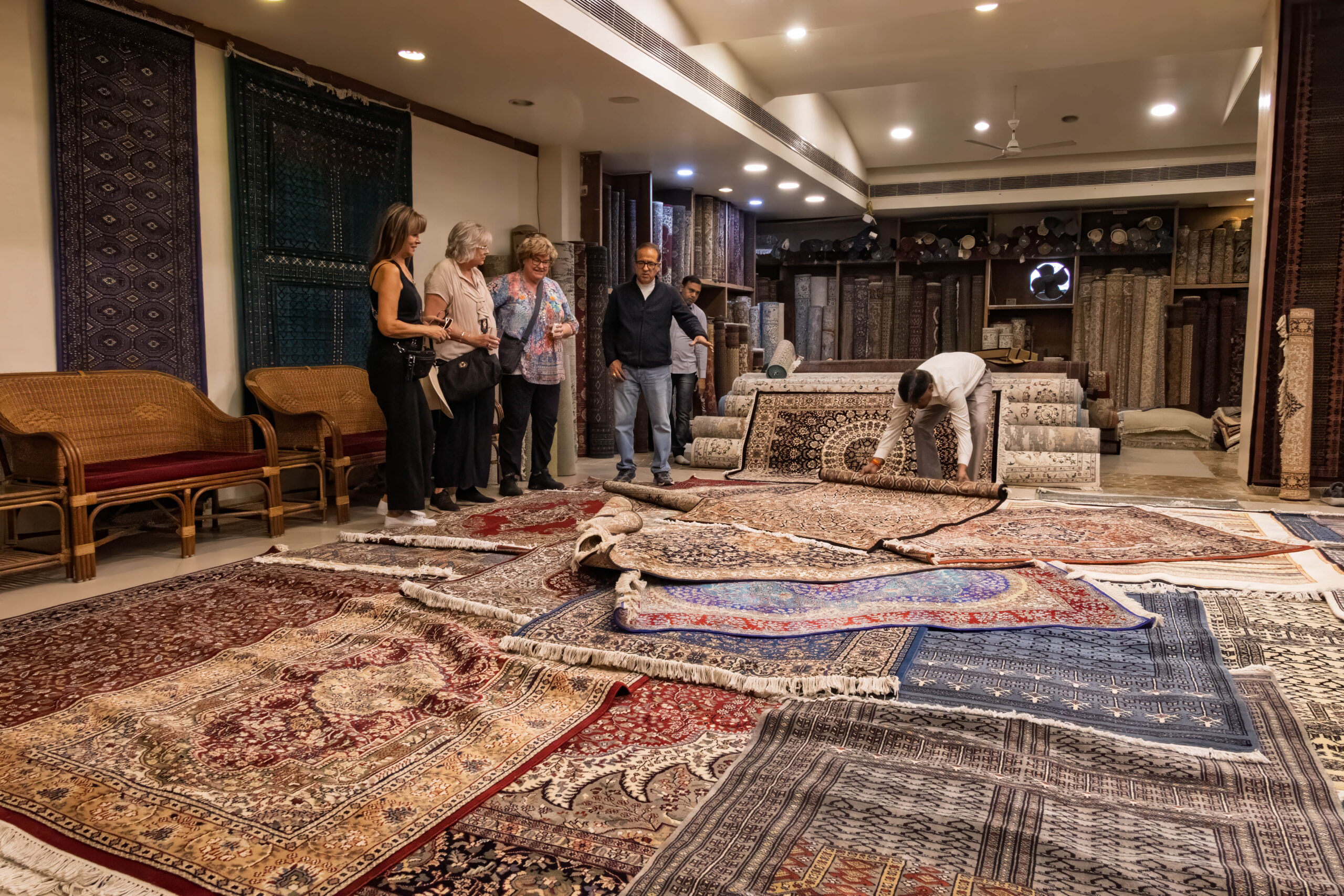 BUT they just kept on unfurling rugs in different designs and amazing colours until someone finally broke and decided to invest in a carpet. Not us! After our Turkish rug experience in a similar setting, where we did weaken and buy a small rug, we held firm and did not invest in a rug from Rajasthan. They were beautiful and there was an amazing teal coloured one that was very tempting but, ultimately, we were happy to let another member of the group take one for the team!