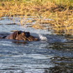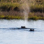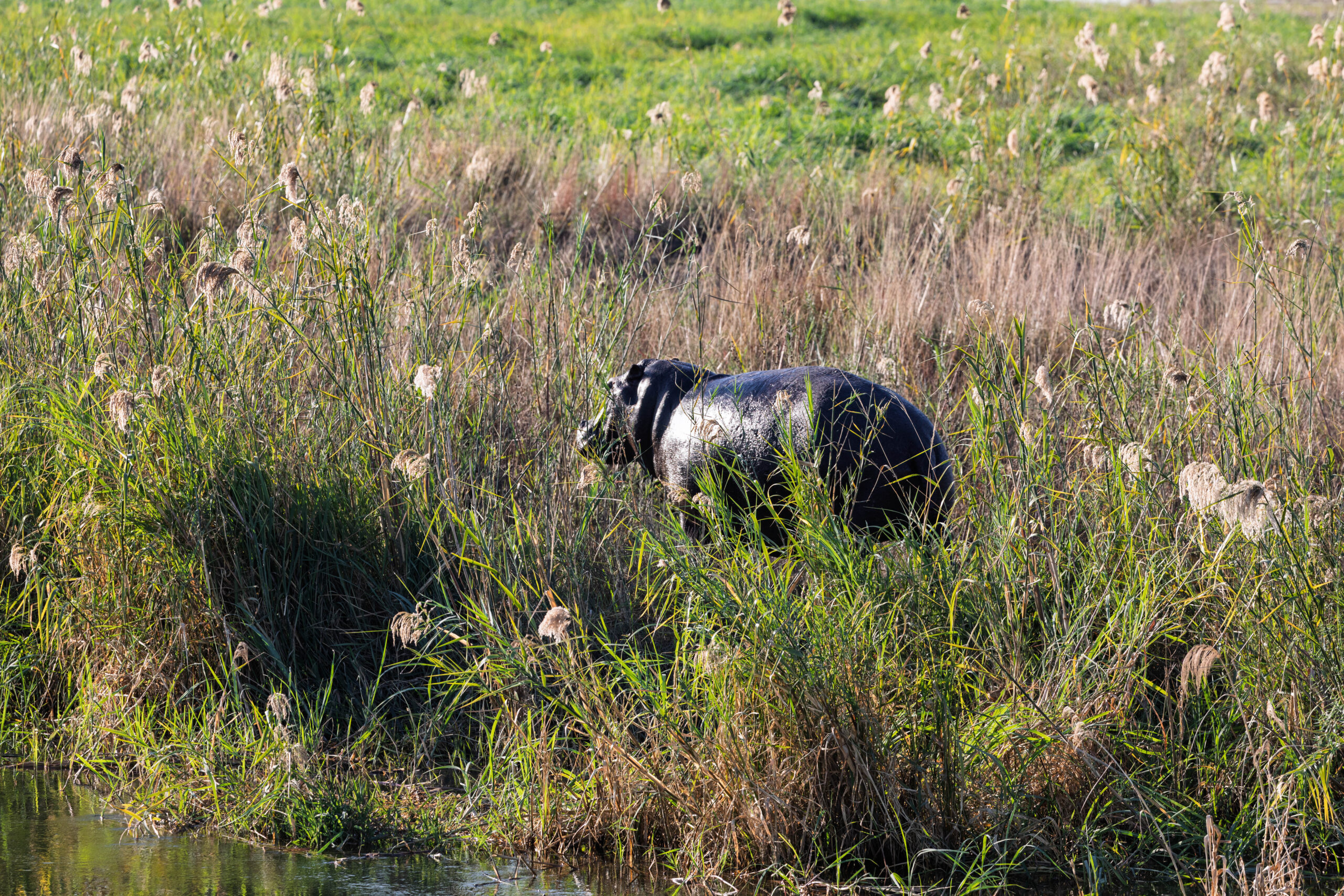 Gosh, another afternoon, another river cruise. This time we were taken out by our guide, Mikel. As befitted our status as the occupants of the Lion Suite, we took the seats on the roof of our boat, ha, ha. We may have missed a little bit of Mikel’s commentary but the extra elevation may have afforded us with a slightly better perspective of the wildlife? Birds and reptiles aplenty AND a trio of hippos grazing out of the water with a cattle egret perched on one’s back. The hippos inhabit this part of the river because the bottom is sandy and soft underfoot.