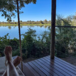 After our visit, we doubled back, passing through the police checkpoint and over the river again before purchasing fuel in Divundu. With diesel in the tank, we turned south on the C48 to continue to the Ndhovu Safari Lodge which will be our home for the next two nights. The lodge is situated on the bank of the Kavango River and, when we arrived, there were two elephants on the opposite bank which was exciting. OK, on the opposite side and down river … a bit, BUT still visible from our lodge.