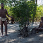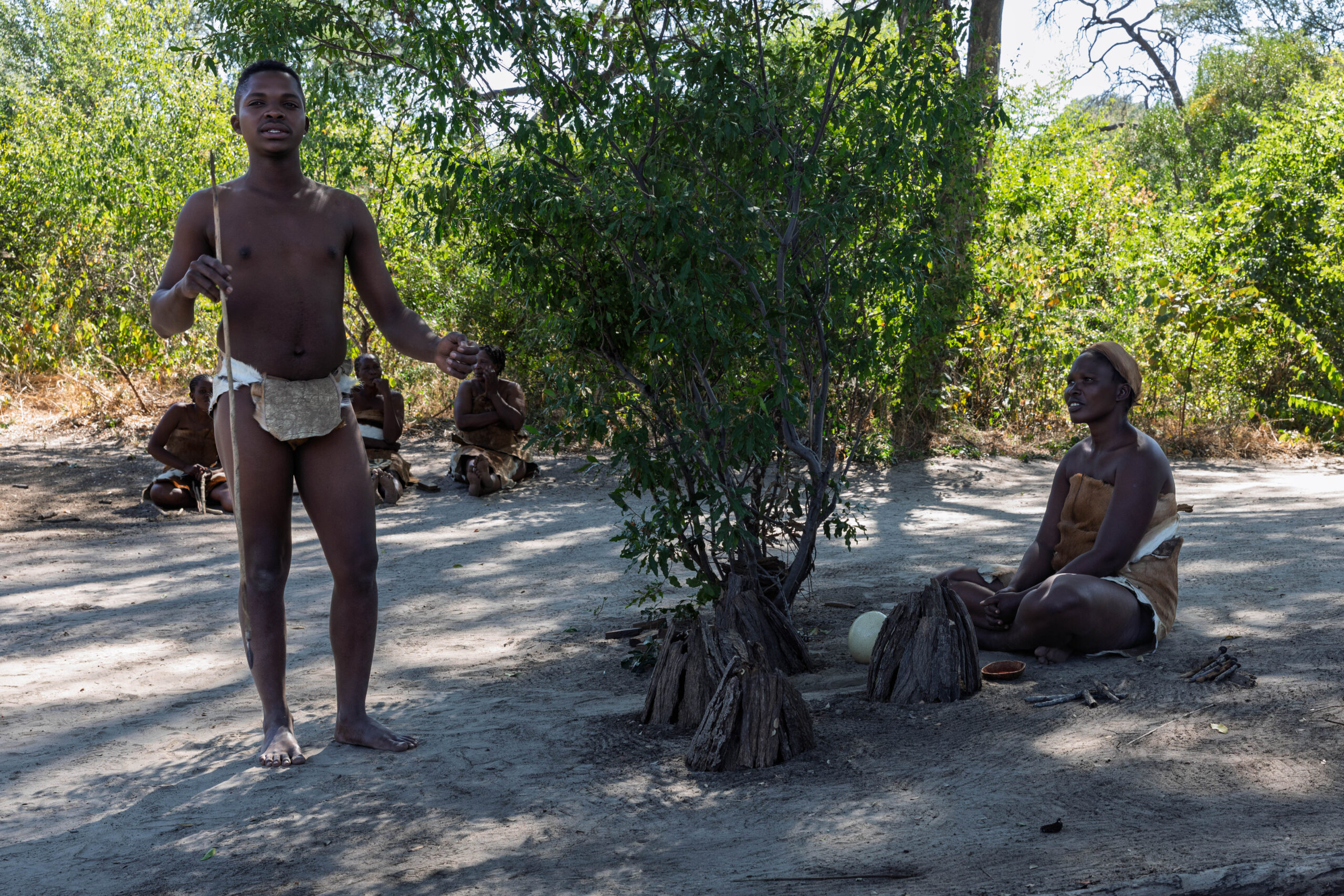 We crossed the Kavango River, passed through yet another police checkpoint before arriving at the Khwe Living Museum that is working to preserve the San culture of Northern Namibia. Our guide, Salek, took us on another interesting excursion, this time learning about the ancient hunter-gatherer culture of the San. The museum village consists of some traditional grass huts around which the way of life and pre-colonial culture of the Khwe is illustrated through story-telling and demonstration. The visit concluded with some stories told in music and dance and a traditional healing ceremony.