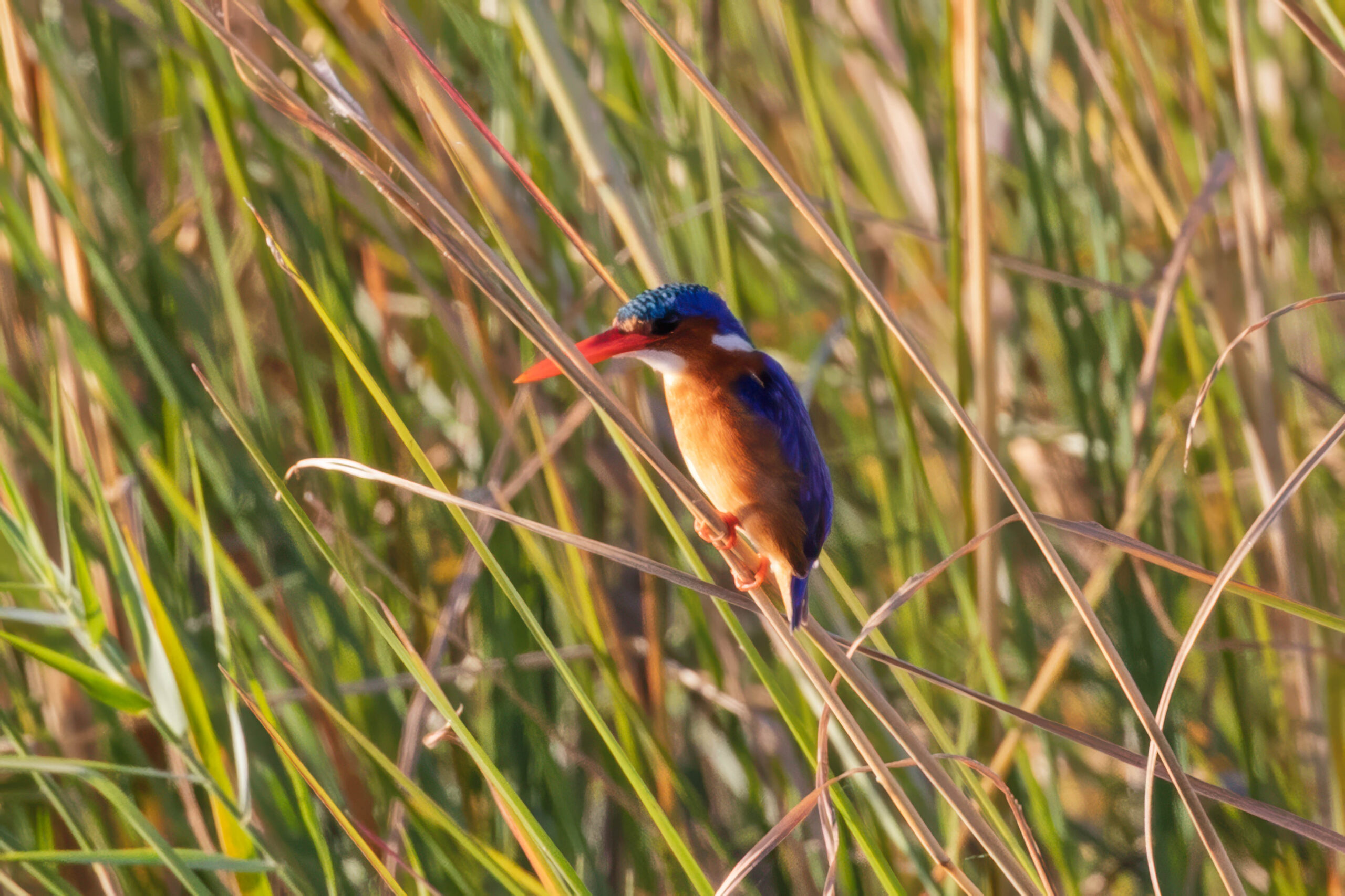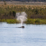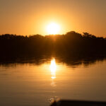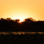 With sunset approaching we motored back along the river and past the lodge to take up tonight’s river sunset viewing position. Once again we were treated to a beautiful red-tinged sky as the sun sank below the horizon. As we returned to the dock a hippo opened its mouth wide just beside us. Unfortunately the light was low and it all happened far too quickly for there to be any photos. Classic hippo yawn though, which was exciting!