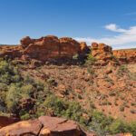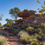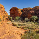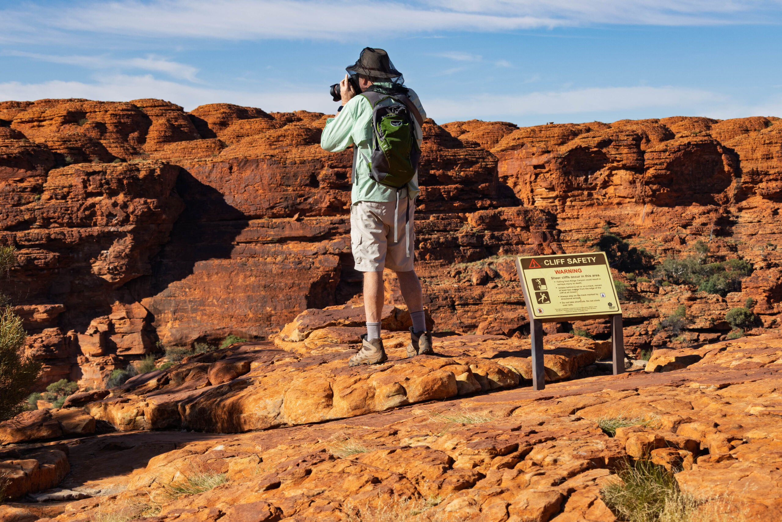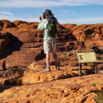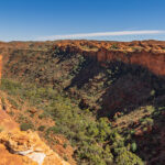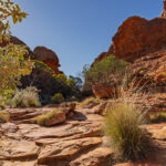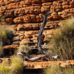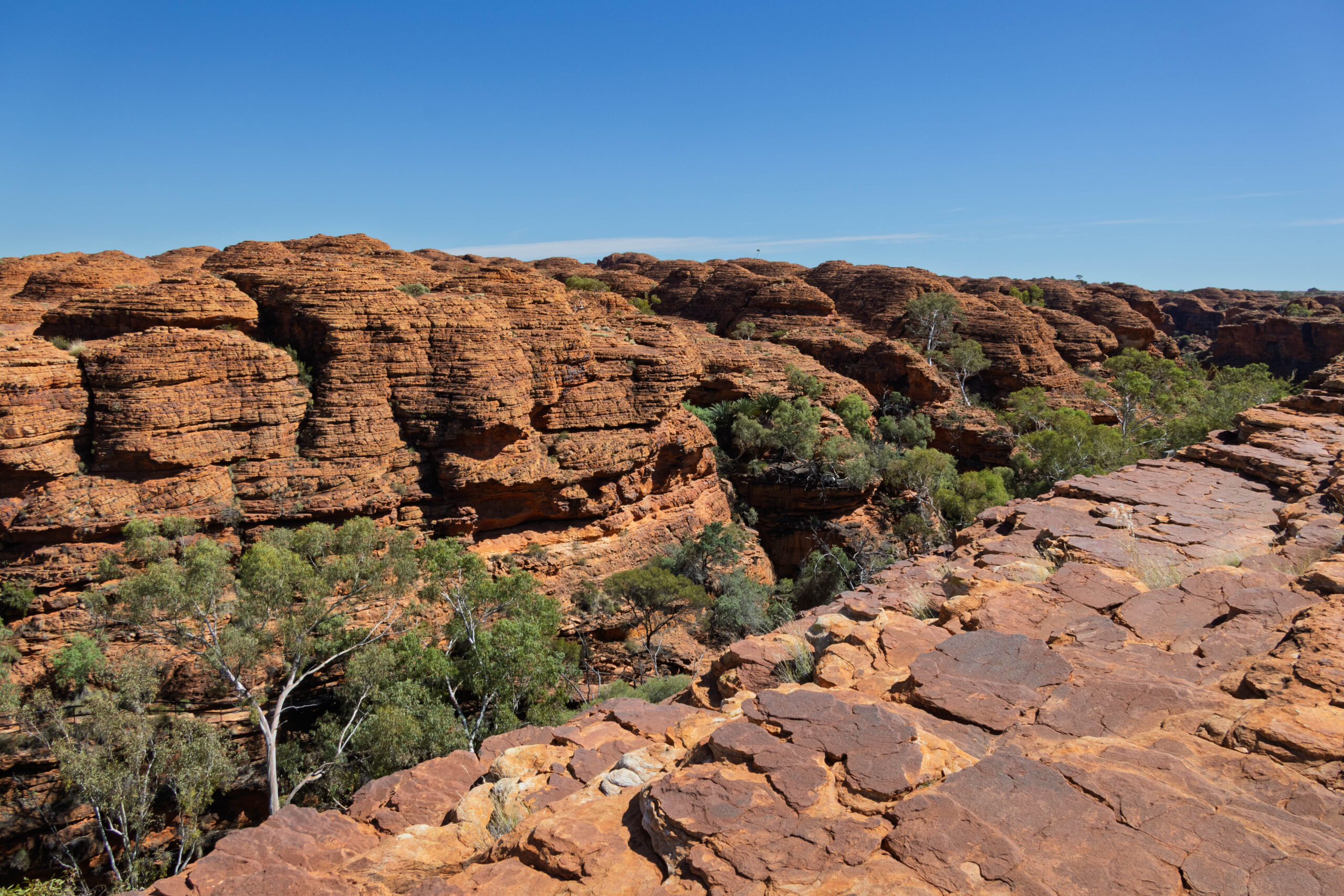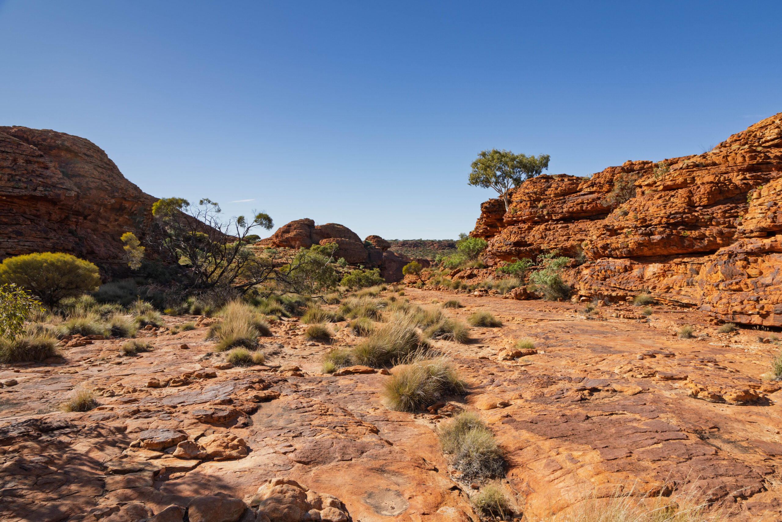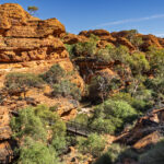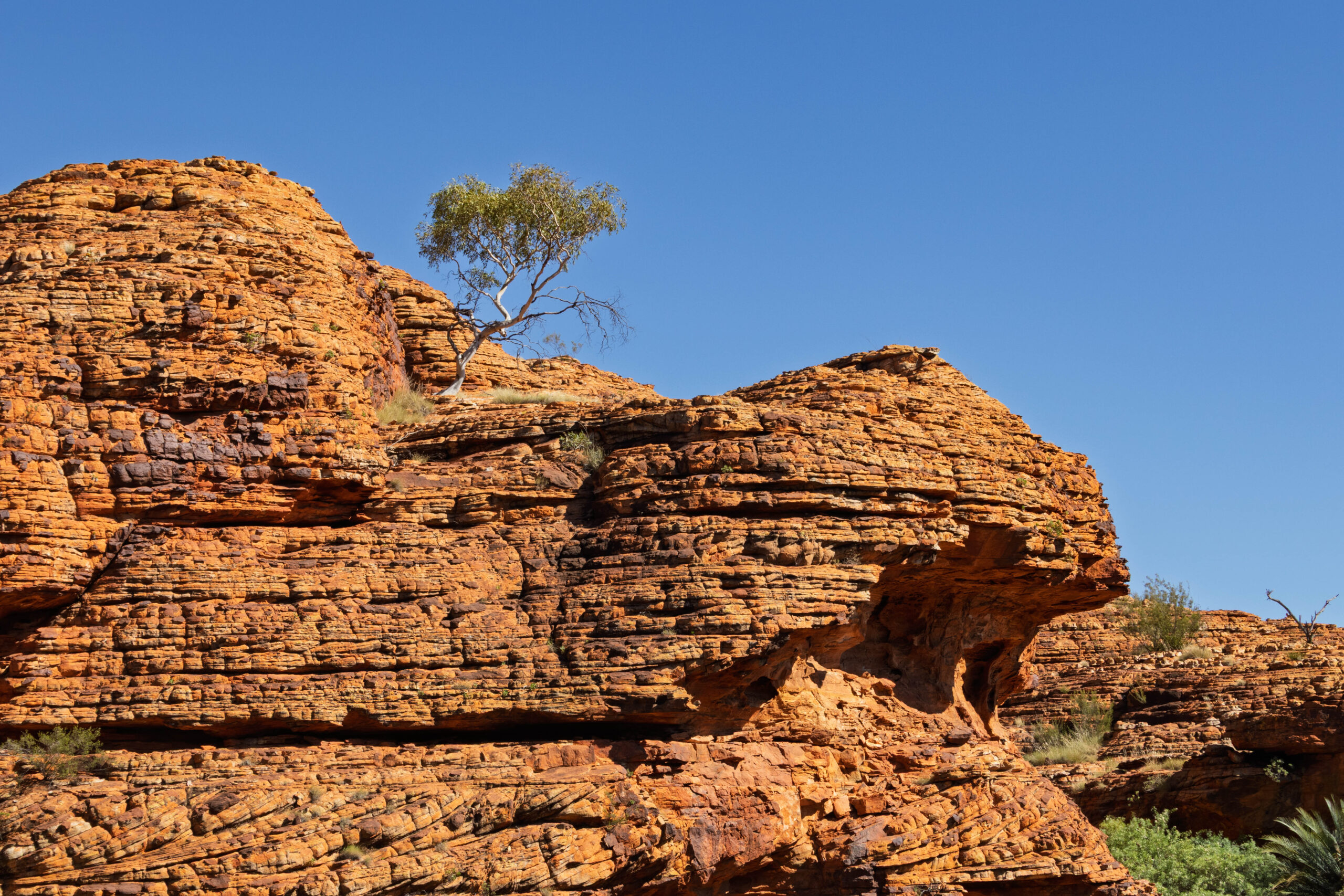After breakfast, we drove out to Watarrka National Park to undertake the Kings Canyon Rim Walk a six kilometre loop graded Moderate but … with a hard section at the beginning of the walk. Yup, it was a steep climb on rock steps to the top of the canyon. You know it’s a hard climb when you arrive at the top to be greeted with a defibrillator and emergency radio!! Fortunately neither of us needed that yet.