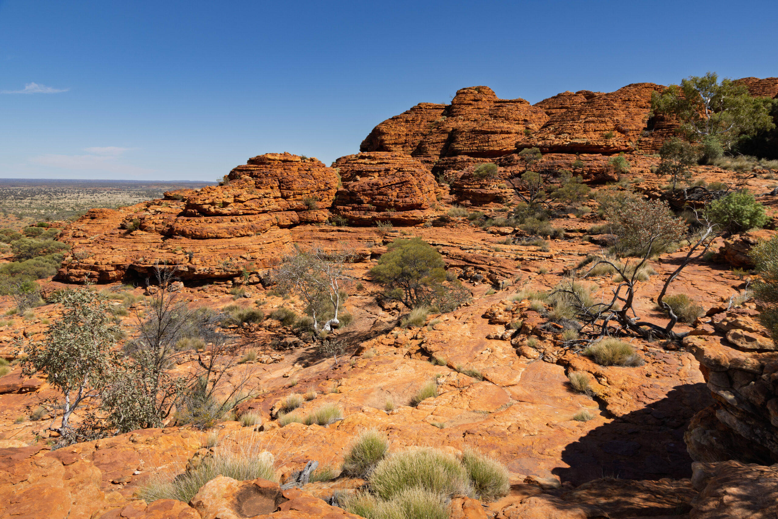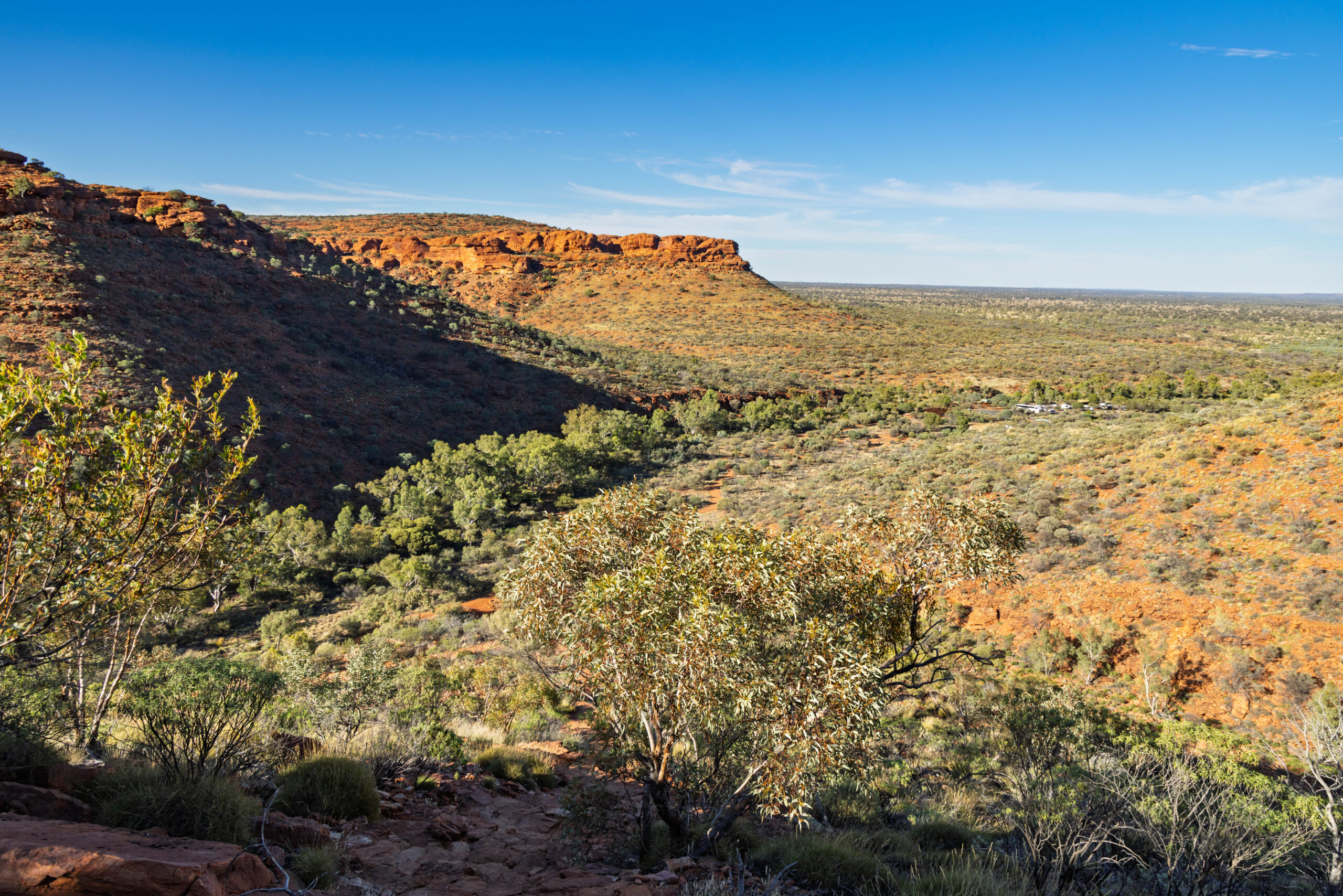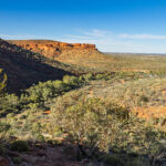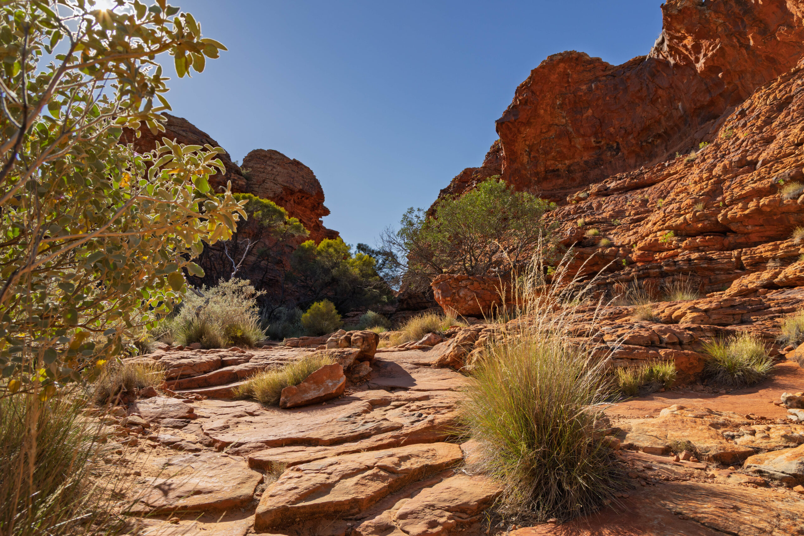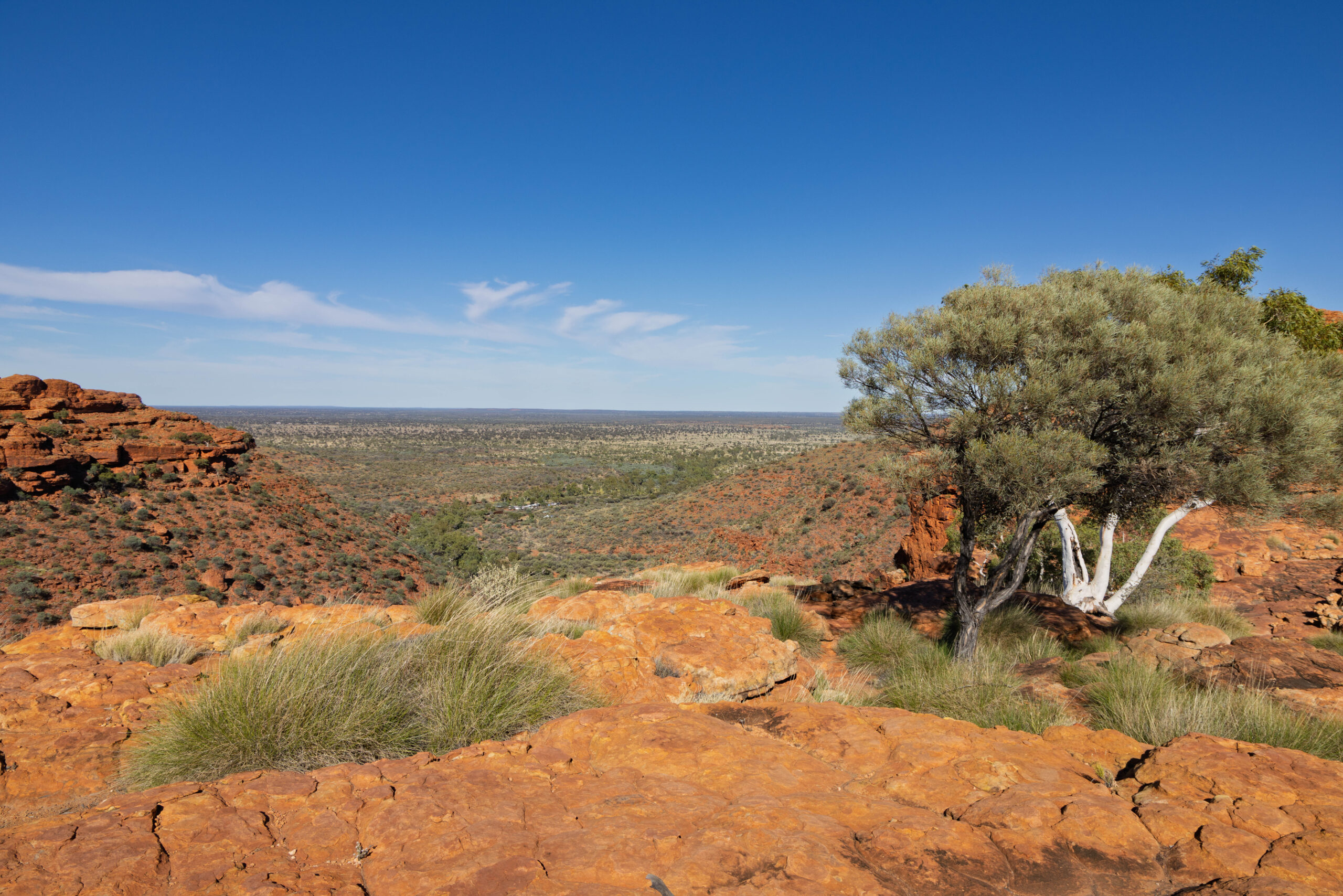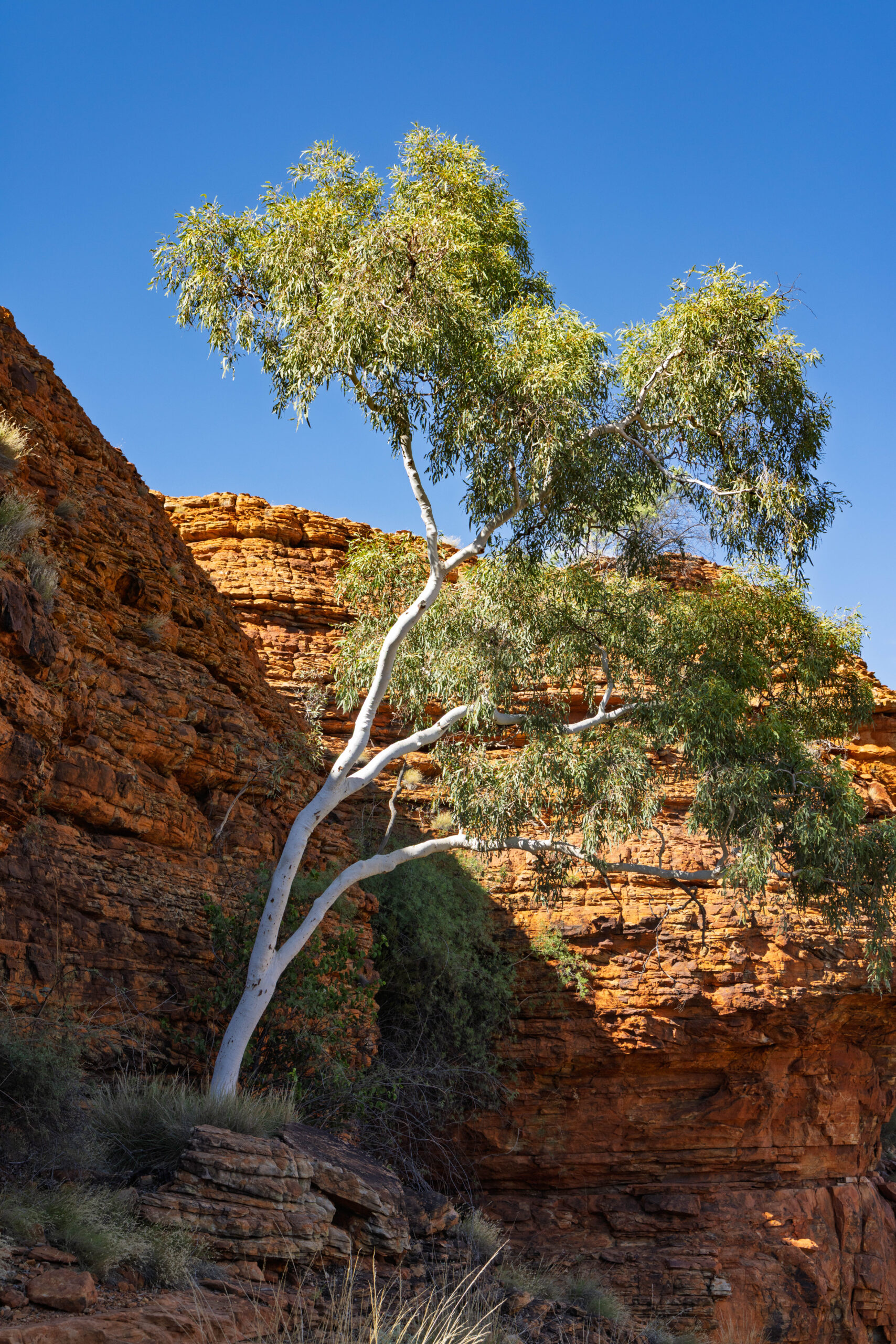 After breakfast, we drove out to Watarrka National Park to undertake the Kings Canyon Rim Walk a six kilometre loop graded Moderate but … with a hard section at the beginning of the walk. Yup, it was a steep climb on rock steps to the top of the canyon. You know it’s a hard climb when you arrive at the top to be greeted with a defibrillator and emergency radio!! Fortunately neither of us needed that yet.