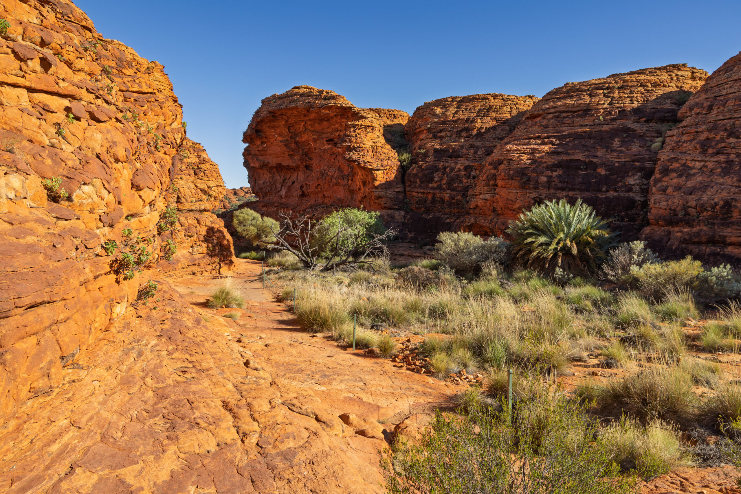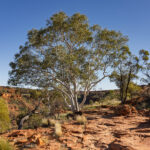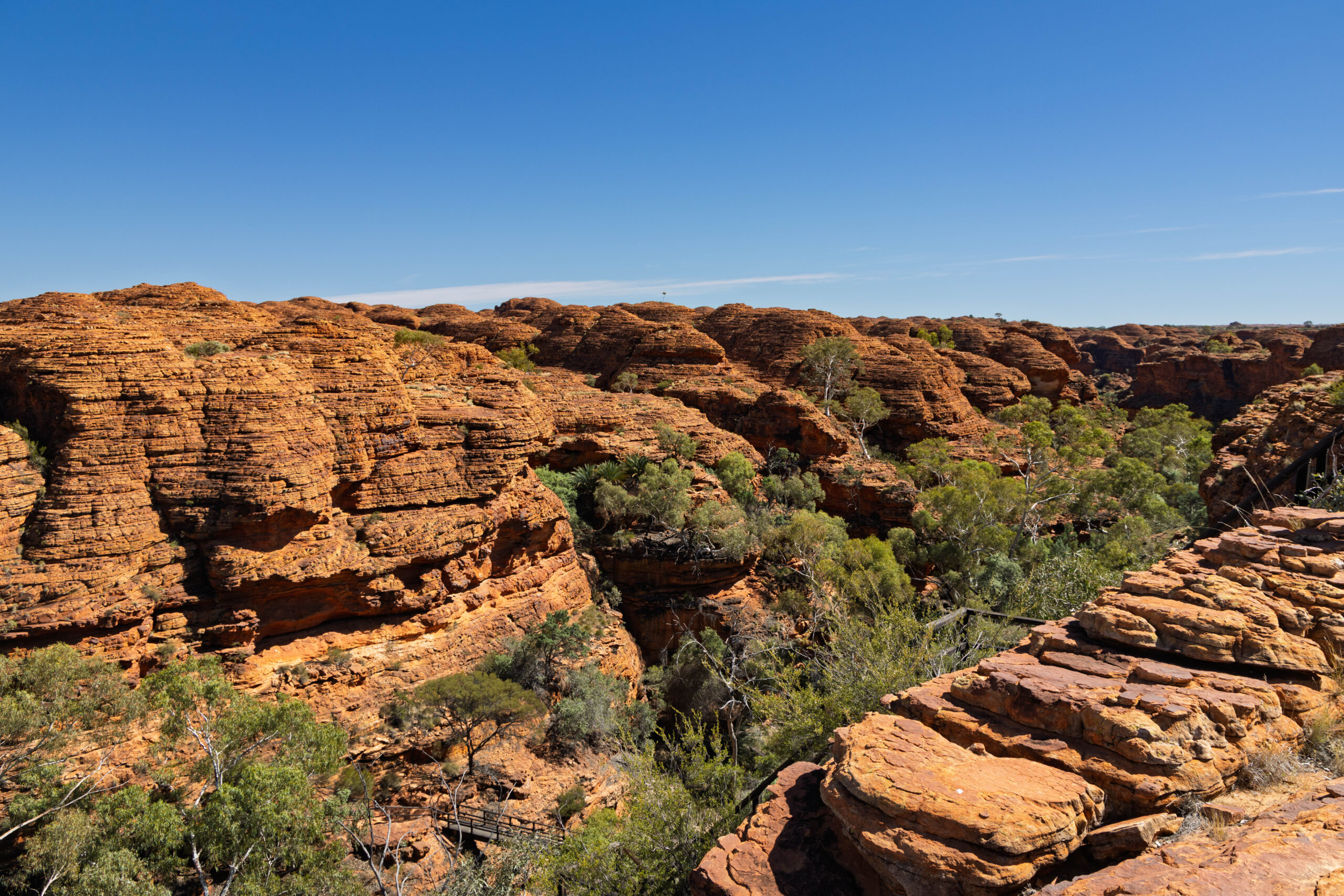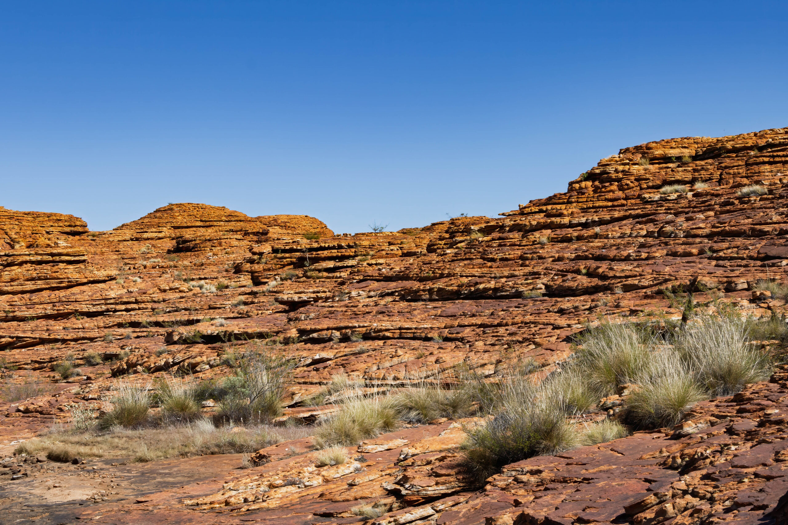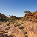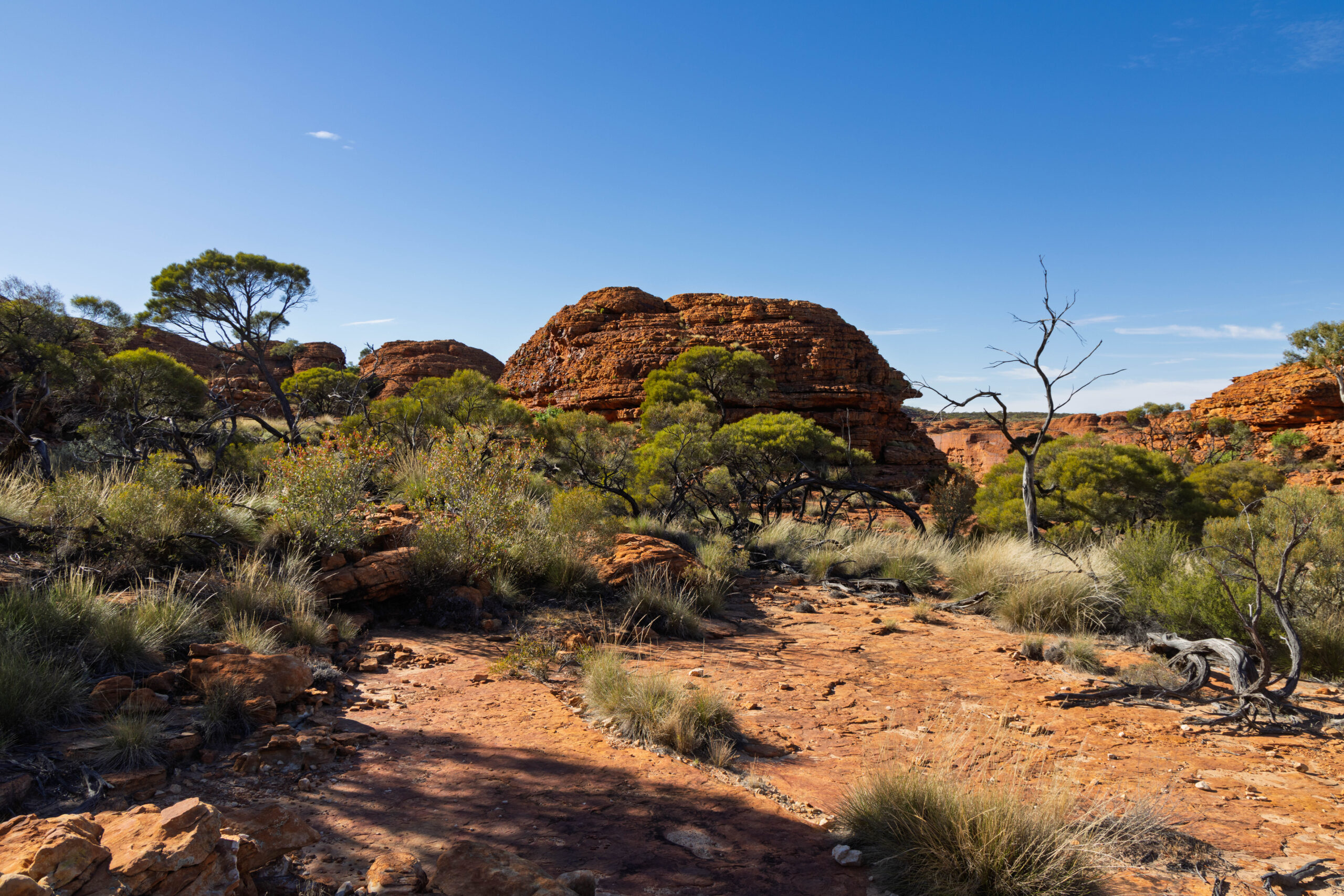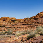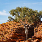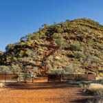 After breakfast, we drove out to Watarrka National Park to undertake the Kings Canyon Rim Walk a six kilometre loop graded Moderate but … with a hard section at the beginning of the walk. Yup, it was a steep climb on rock steps to the top of the canyon. You know it’s a hard climb when you arrive at the top to be greeted with a defibrillator and emergency radio!! Fortunately neither of us needed that yet.