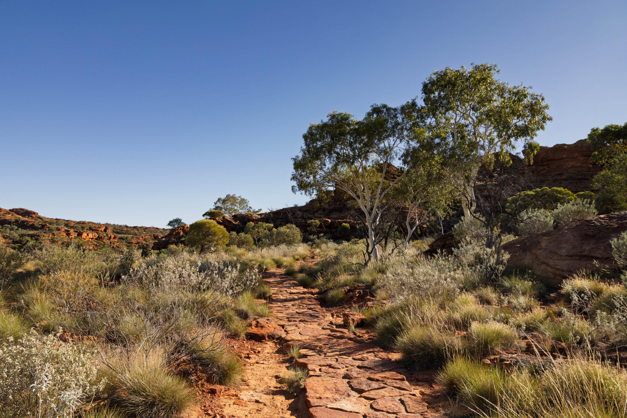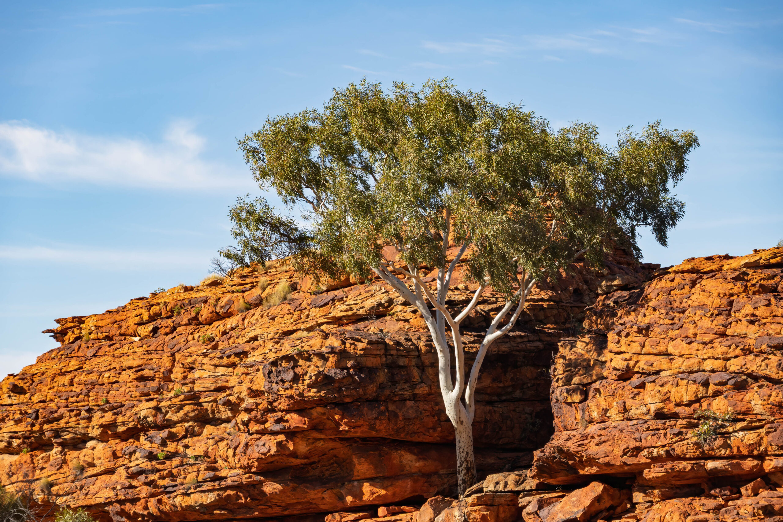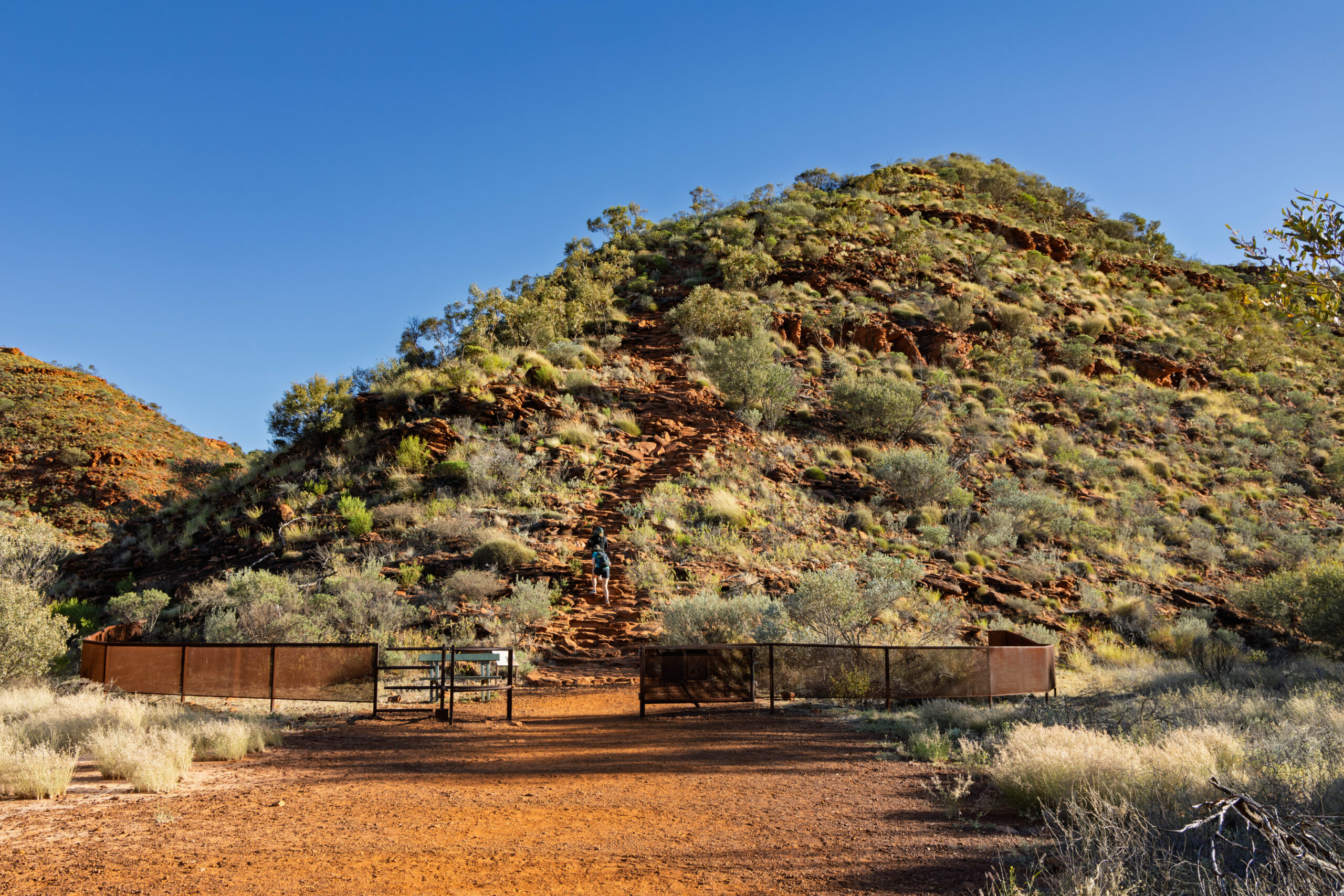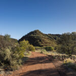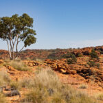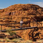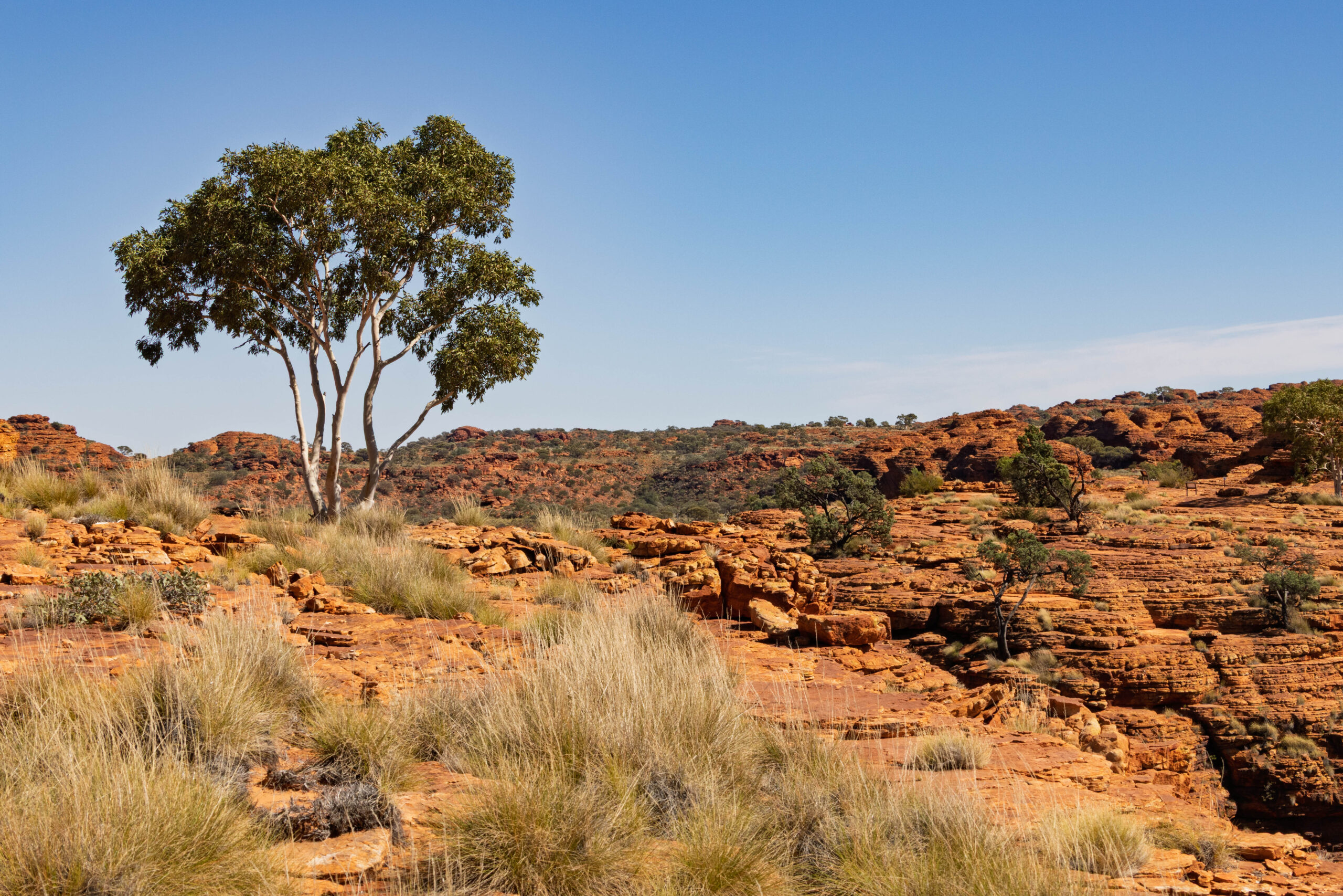 After breakfast, we drove out to Watarrka National Park to undertake the Kings Canyon Rim Walk a six kilometre loop graded Moderate but … with a hard section at the beginning of the walk. Yup, it was a steep climb on rock steps to the top of the canyon. You know it’s a hard climb when you arrive at the top to be greeted with a defibrillator and emergency radio!! Fortunately neither of us needed that yet.
