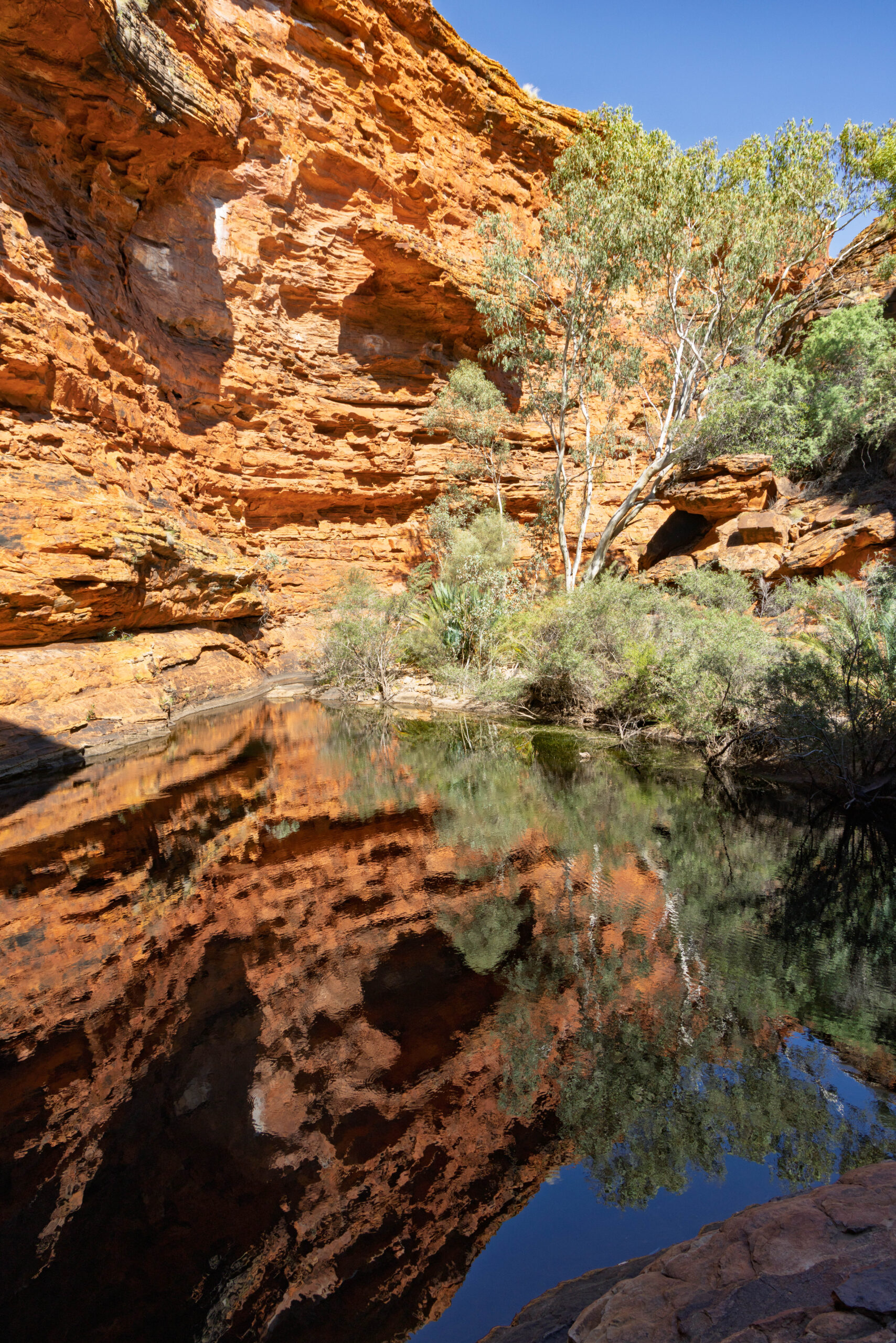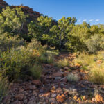 A couple returning from the Garden of Eden extolled its virtues so, of course, go harder, go further guy decided we should do it. I was still reluctant but a good bit of FOMO had me tagging along with him! Although it meant going down again to turn around and climb up … again, it was worth it to see this delightful area of cool waterholes and riverine vegetation. We even spotted a frog but not near the water as you would expect, it was about half way up the trail sunbathing on a rock!!
