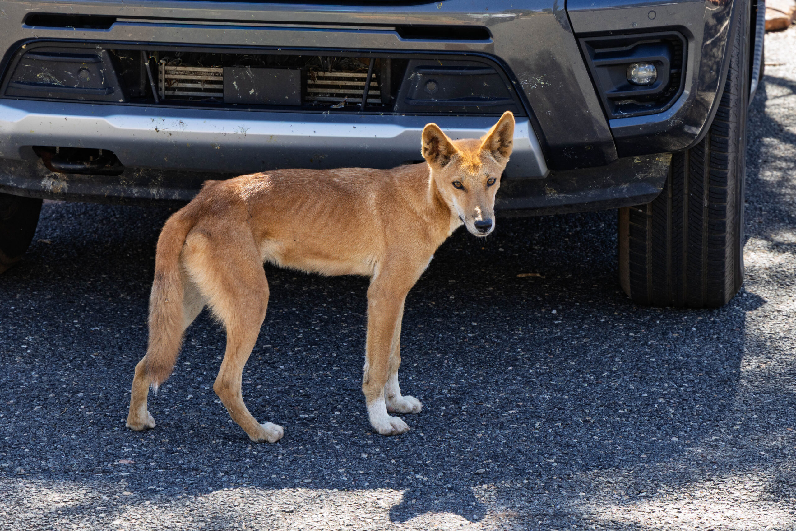 About three and a half hours after we set out we could see the car park. Never have I been so relieved to see a car park! With it approaching noon the day was really starting to warm up so I was just about cooked. Pleased to have completed the walk, but also very pleased that it was done. As we left the path, we walked past a shelter and spied a dingo. Unfortunately one that seemed a bit too accustomed to humans, as it showed no fear of us at all. We did our best to give it a wide berth and ignore it. All the instructions tell visitors to avoid interacting with the dingoes to keep them wild.
