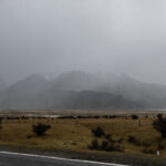 Although we had been told that all the water over the road was around Glentanner Creek, we found that when we reached Sawyers Creek the water had risen there too. Fortunately, it was only a little bit over the road and we were able to make our way through that section too. Approaching Mount Cook Village, we saw two works vehicles heading the other way. We suspected that they might be heading out to review the road conditions and potentially close the road when they reached the turnoff at Pūkaki?? We later confirmed that the road was closed after we made it through.