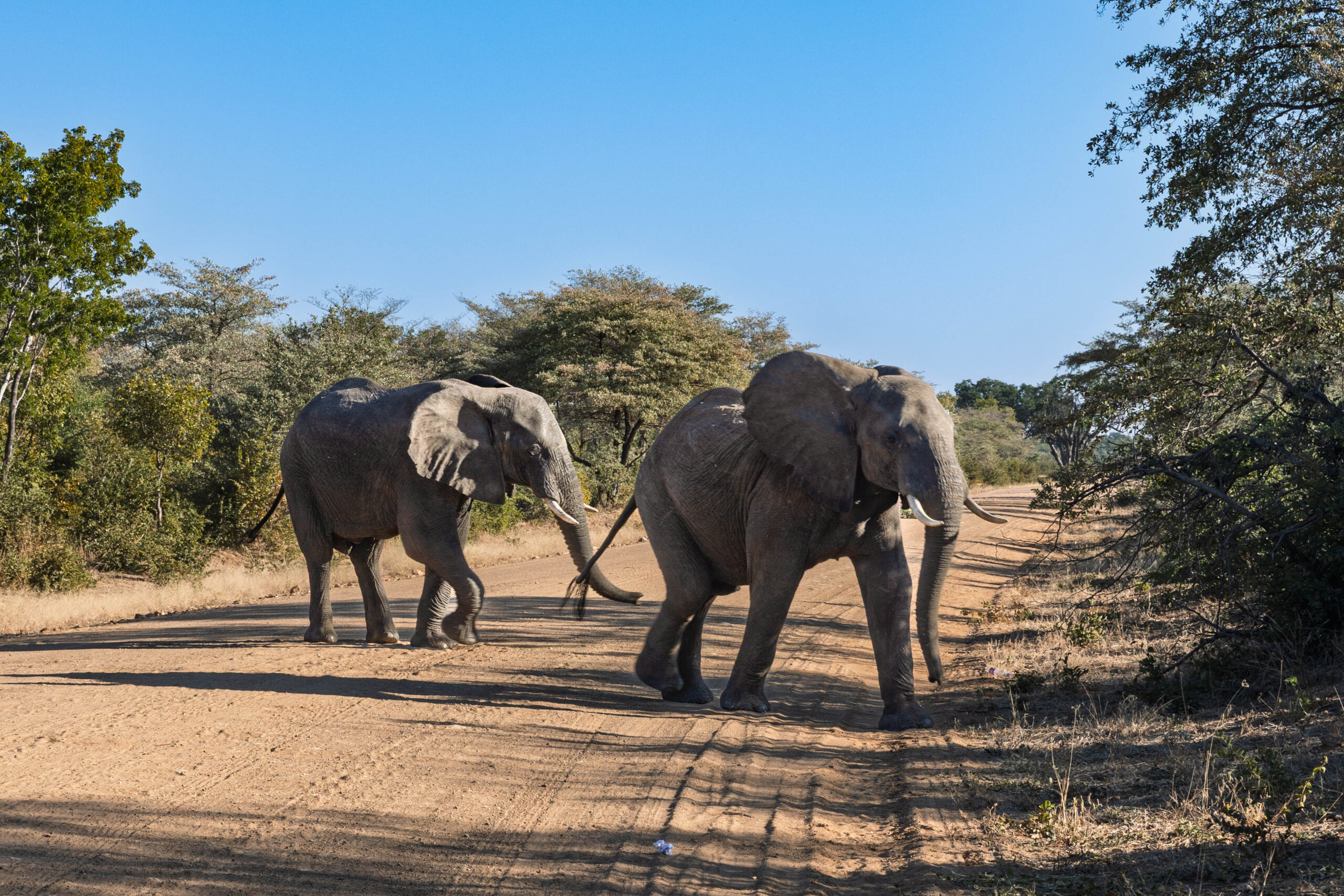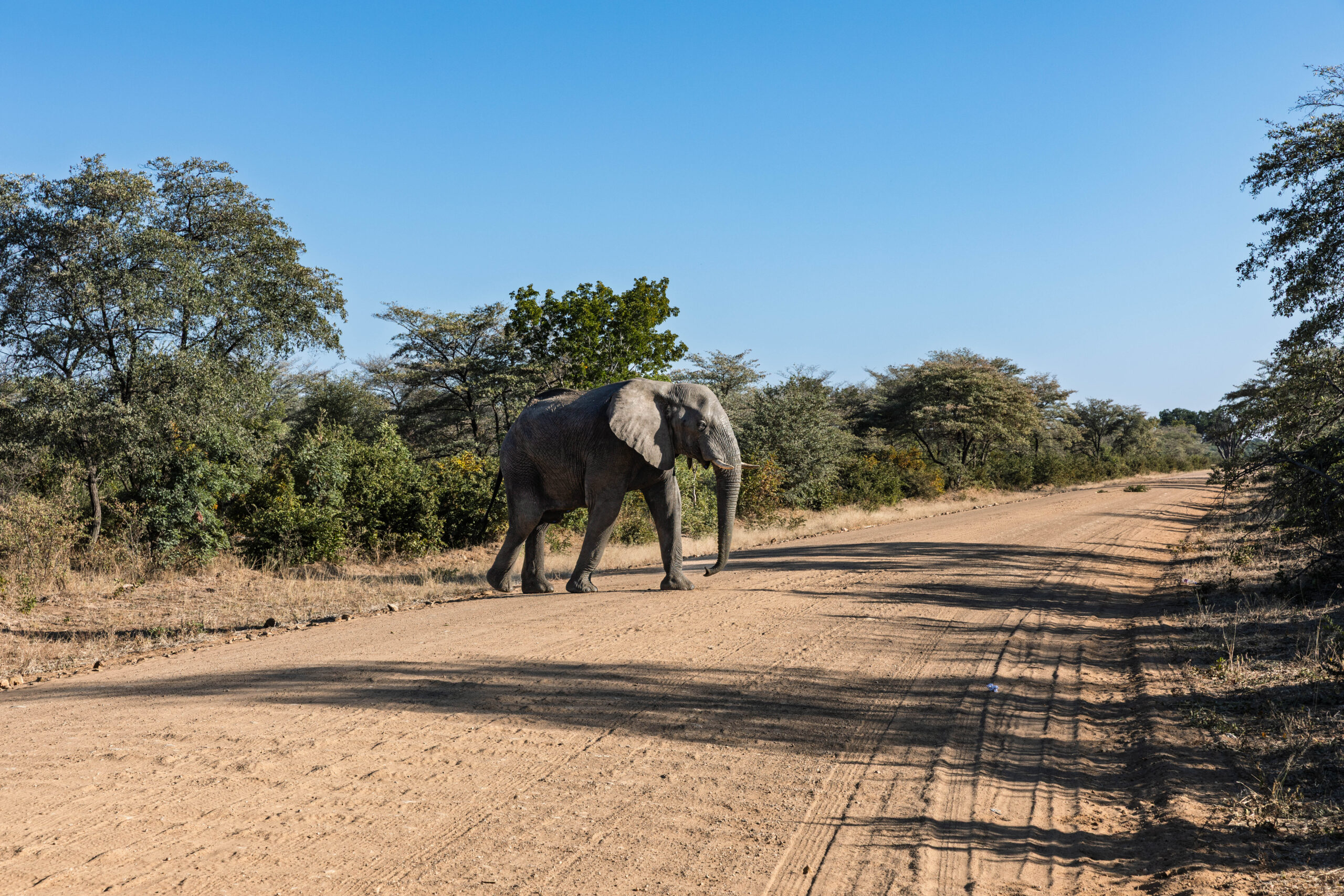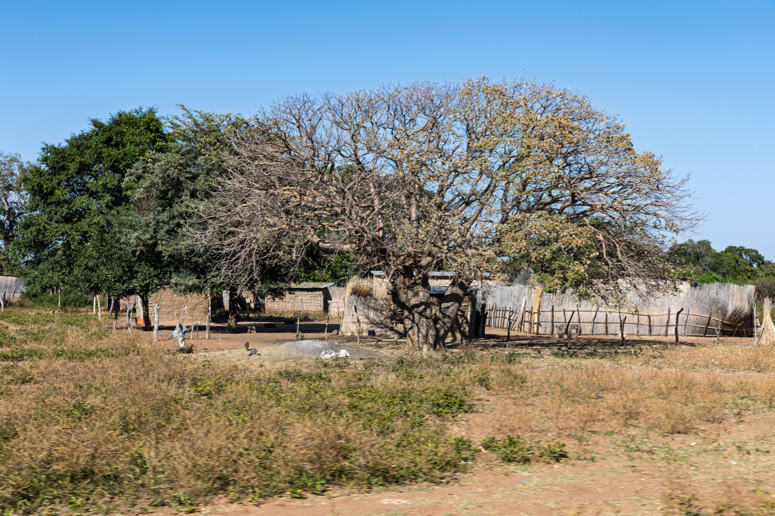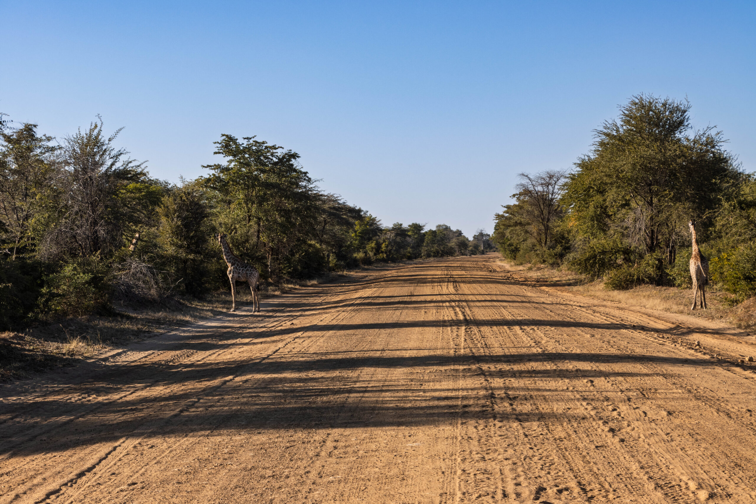 So, the first few kilometres in Botswana weren’t too rough but, all too soon, the road deteriorated into quite probably the most unmade ‘made’ road EVER! Honestly, it’s basically a series of potholes strung together with a suggestion of bitumen. We saw road workers supposedly working on road improvements. You have to hope, right? Their STOP/GO sign holders here are armed with red and green flags that they flap around to manage the traffic. And there are, seemingly, no roadworks speed limits. It is a dangerous job to be a road worker in Botswana.