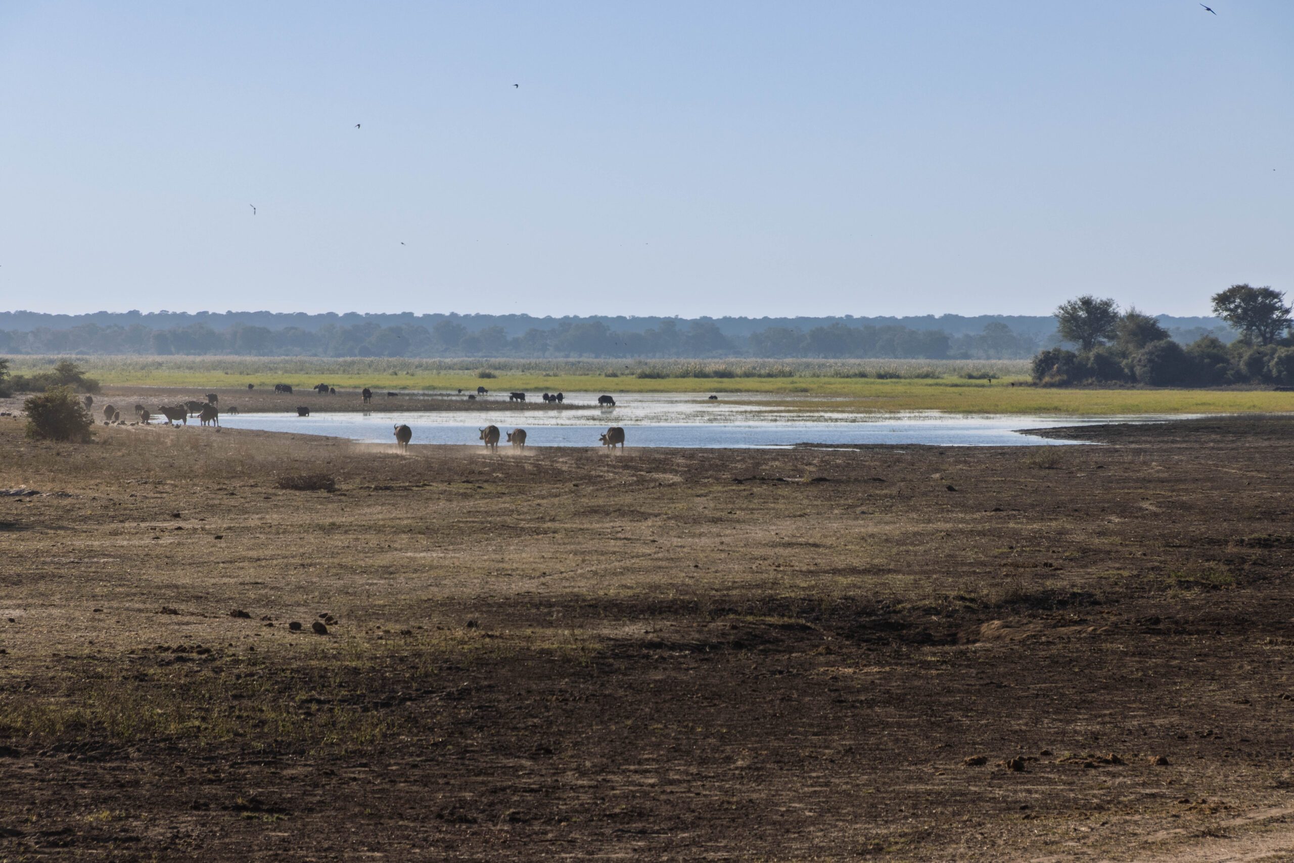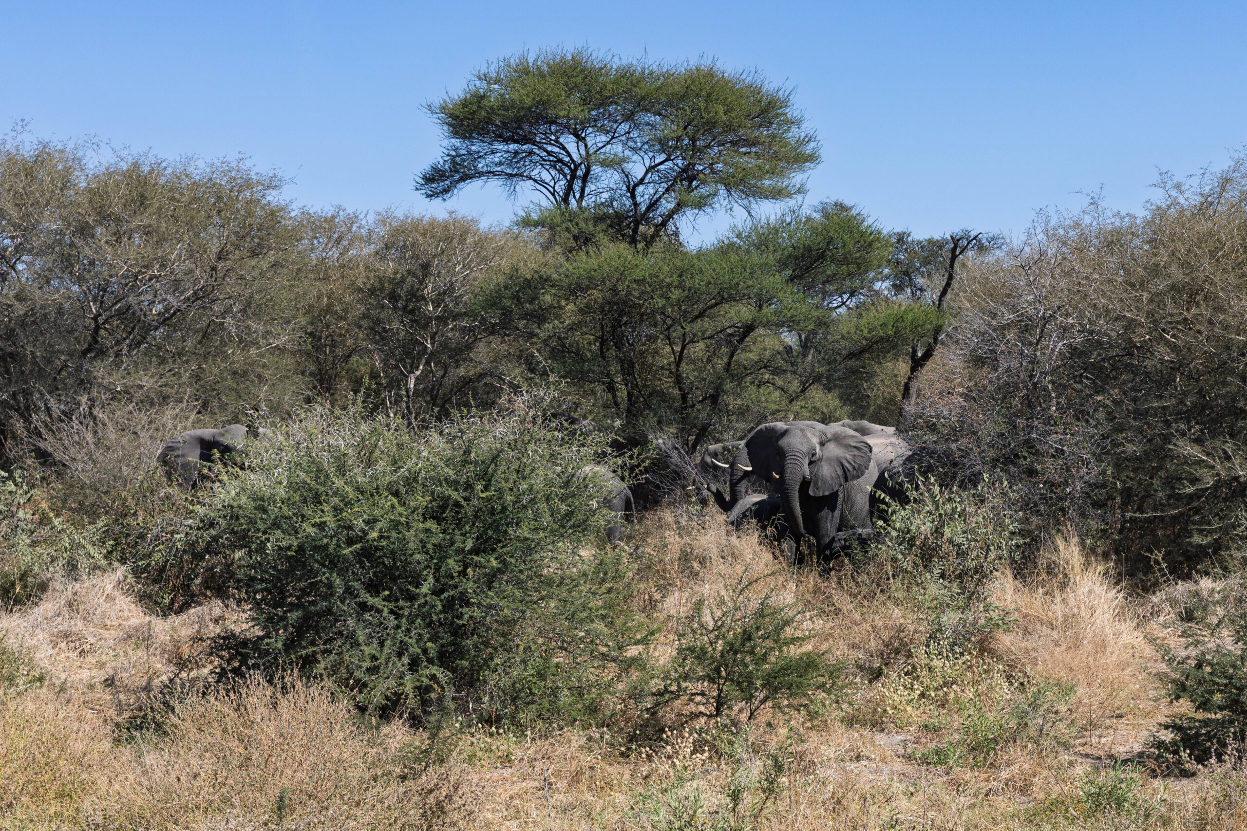 We drove across the no man’s land between Namibia and Botswana and parked in front of the Botswanan Immigration Office. We filed in again, filled out arrivals documents and had ourselves stamped into Botswana. Wian had told the lodge not to pack fruit in our lunch bags but we all had a tiny, green pear in our bag. With no fruit allowed to cross the border we had to discard all those pears before passing through Customs. Such a shame. It was only 9.30am and we were in another country.