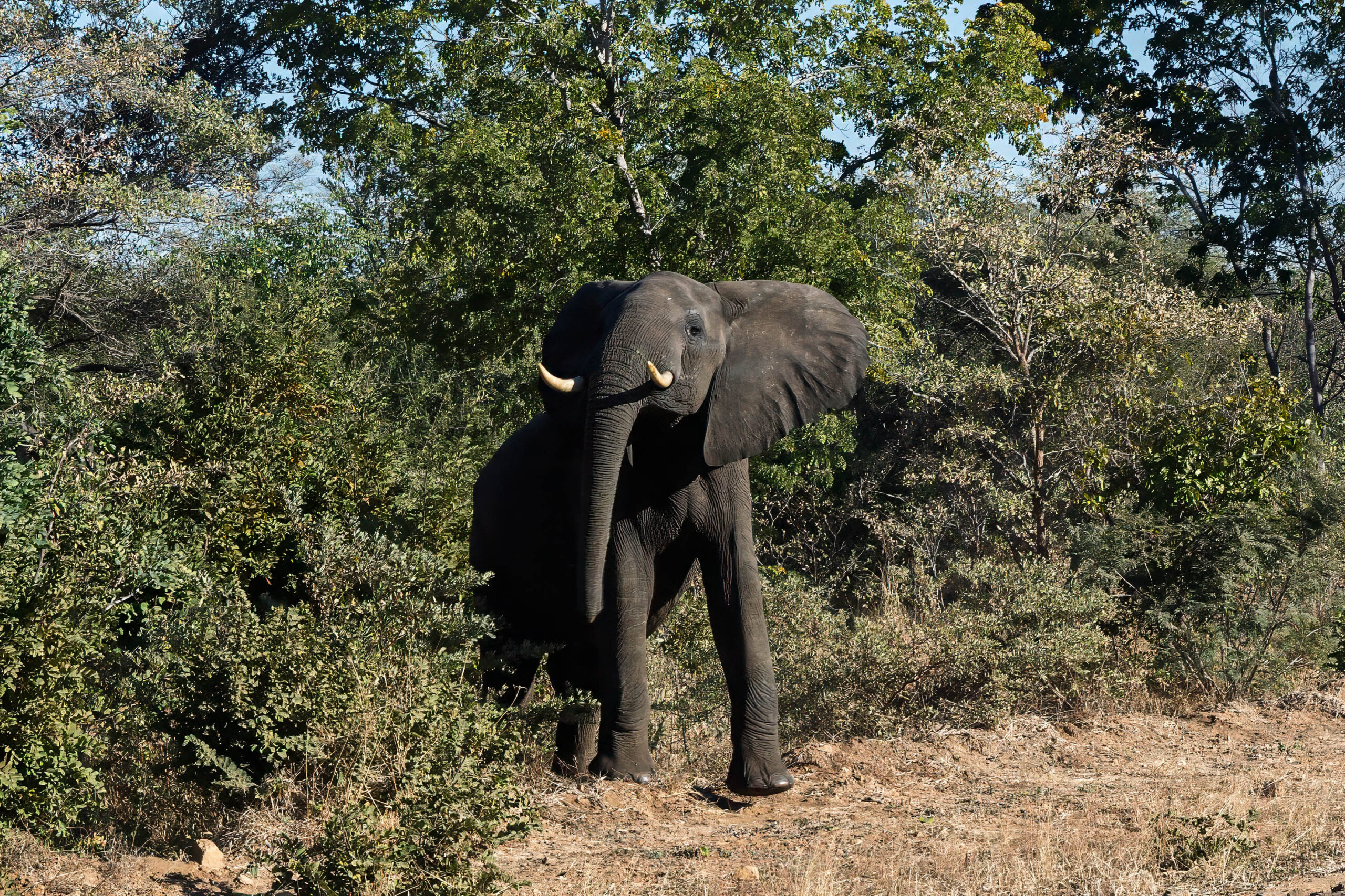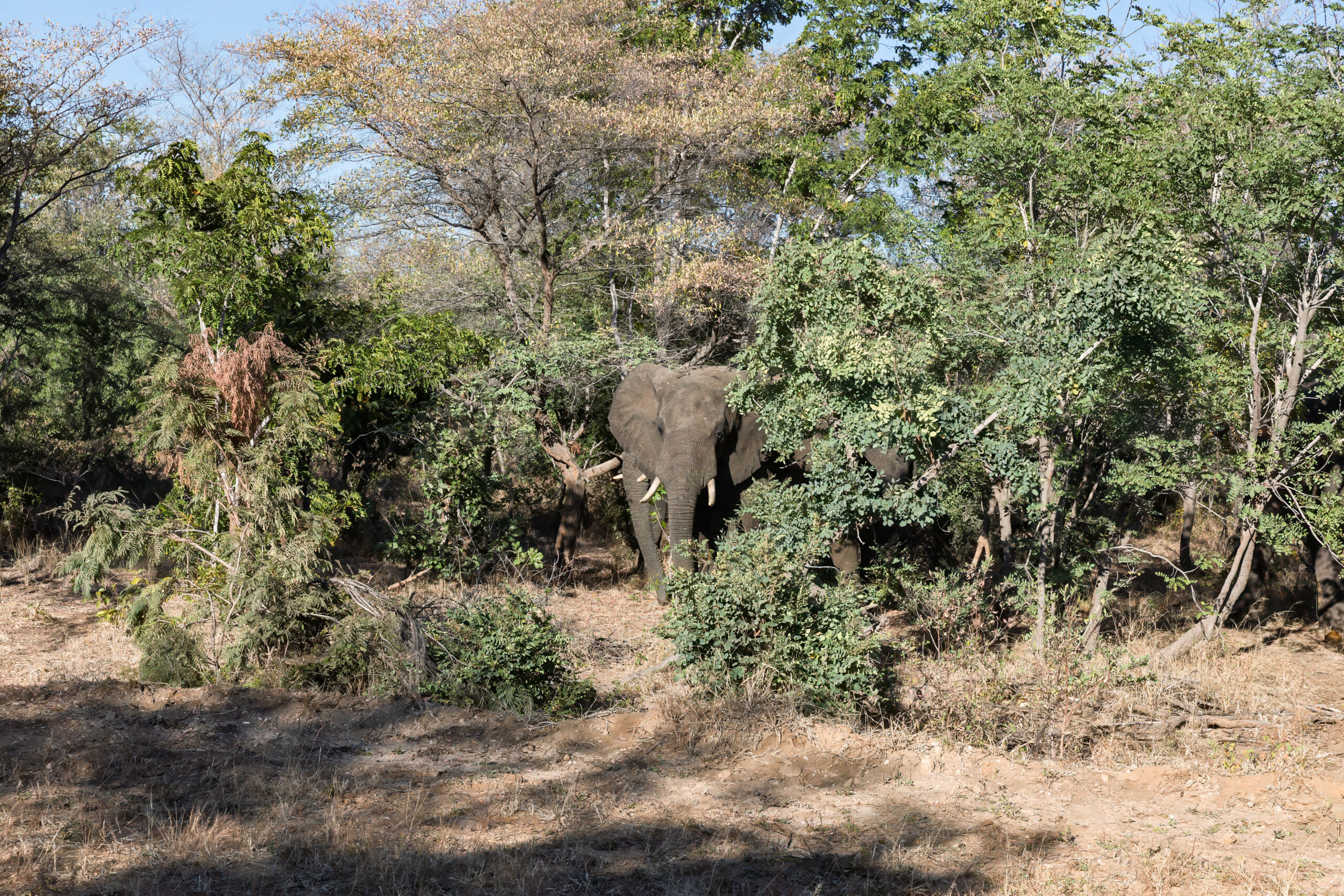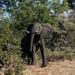 We ate our lunches on the bus, made a toilet stop and saw more roadside elephants. We really have seen an extraordinary number of elephants both in the parks and by the roadside. We passed through Nokaneng and the road seemed OK, for while. Beside the road it was all domestic animals this afternoon, sheep, horses, goats and cattle. No more elephants.